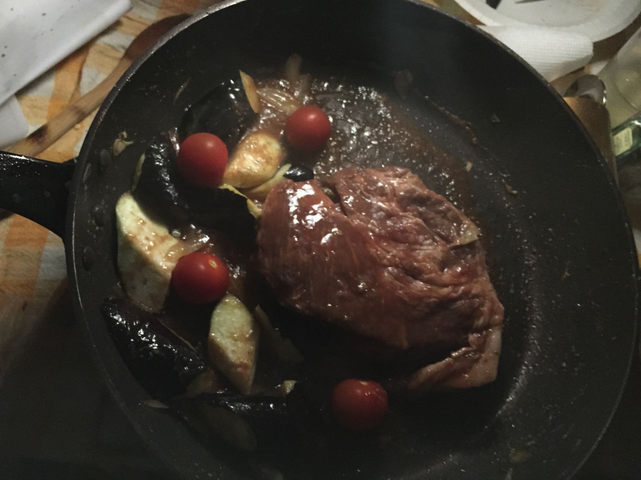 二日目の夜は、ランプ肉のステーキ。