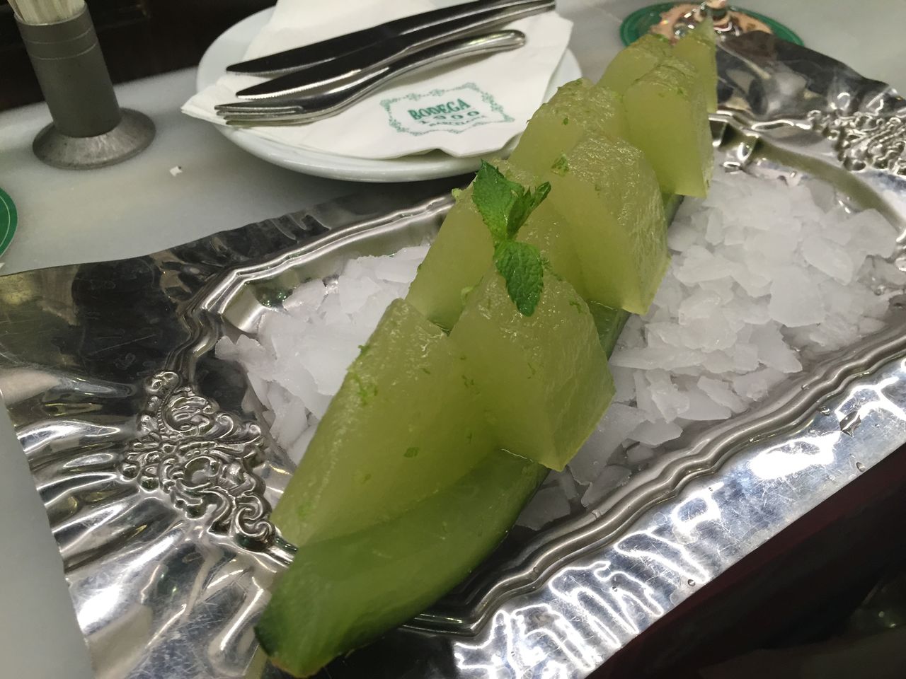このメロンに、スパイスと青い感じの野菜の味がして、ちょっと辛かったです。
