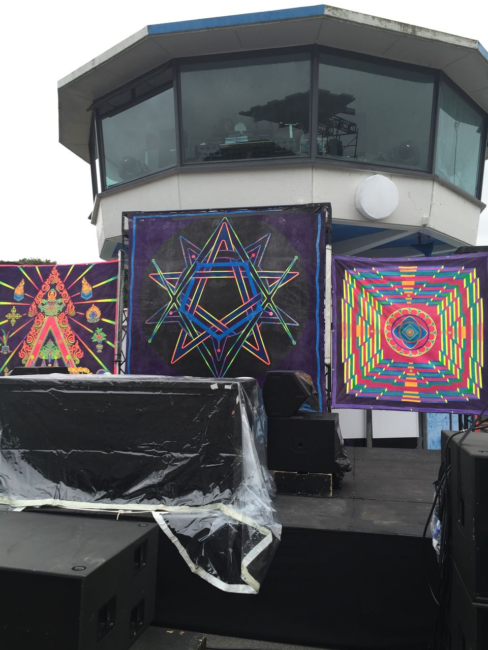 ステージにデコられている、サイケな布達。