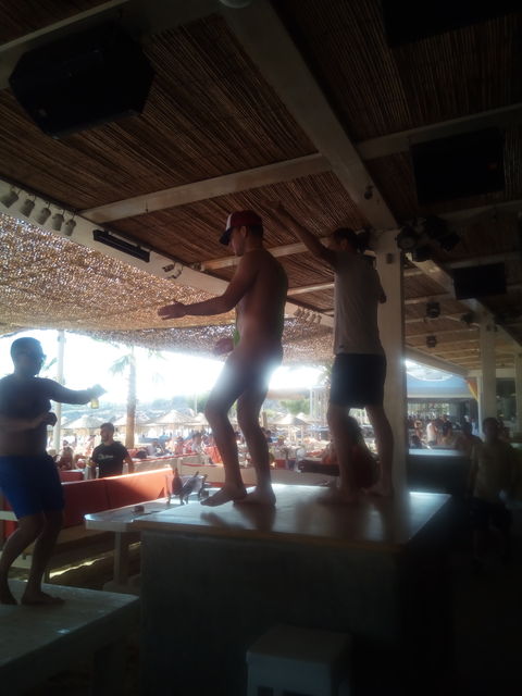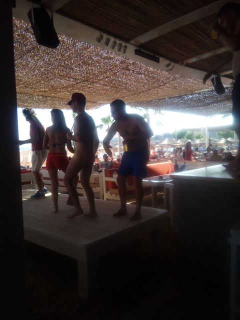 お昼は、ゆったりとビーチで飲んでいましたが、夕方手前から音量が上がり、こんな感じで踊りだす。