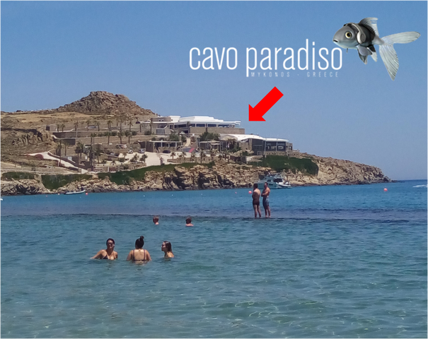 一番右の白い建物が、Cavo Paradiso。
