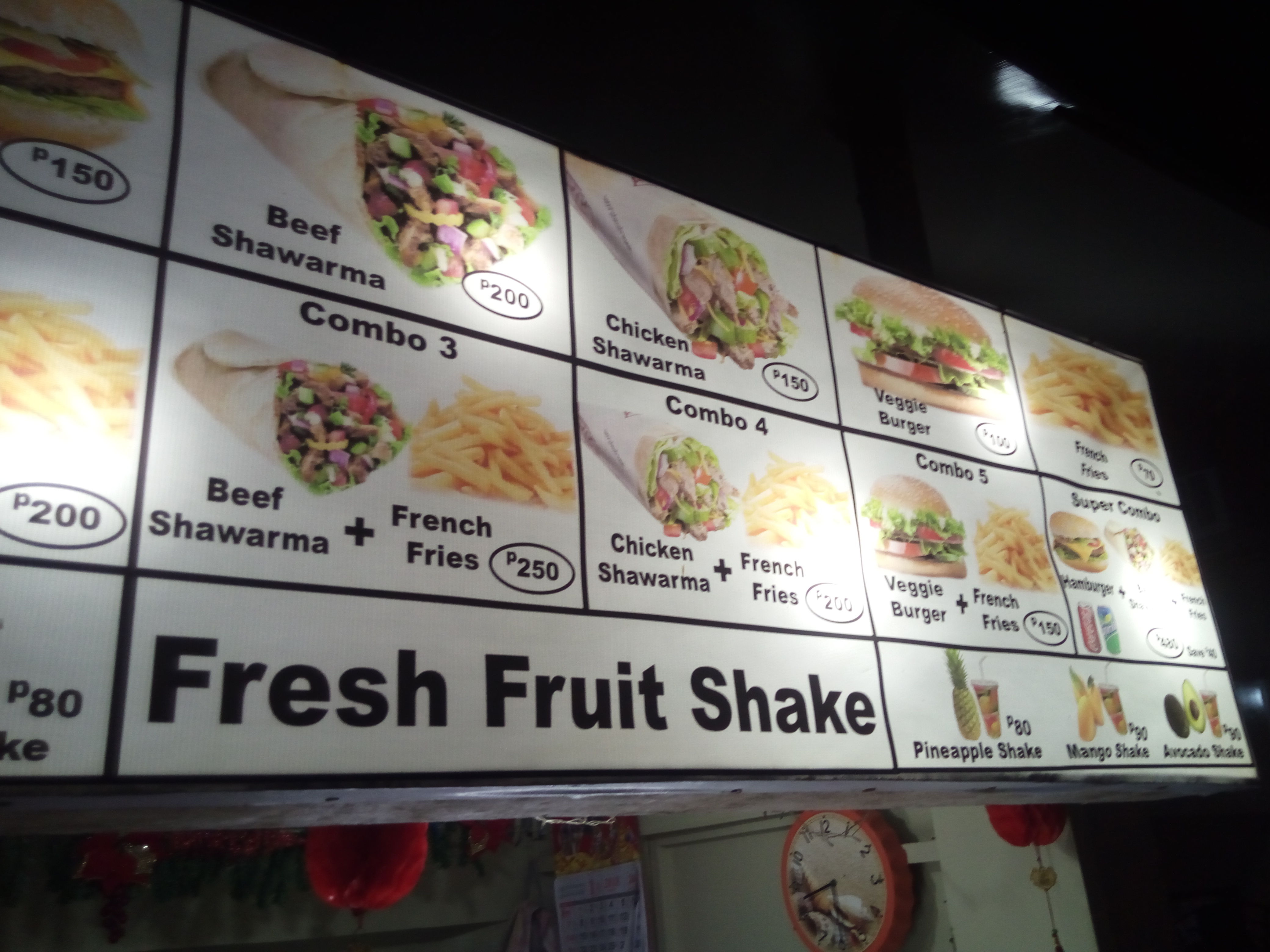 ハンバーガーとポテトで200ペソ、500円ぐらいと行ったところ。