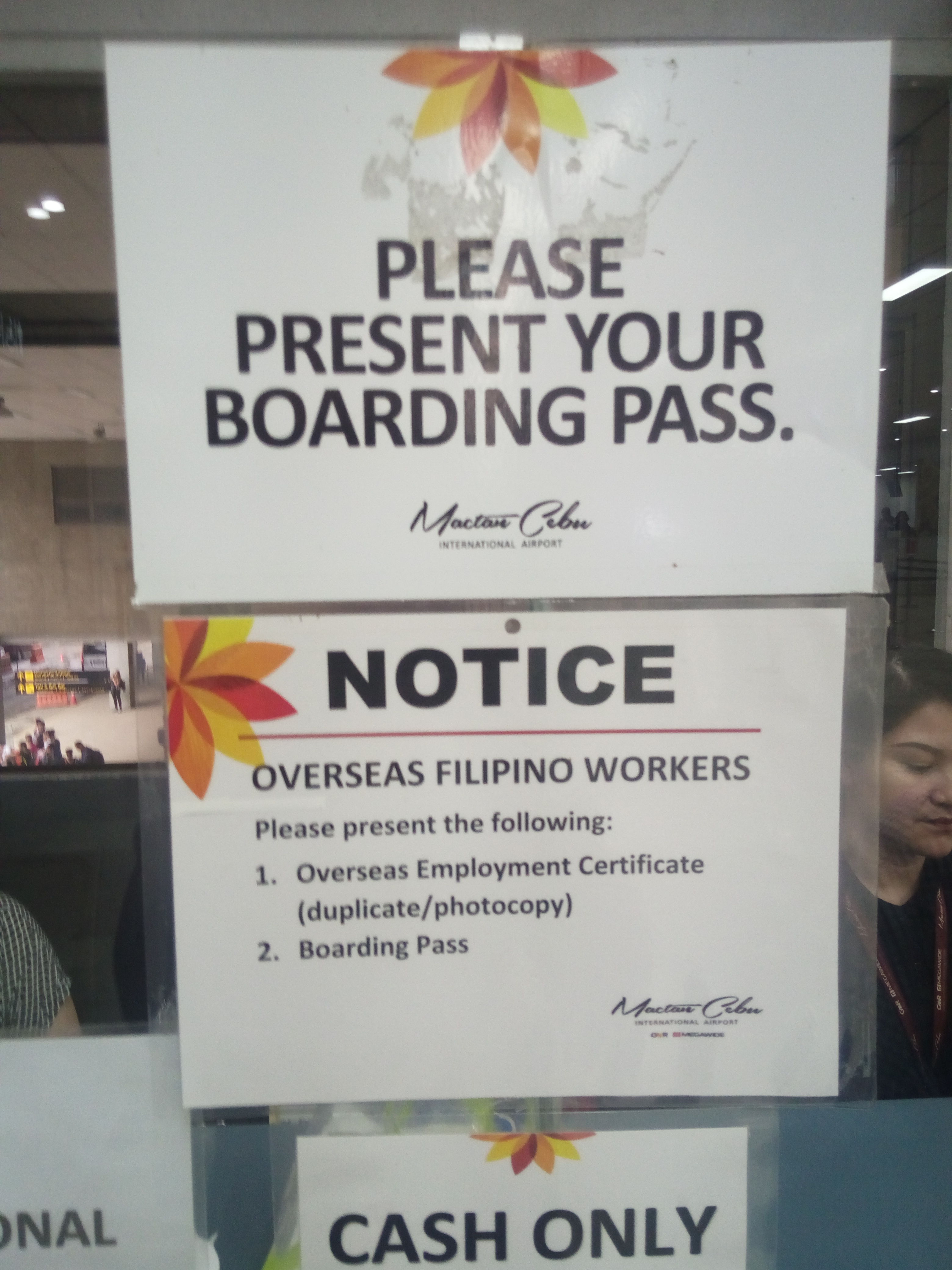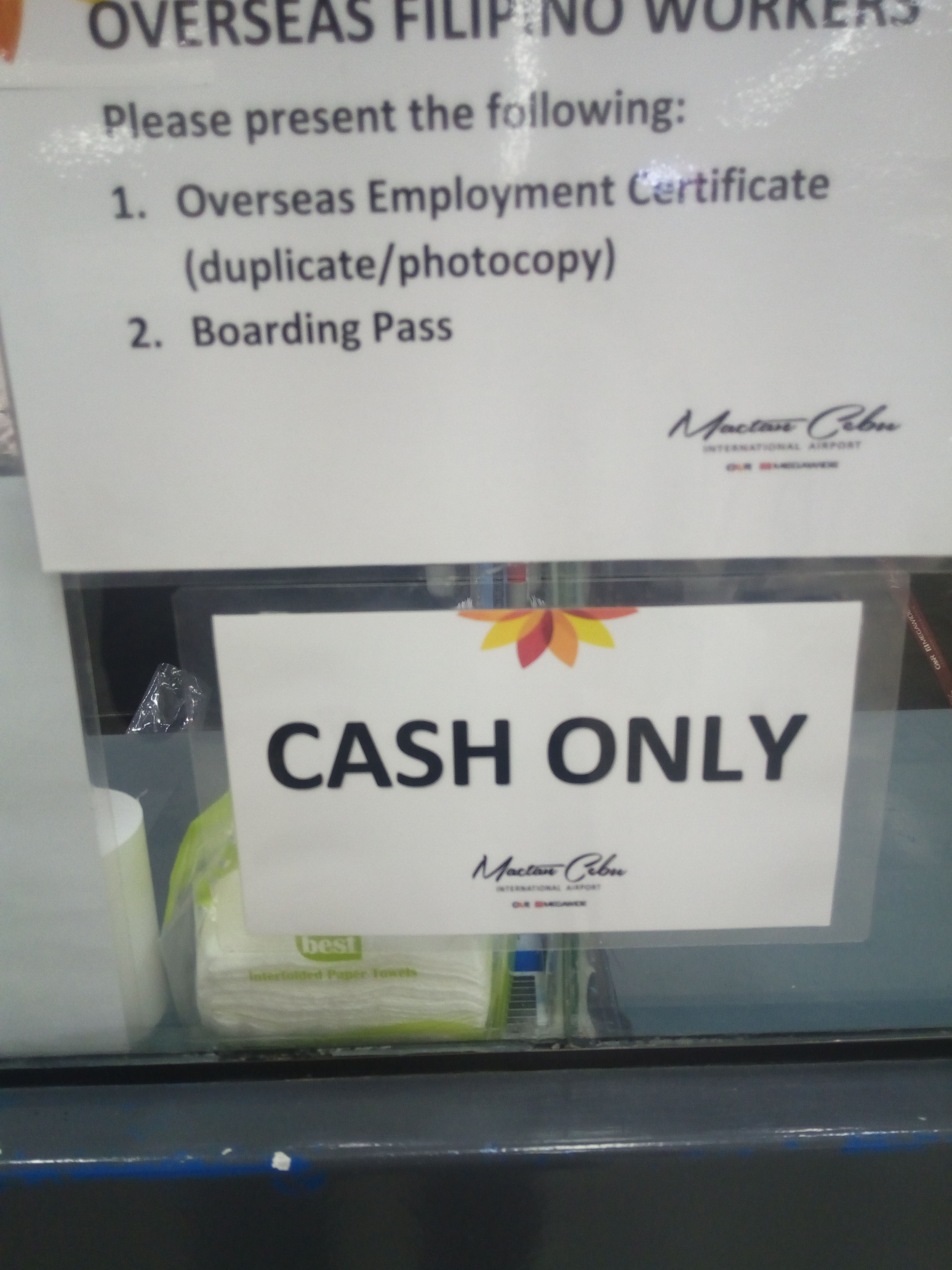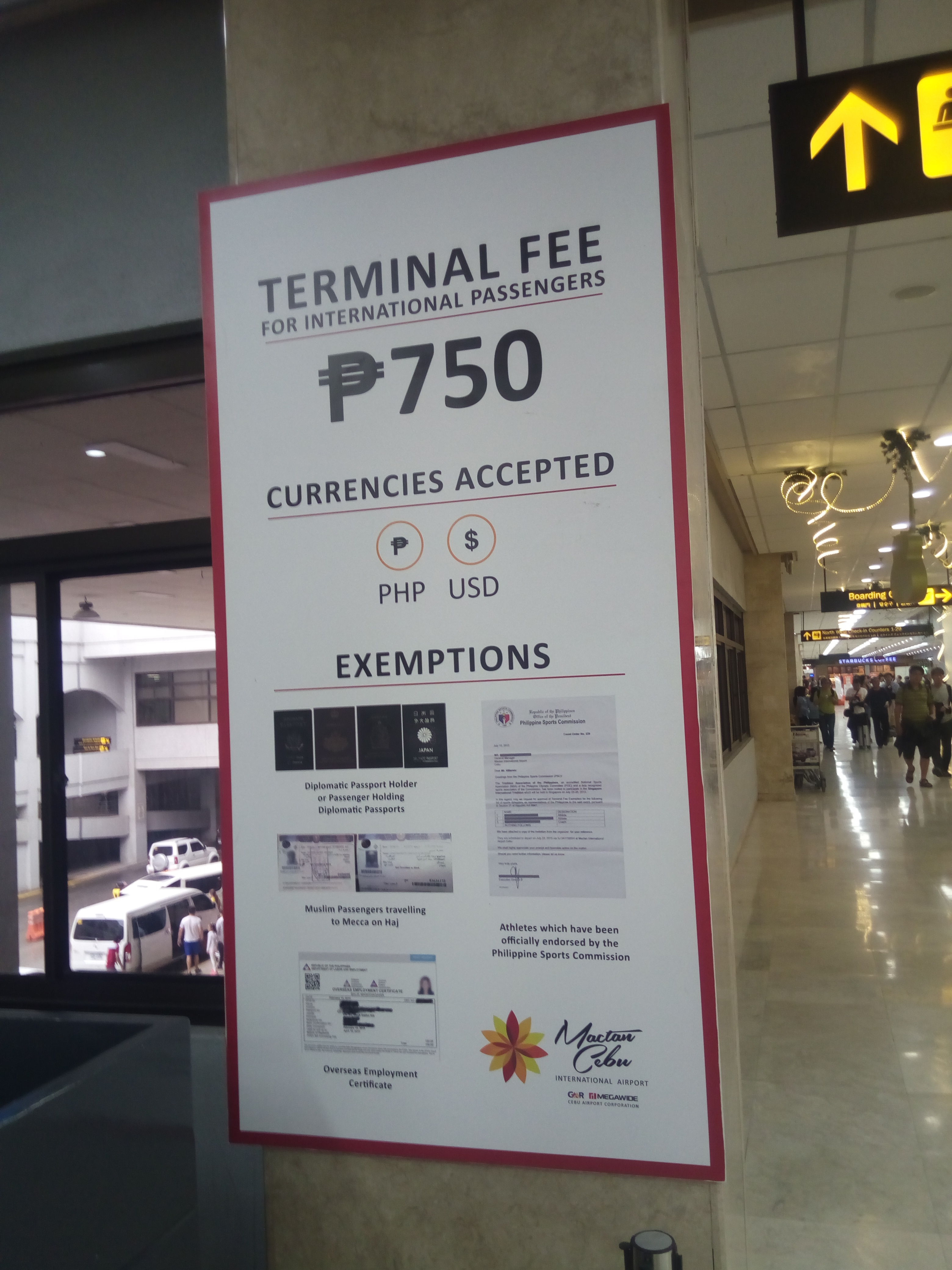 セブから帰国する際は、現金で1人当たり750ペソ必要です。
