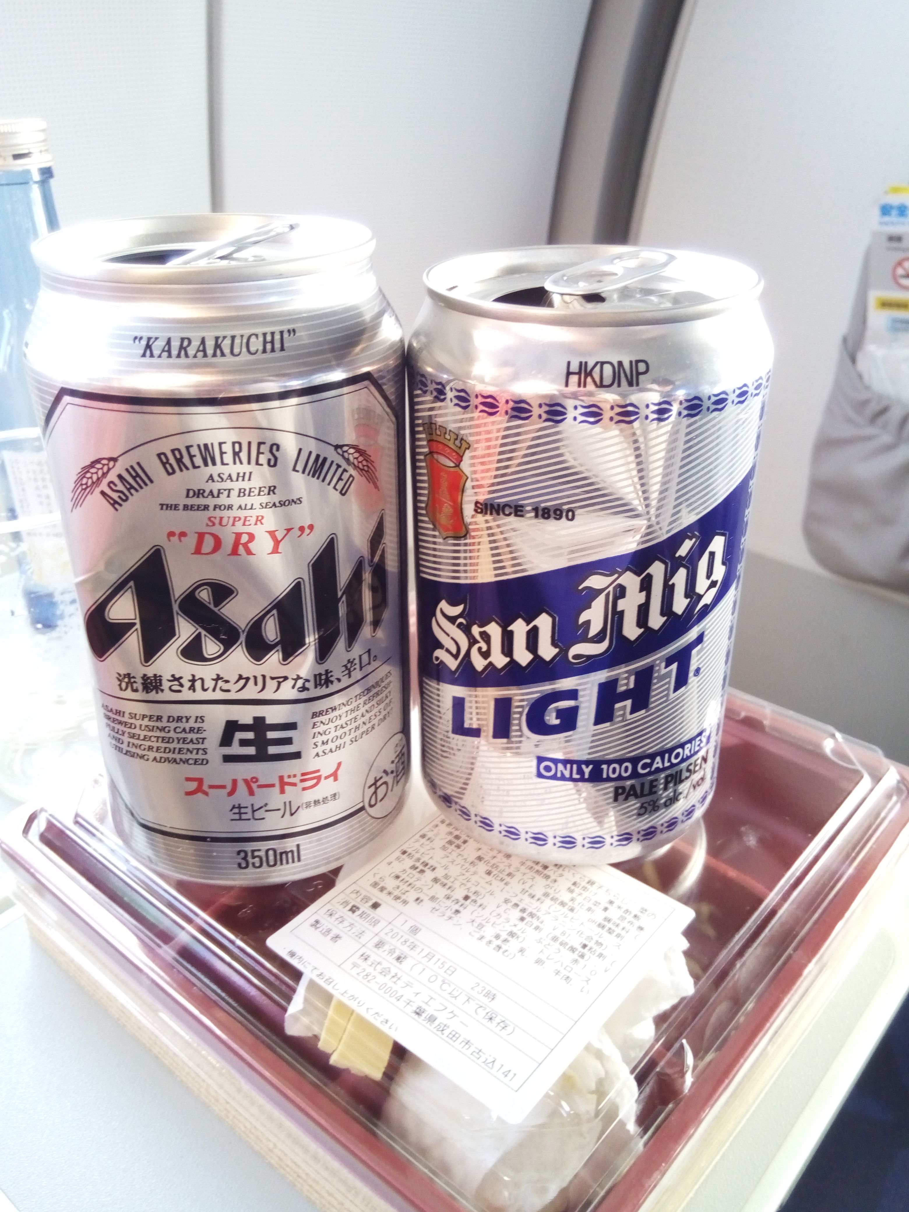 機内での持ち込みのお酒は飲めないので、乗る直前に飲んだサンミゲルと機内で買ったアサヒビール。