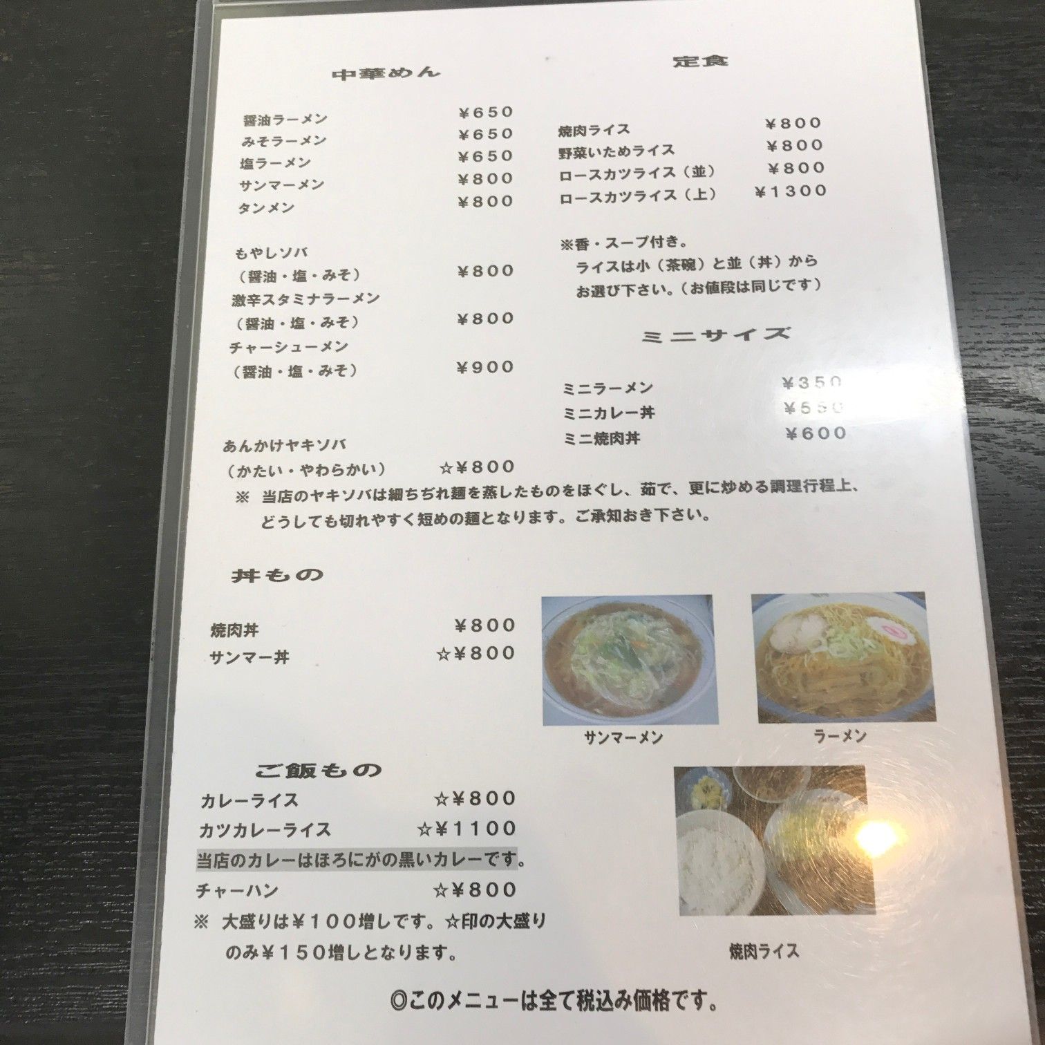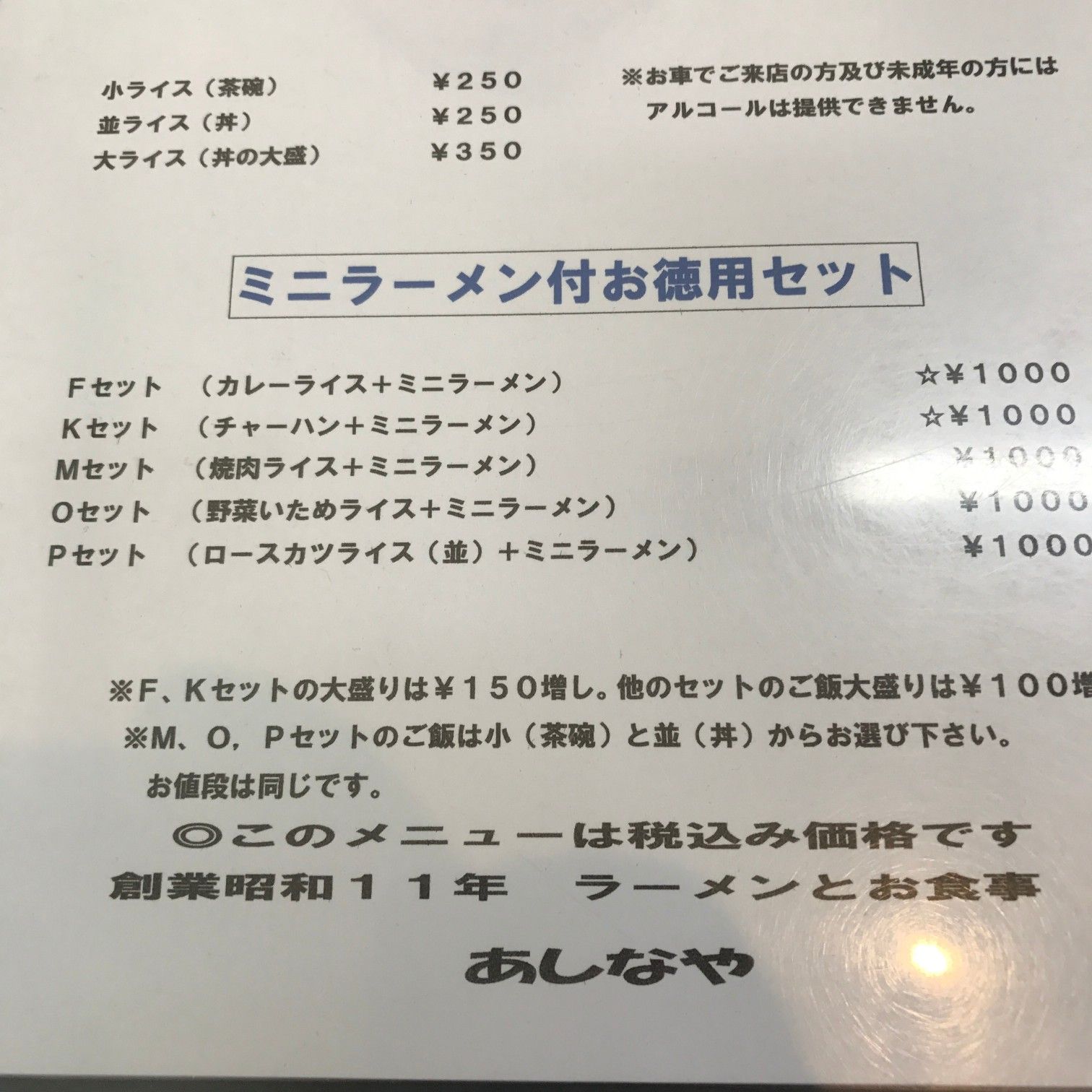 メニューはこんな感じでとても良心的。