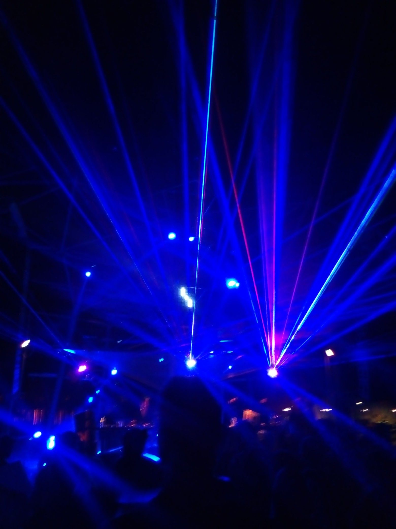 陽が落ちてから夜明けまで、照明ビカビカ、レーザーバシャバシャでした。