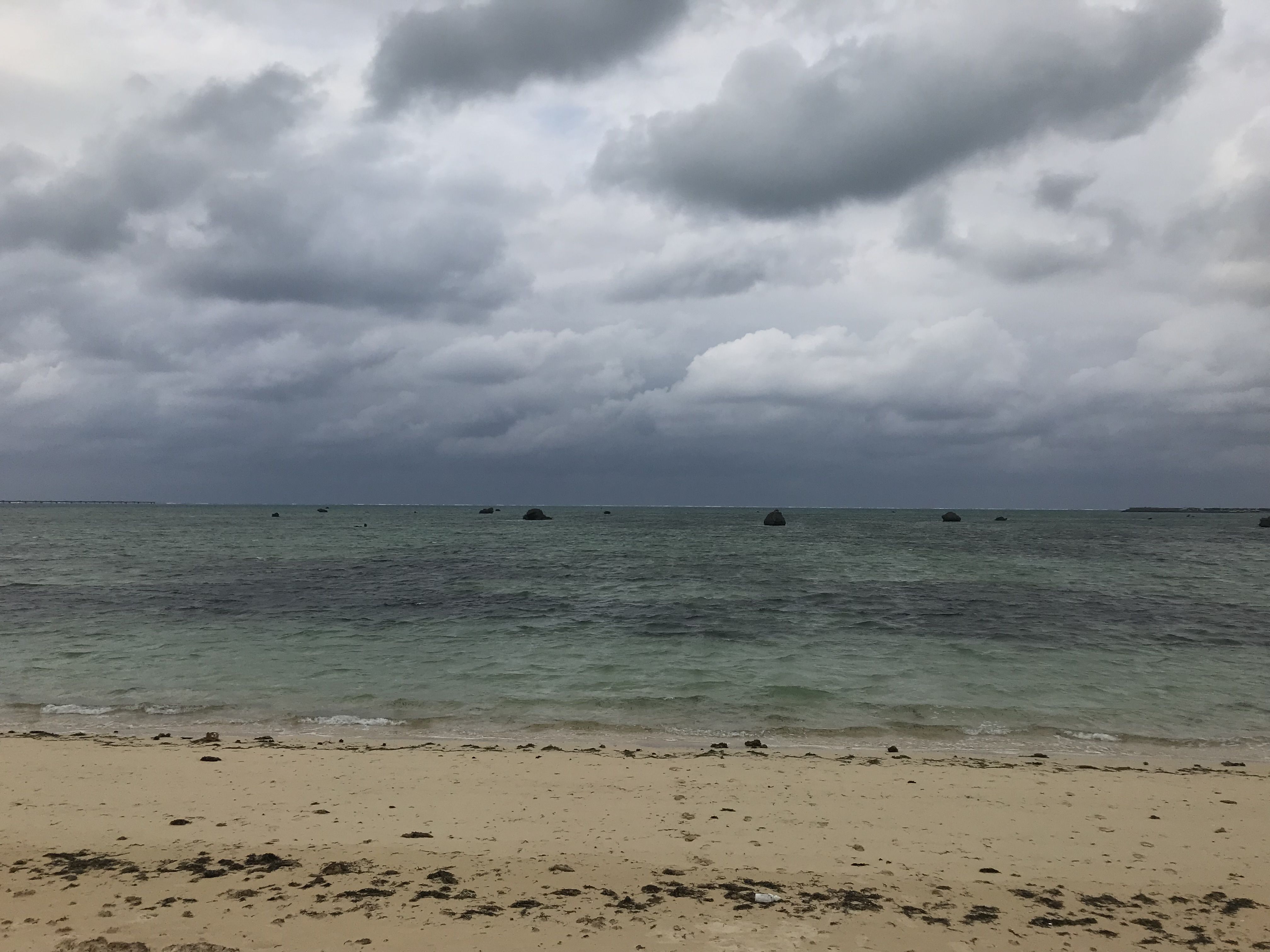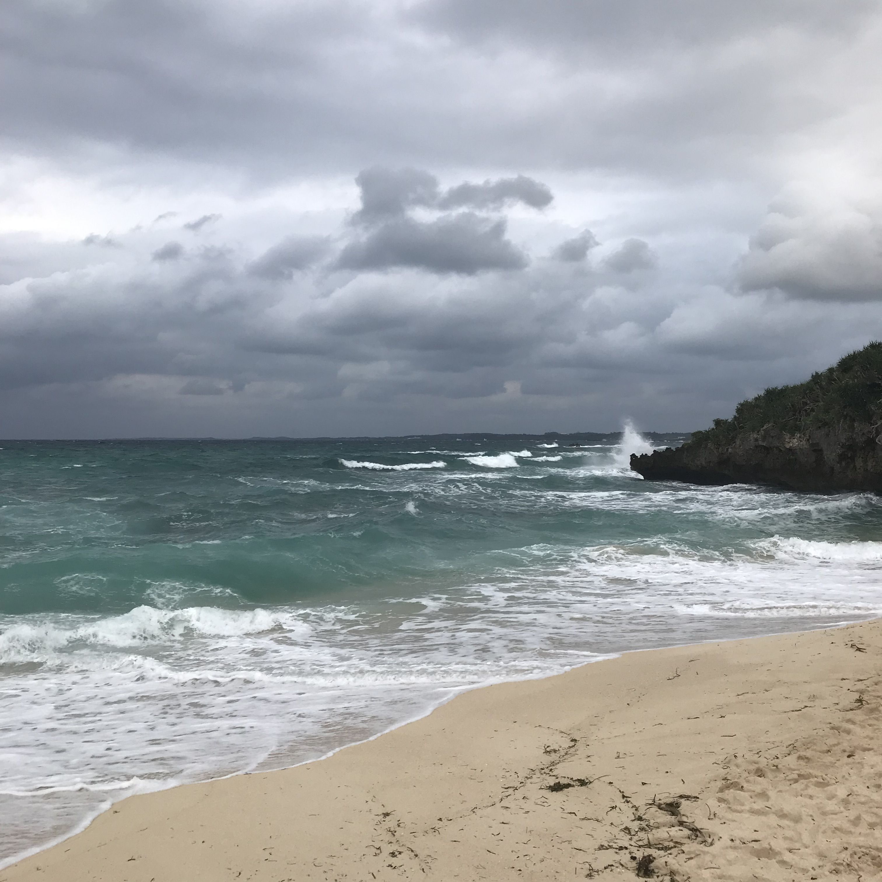 色々とビーチを巡りましたが、どこもこんな感じ。雨も降ってるし。。