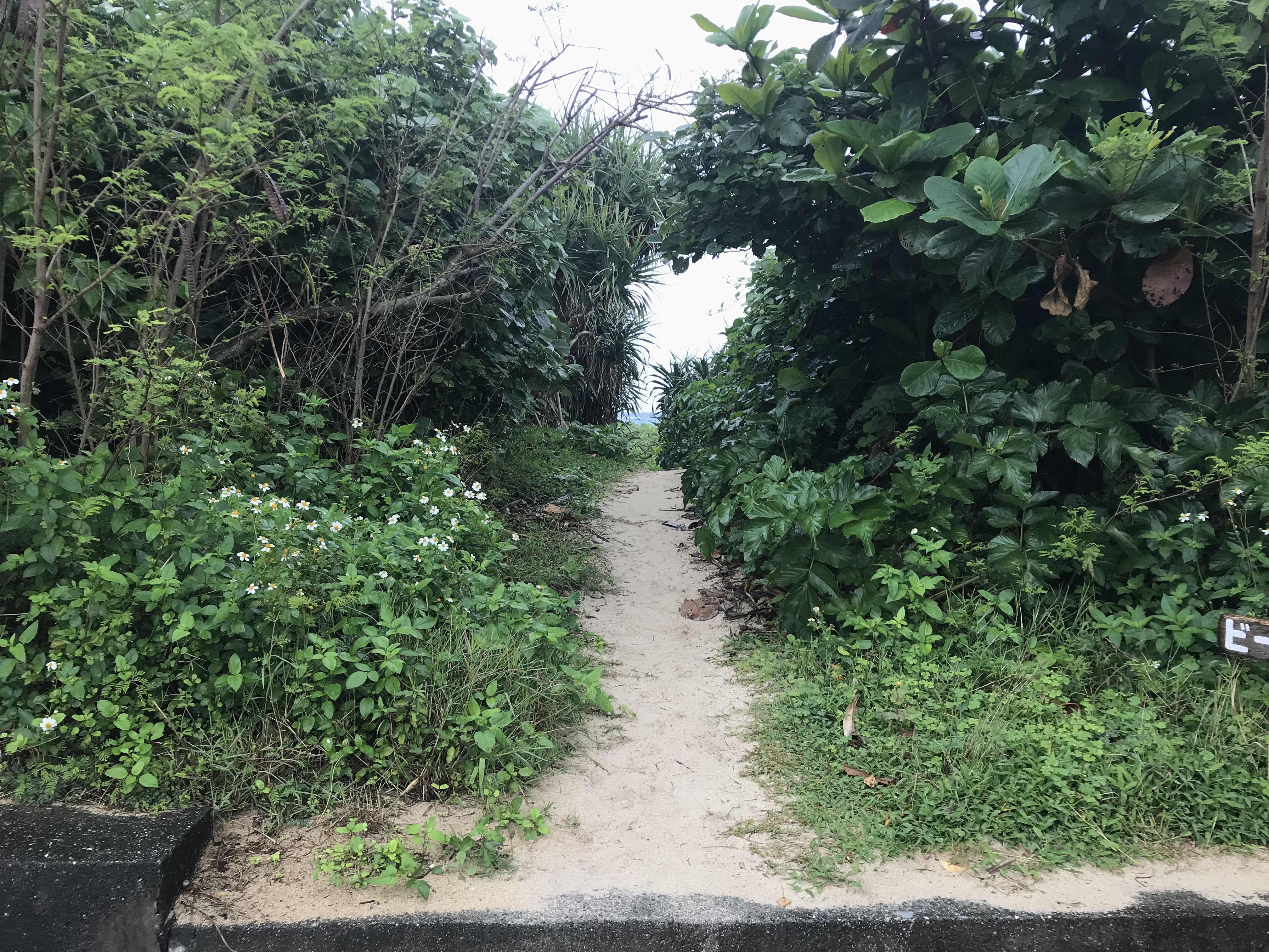 この道を歩いていくので、ビーチサンダルが良いかと思います。