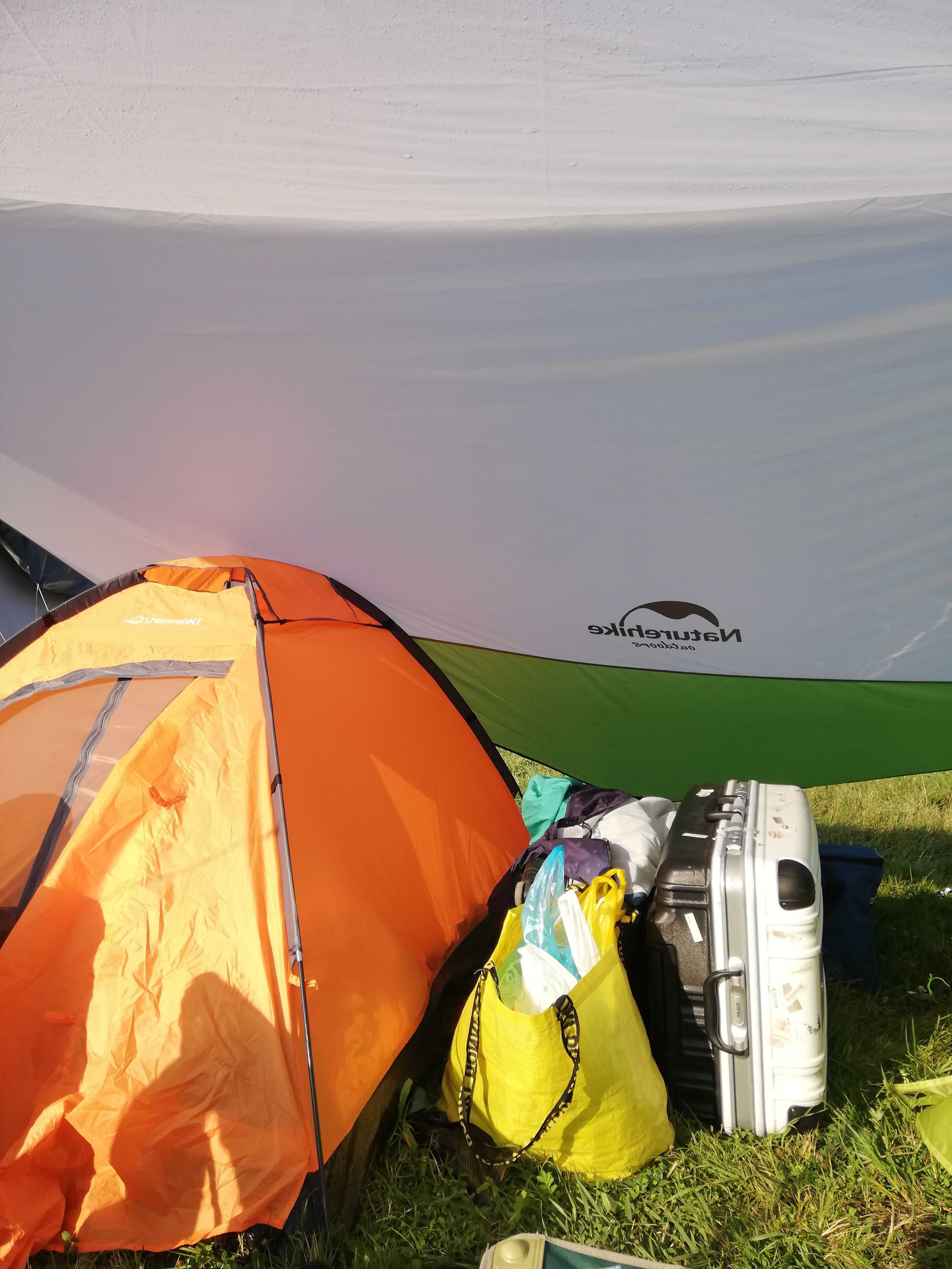 友だちがタープを持ってきてくれたので快適。