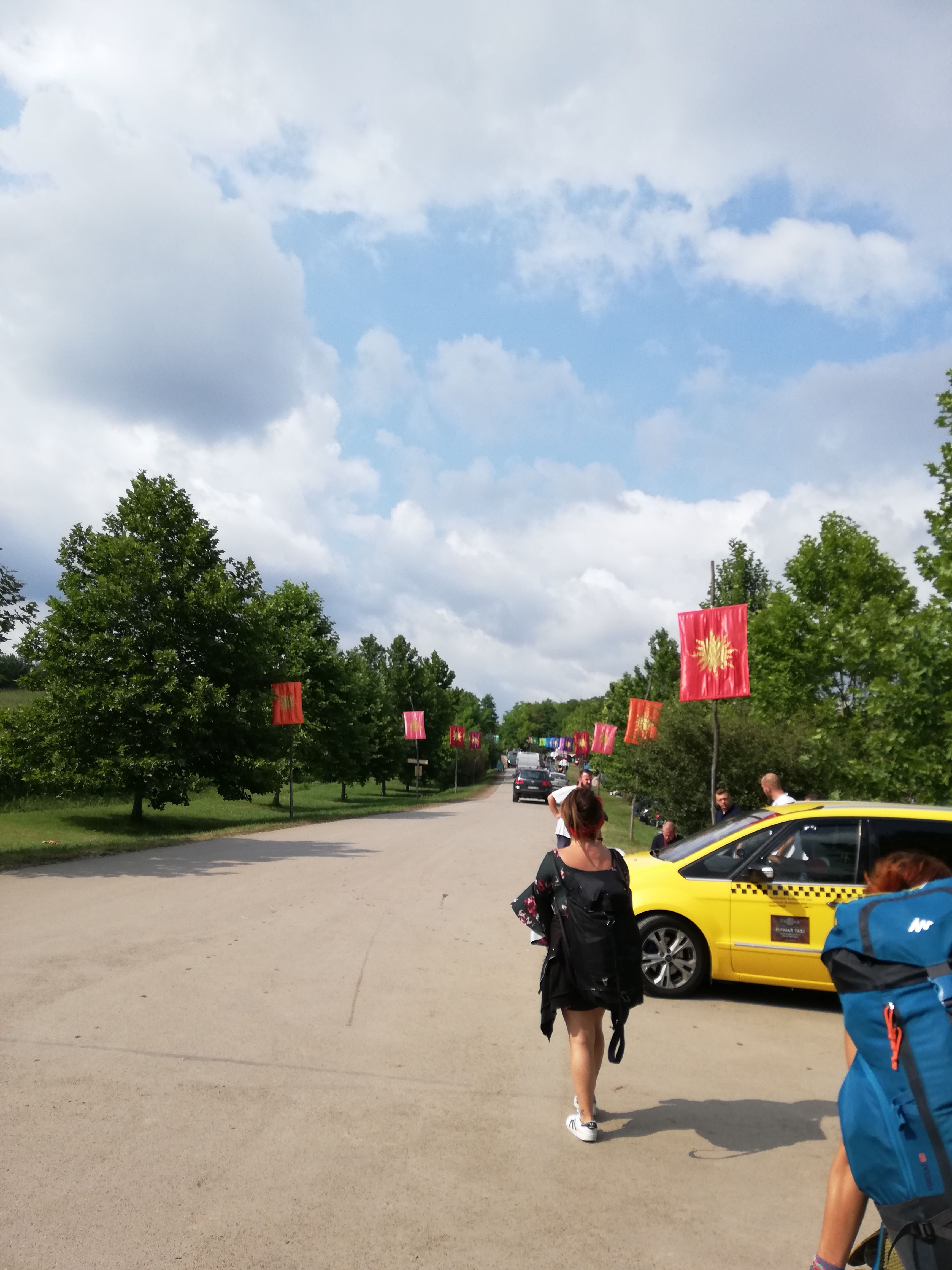 この炎天下の中、2kmぐらい歩かないとメイン会場に着きません。。