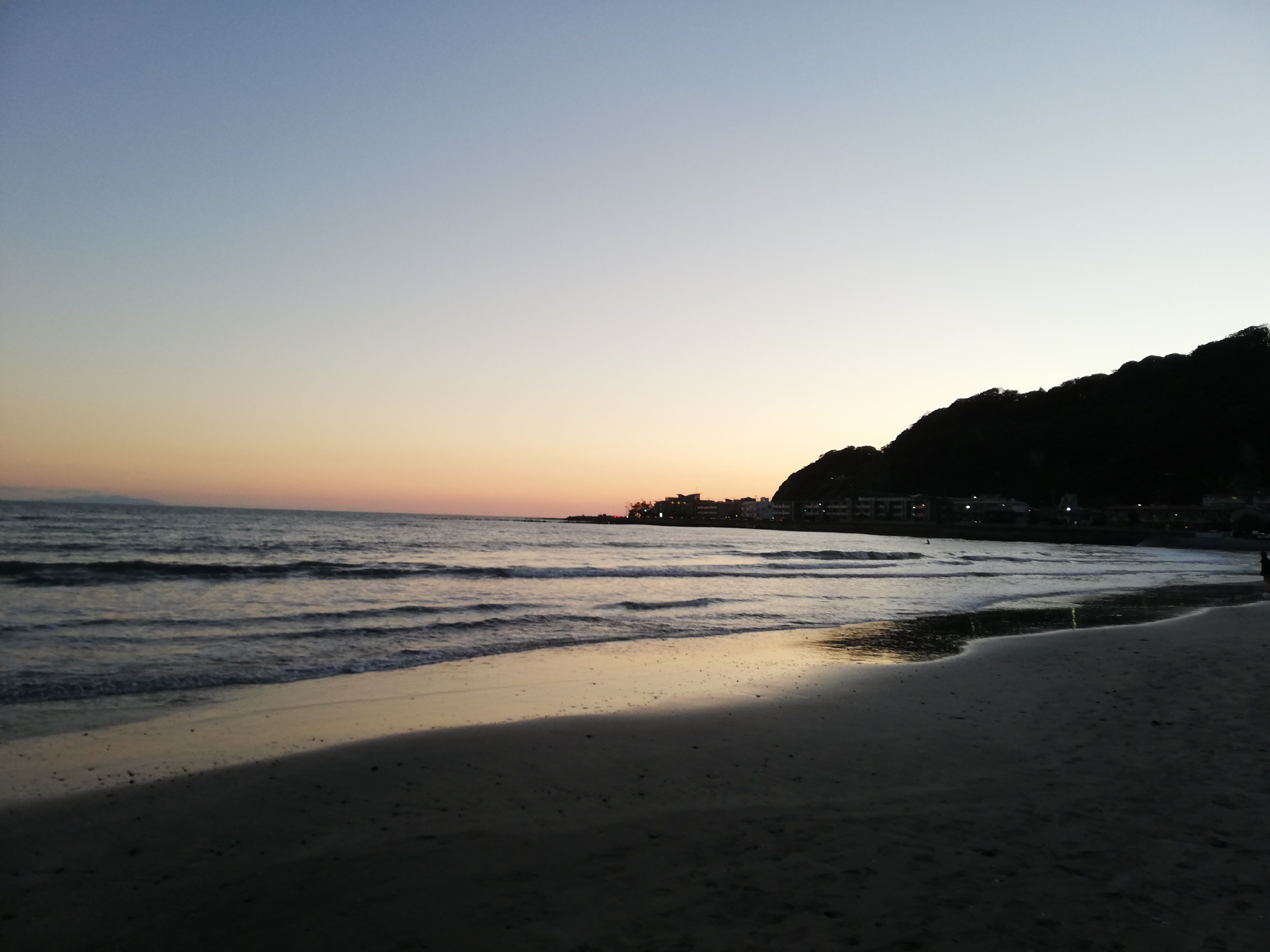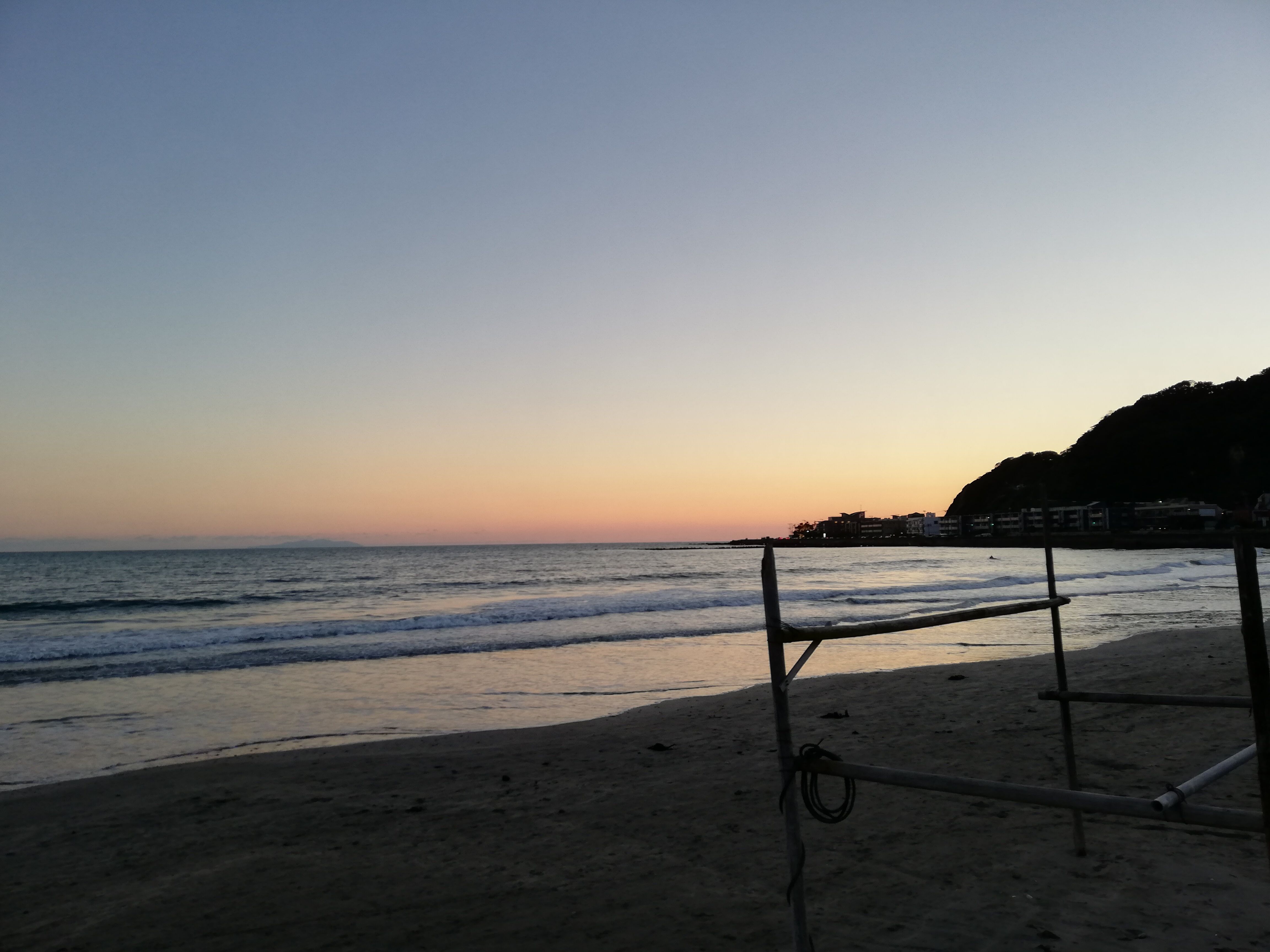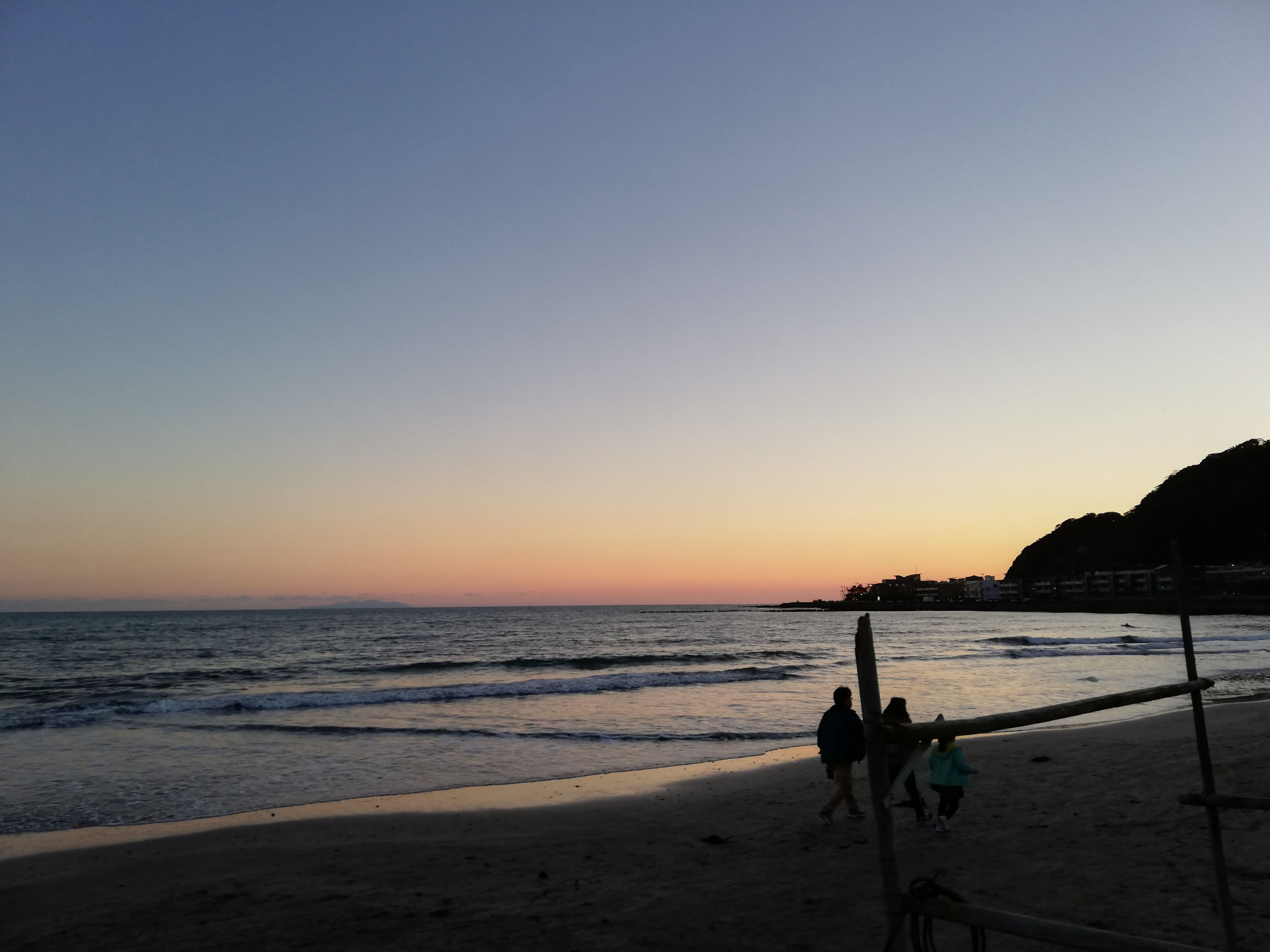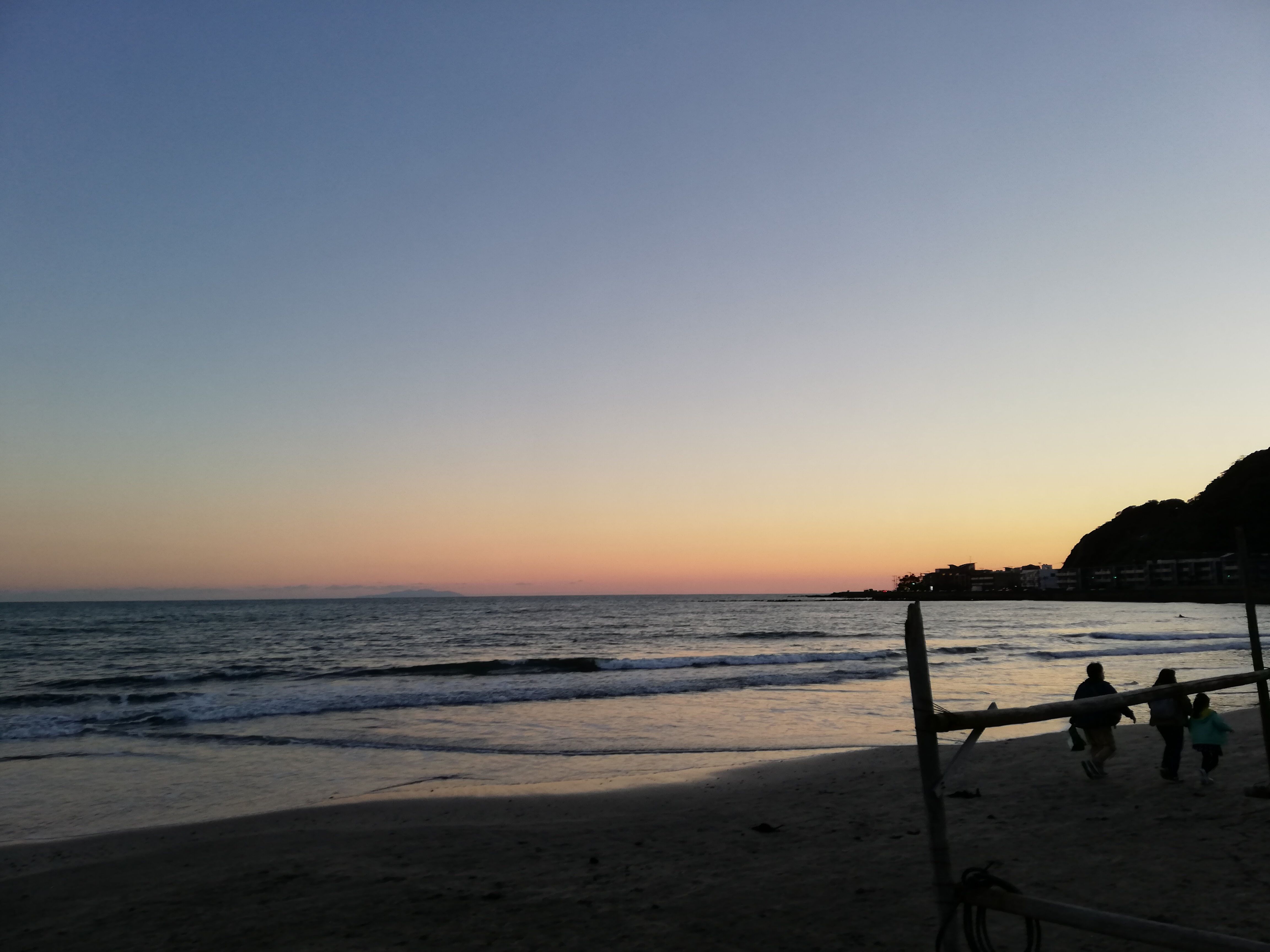 自転車を借りて、茅ケ崎の方に行こうと思ったら、自転車が借りられずに由比ガ浜で夕日鑑賞。