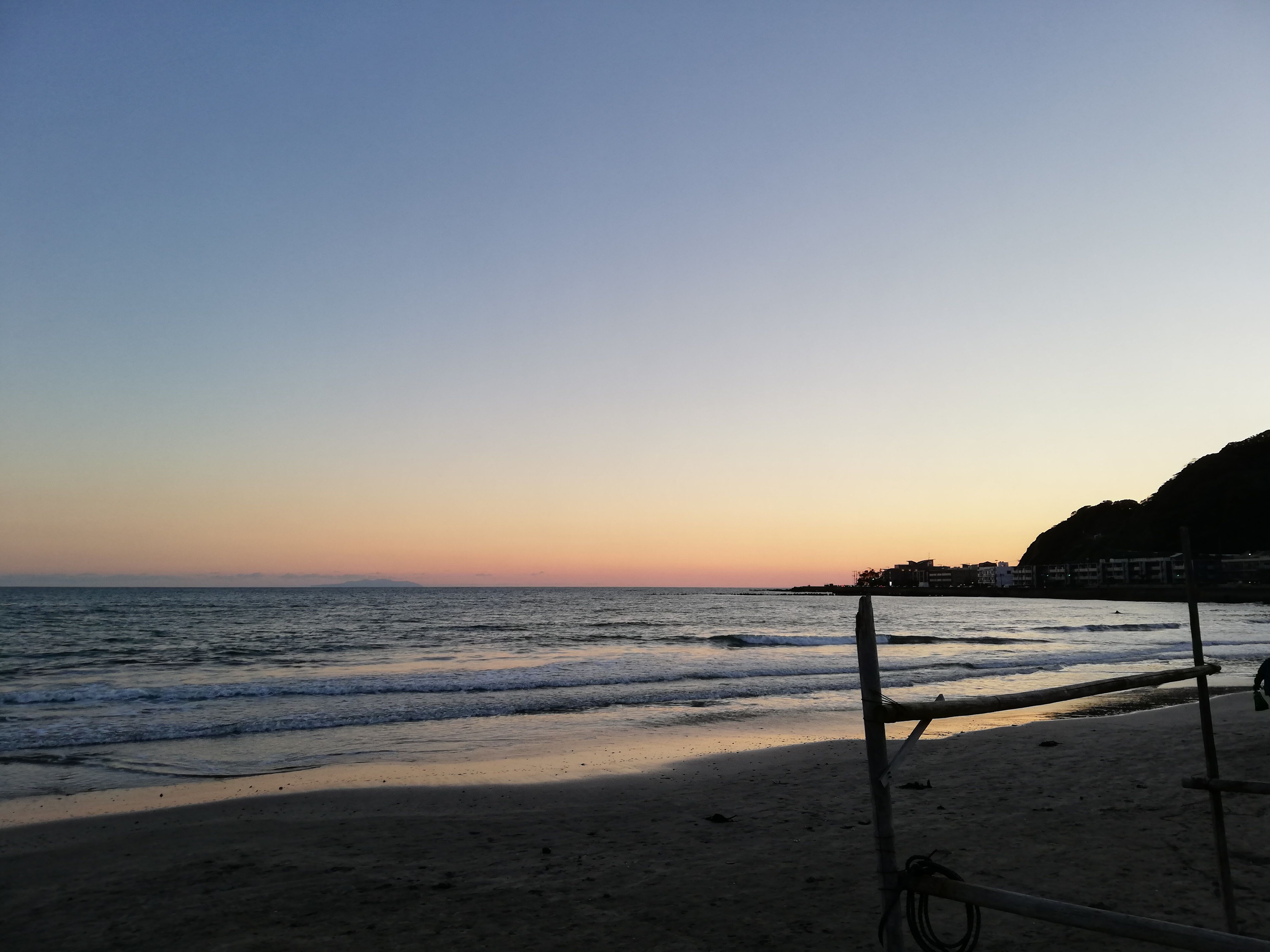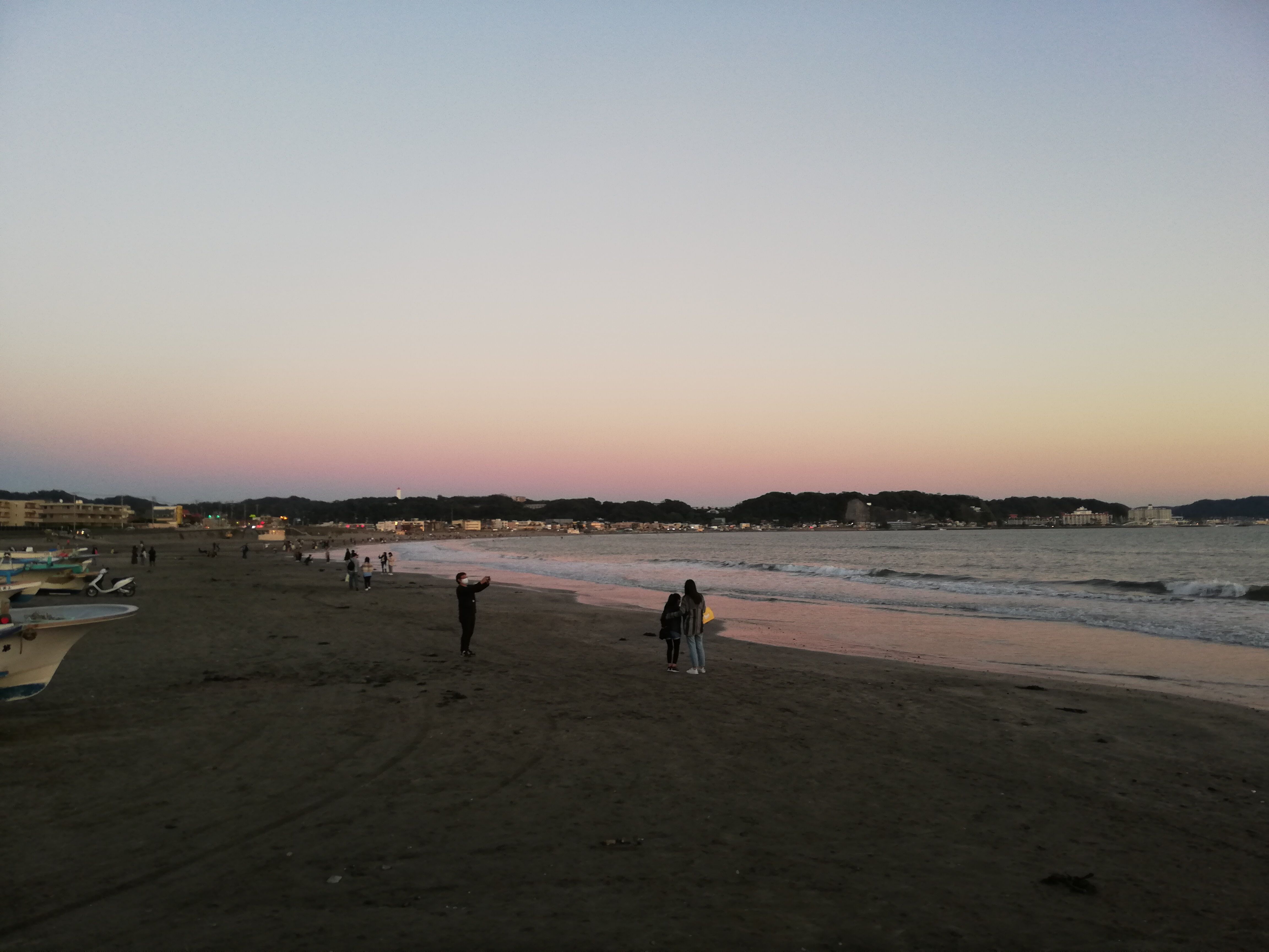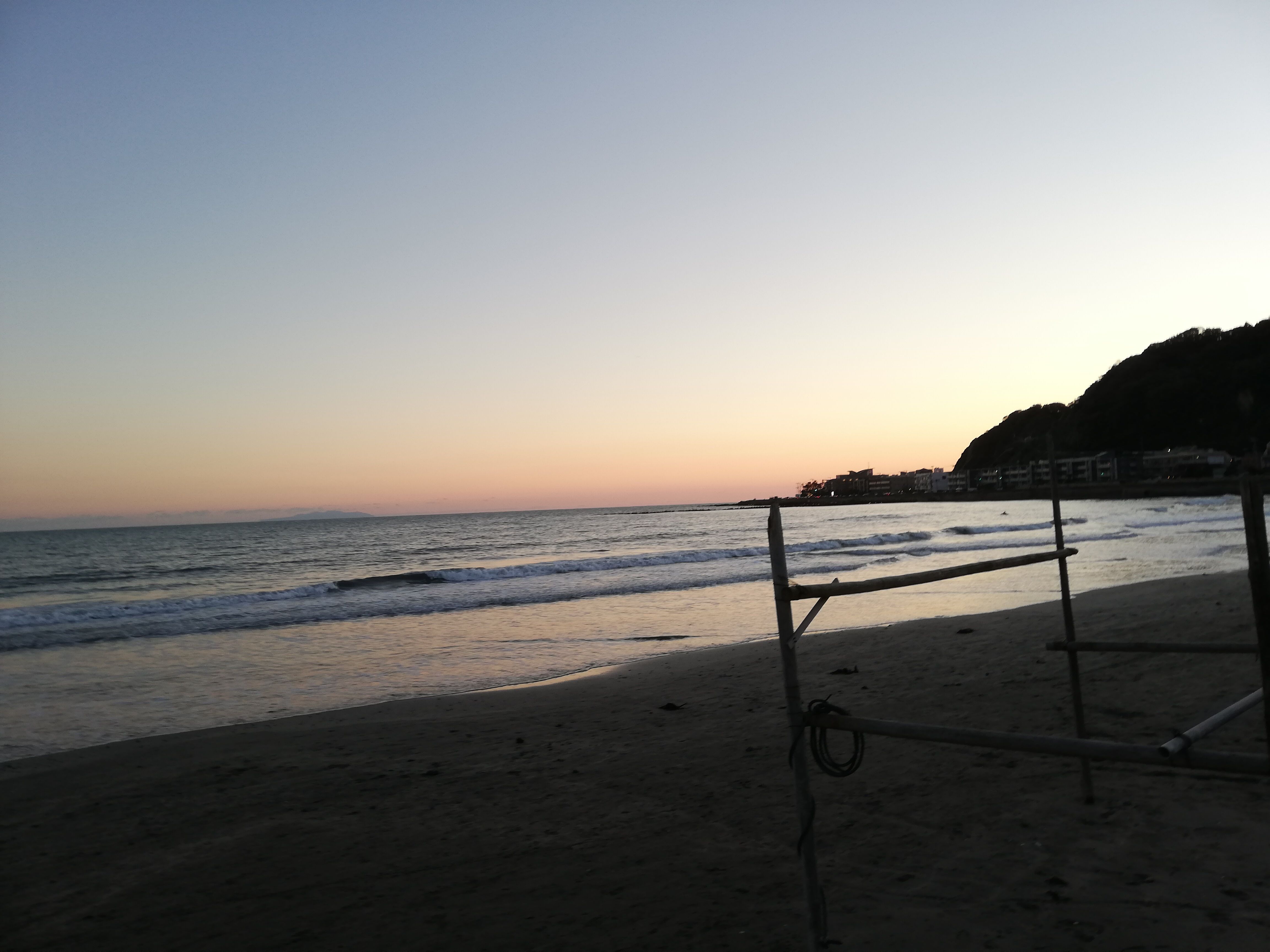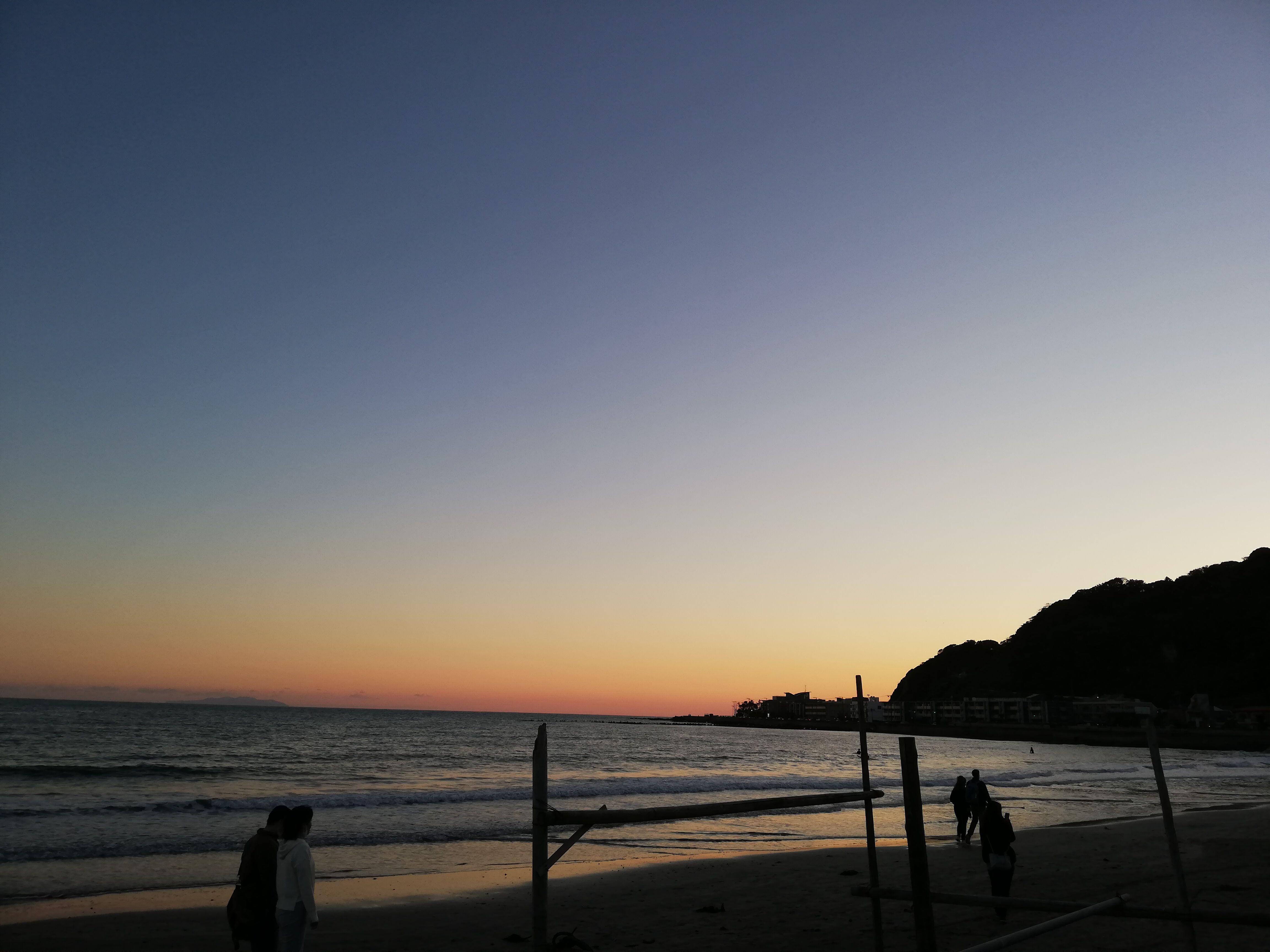 自転車を借りて、茅ケ崎の方に行こうと思ったら、自転車が借りられずに由比ガ浜で夕日鑑賞。