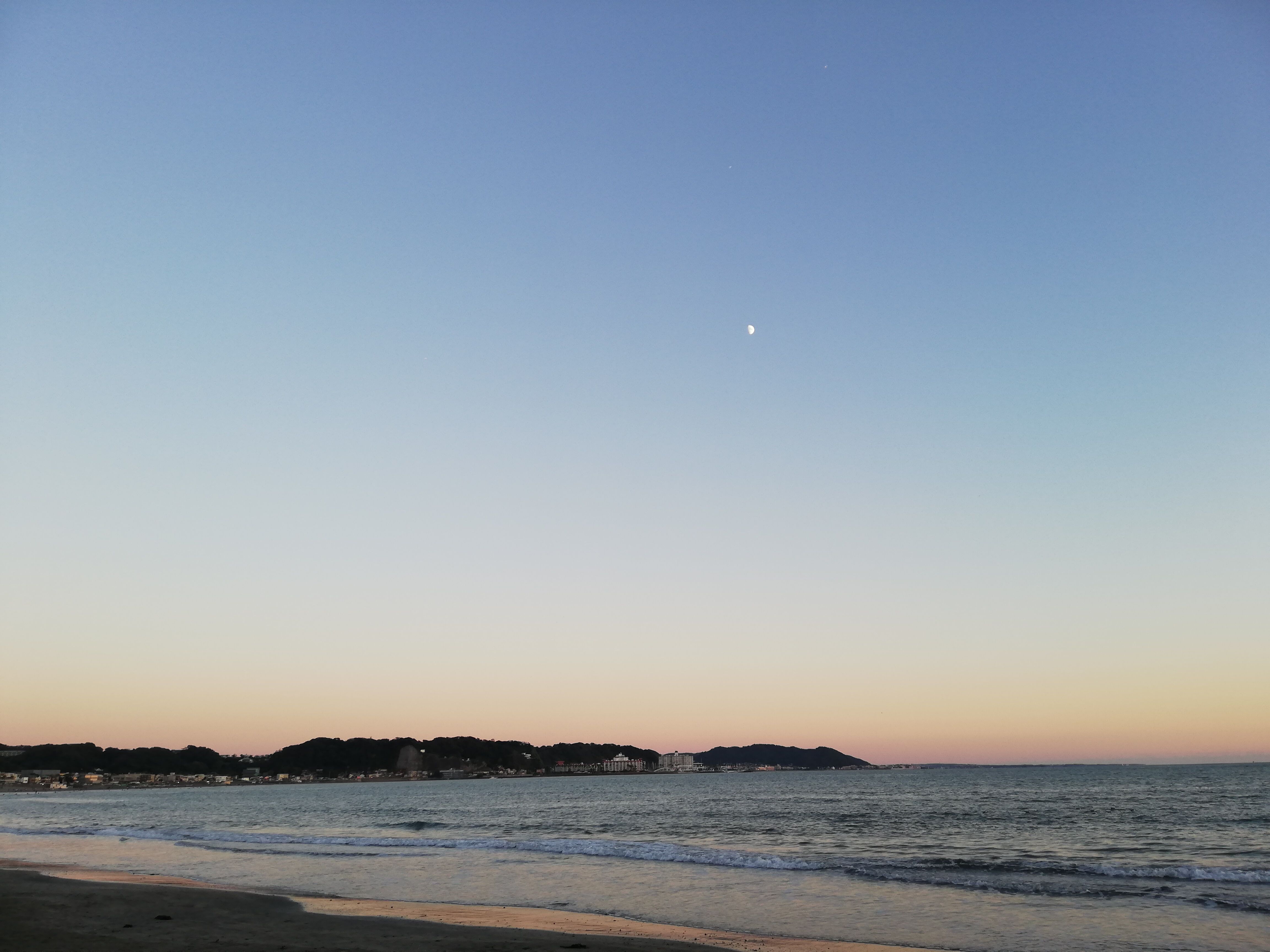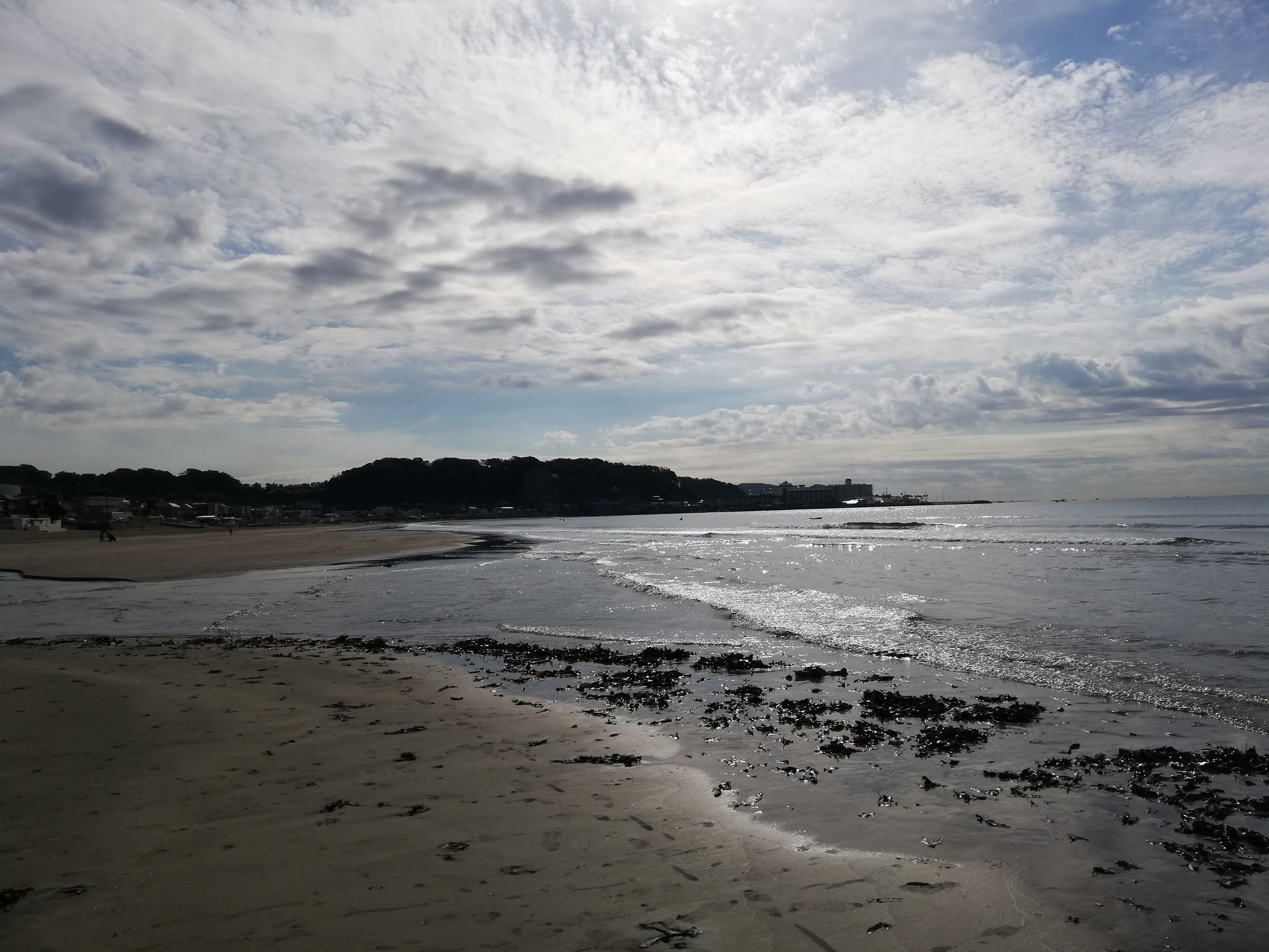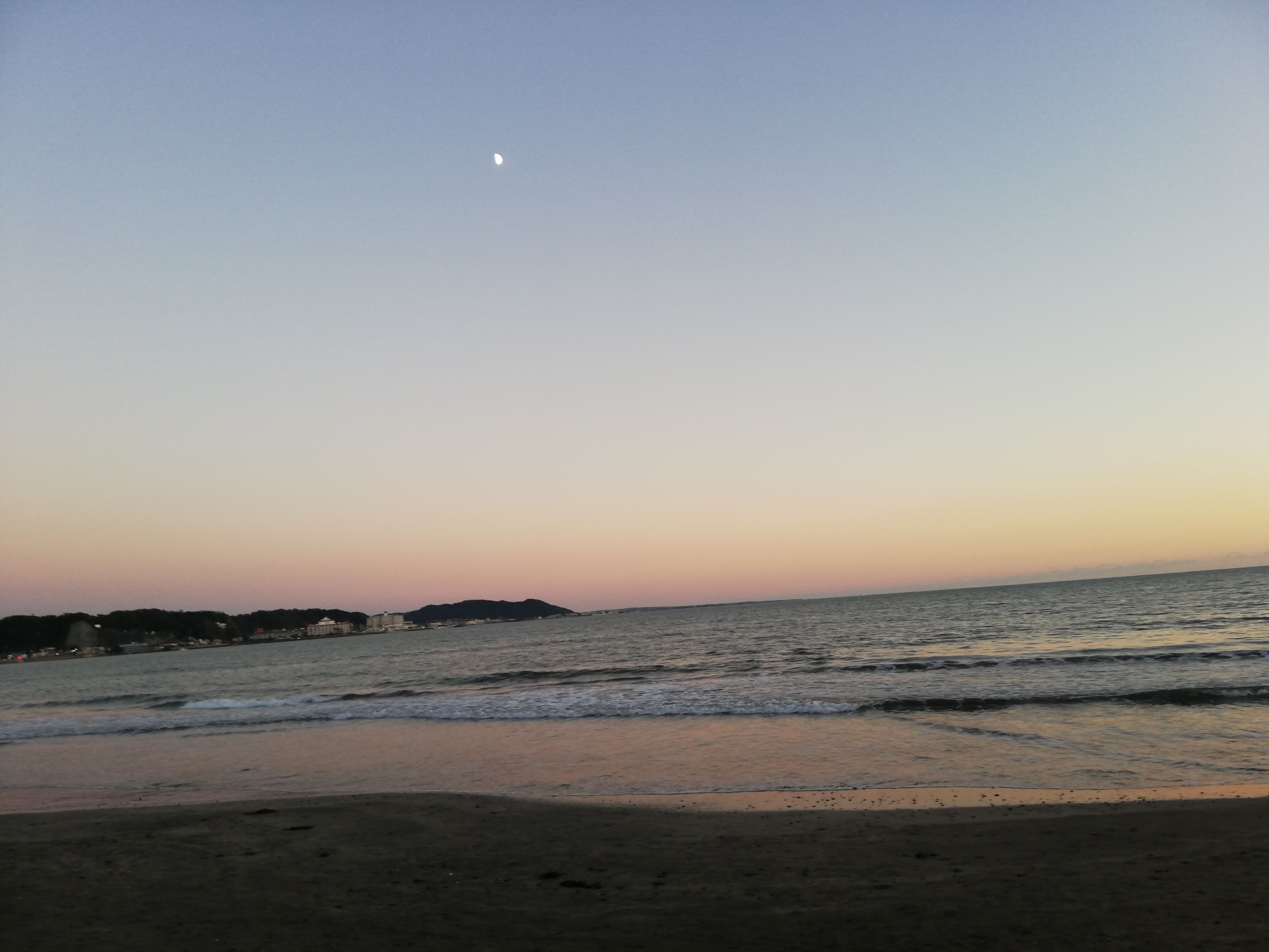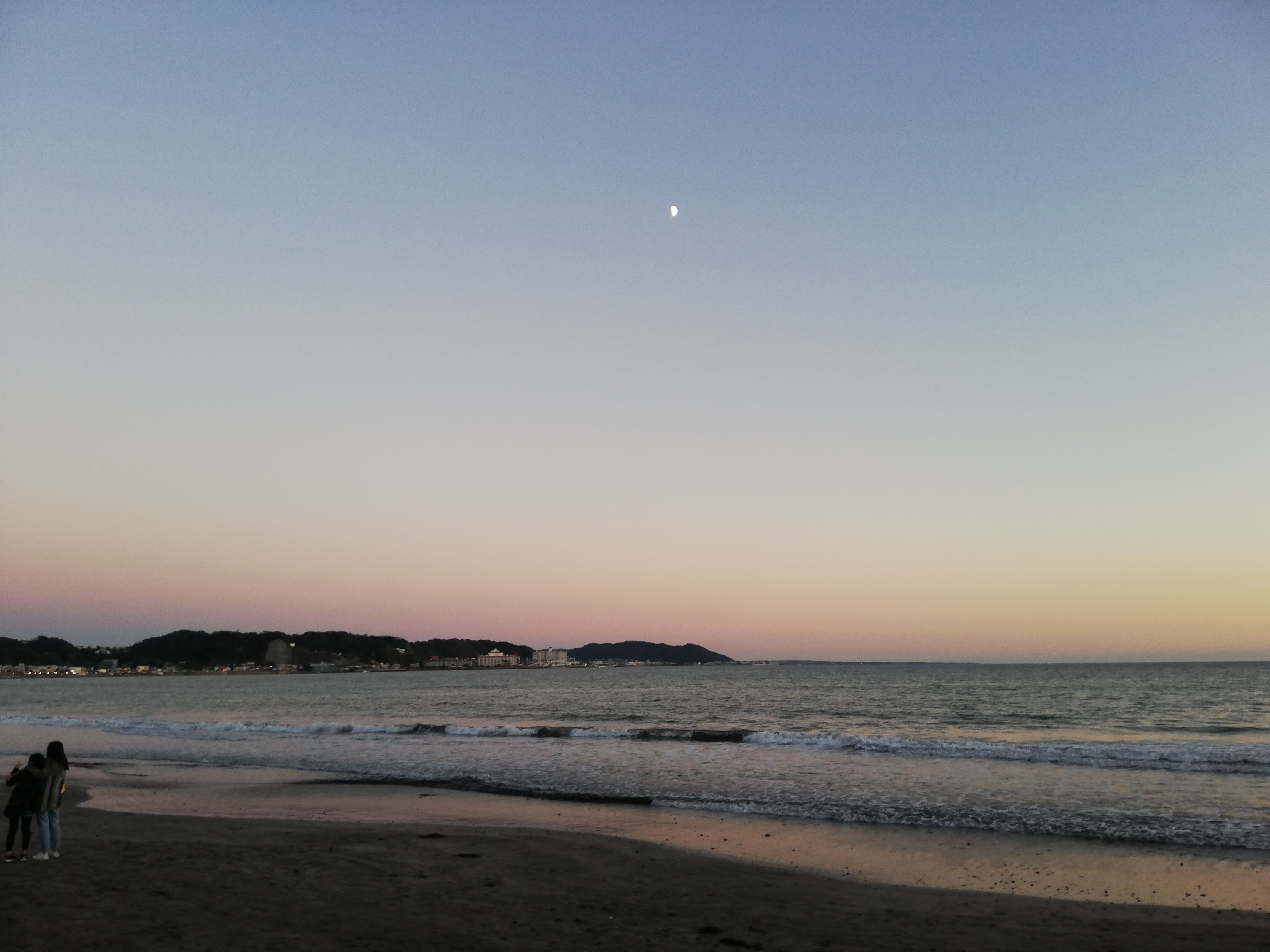 自転車を借りて、茅ケ崎の方に行こうと思ったら、自転車が借りられずに由比ガ浜で夕日鑑賞。