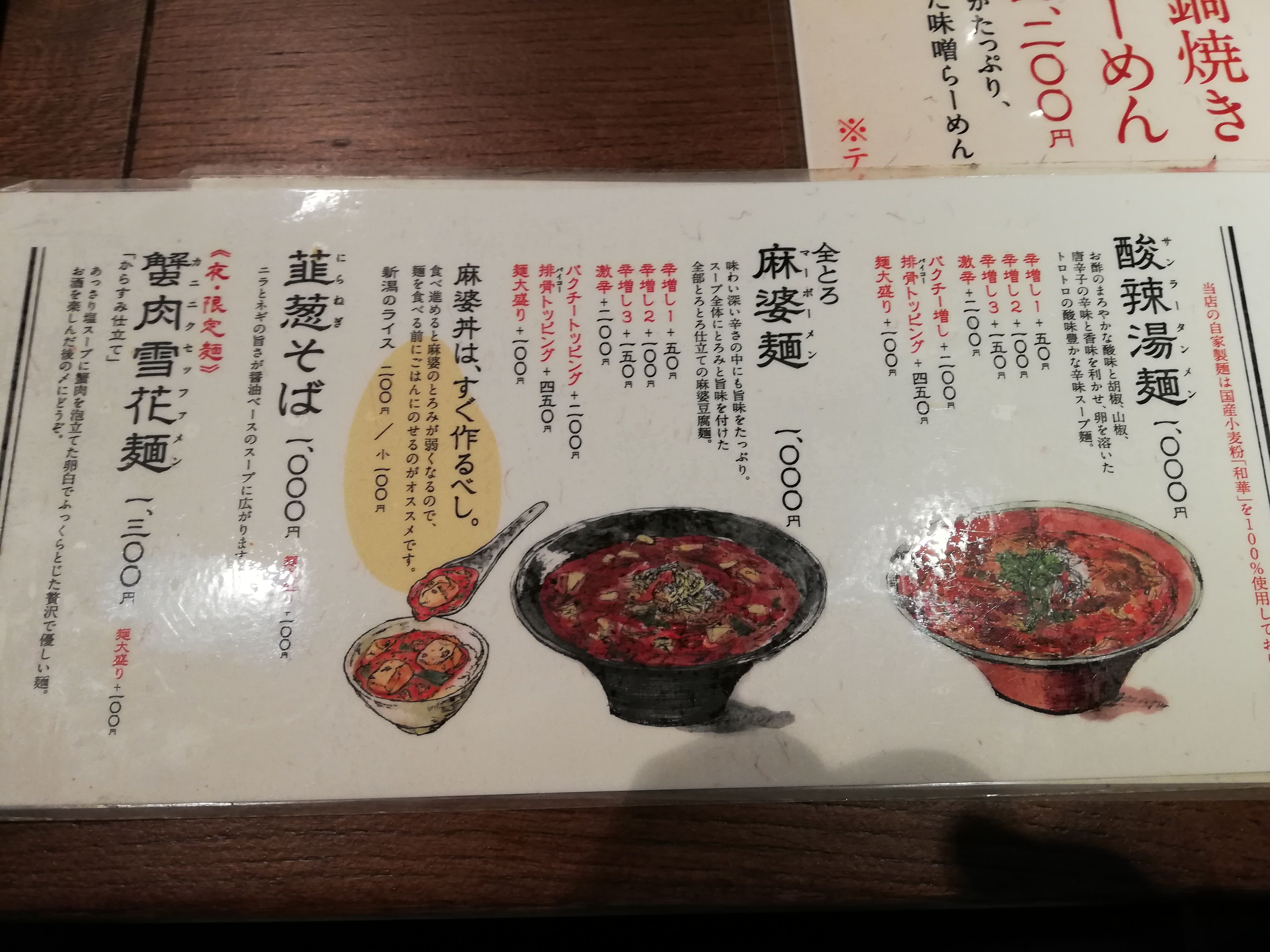 初回は麻婆麺、次に酸辣湯麺という流れがお勧め。
