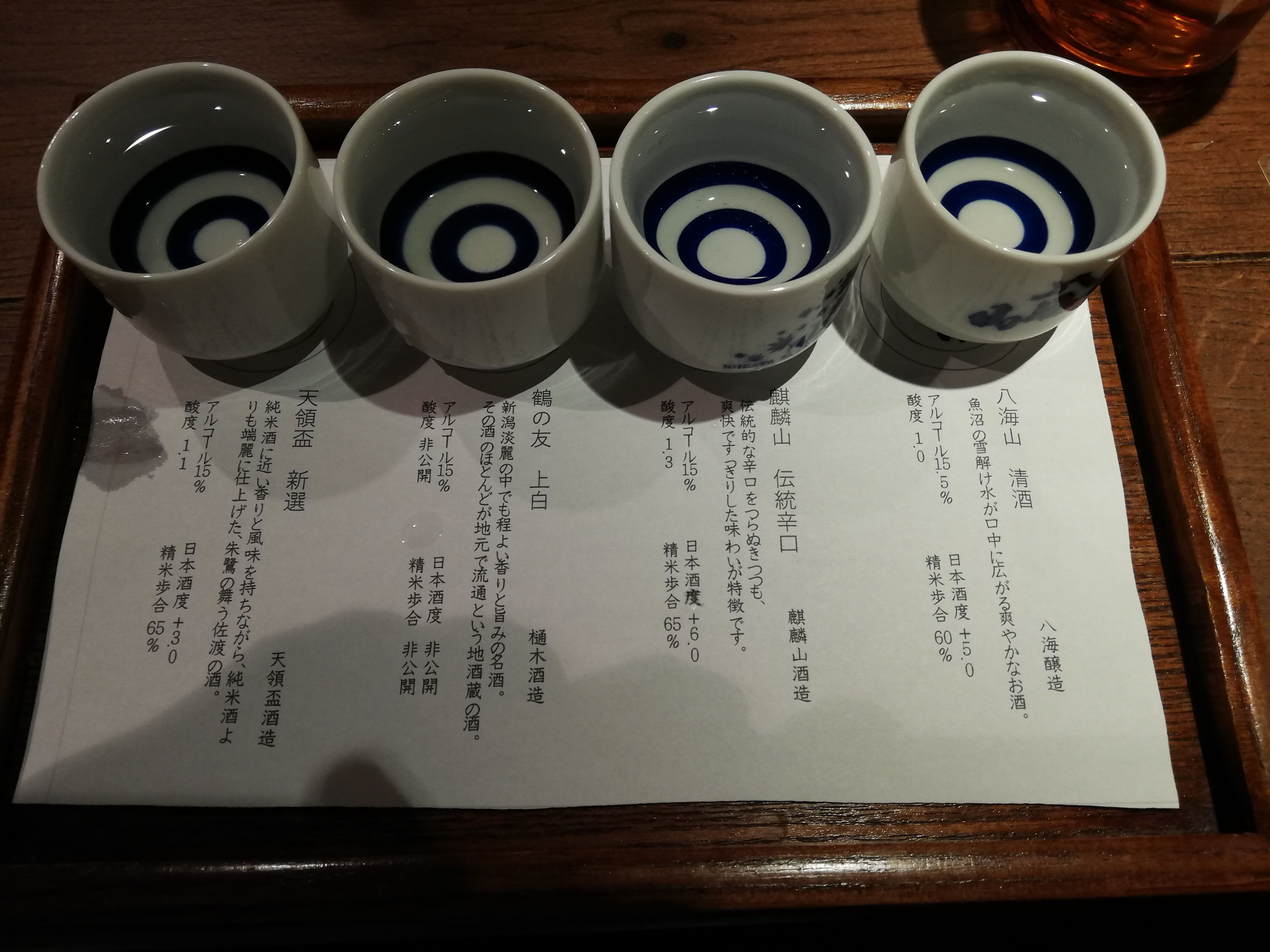 利き酒セットを飲みながら、