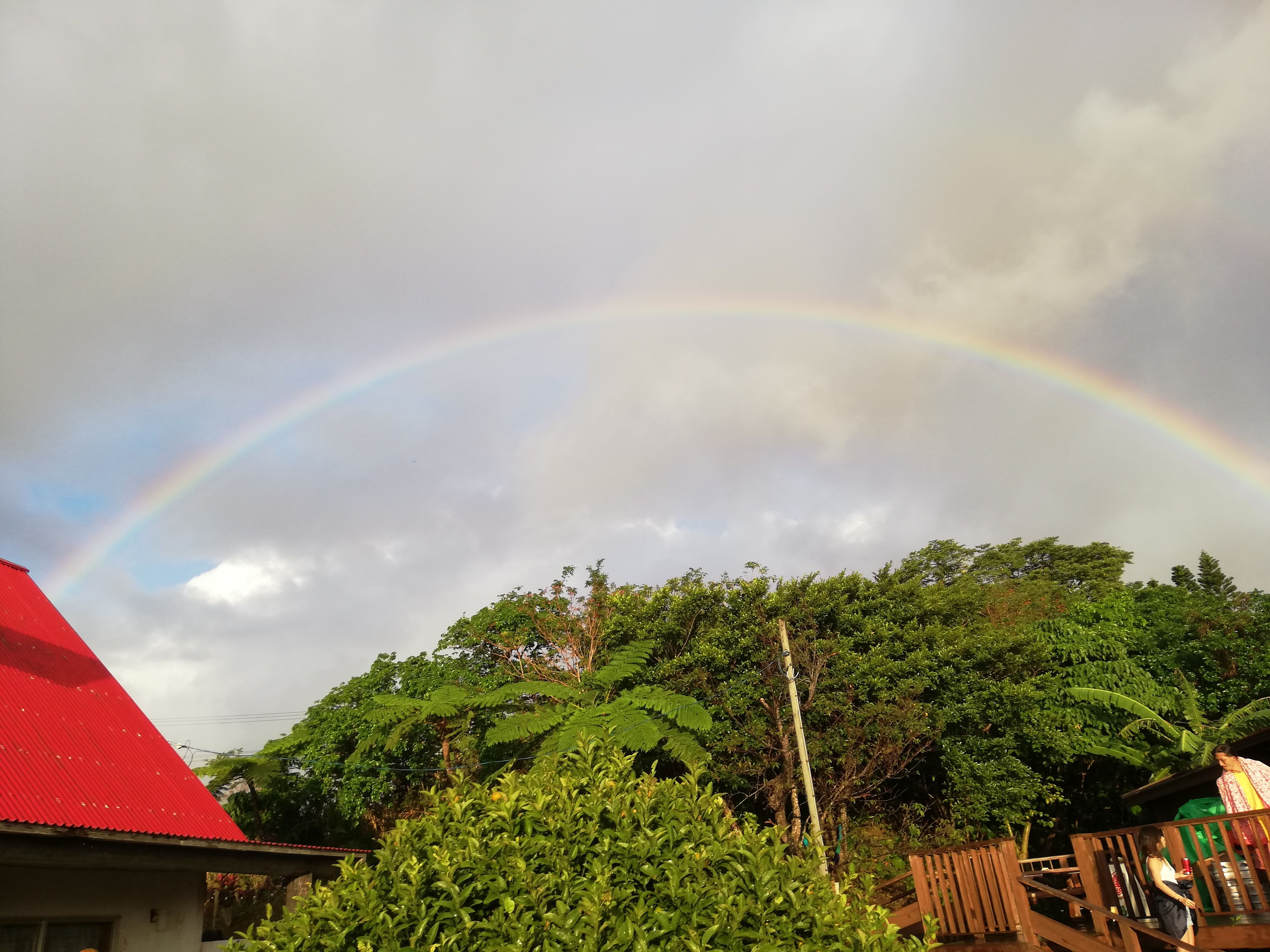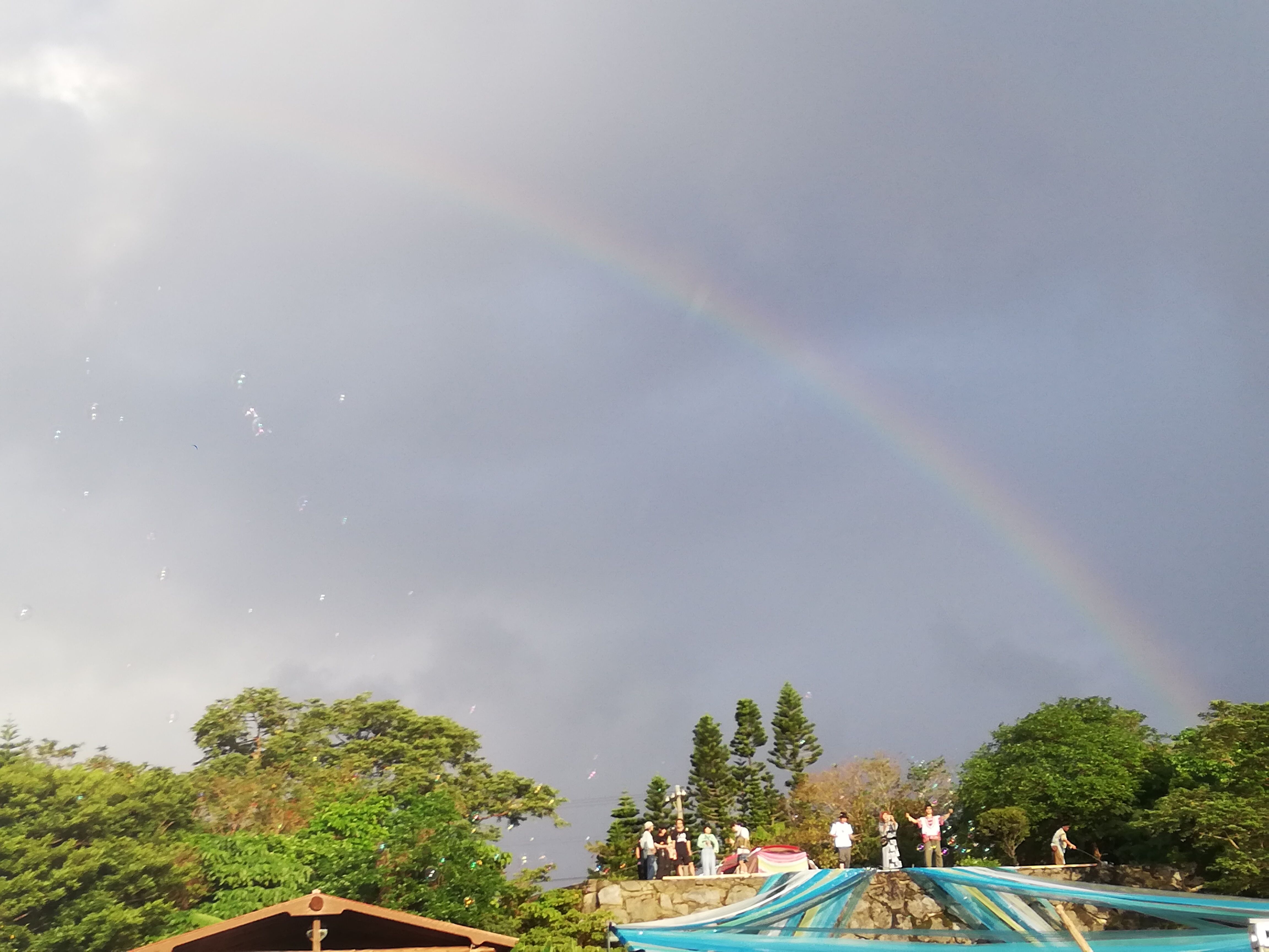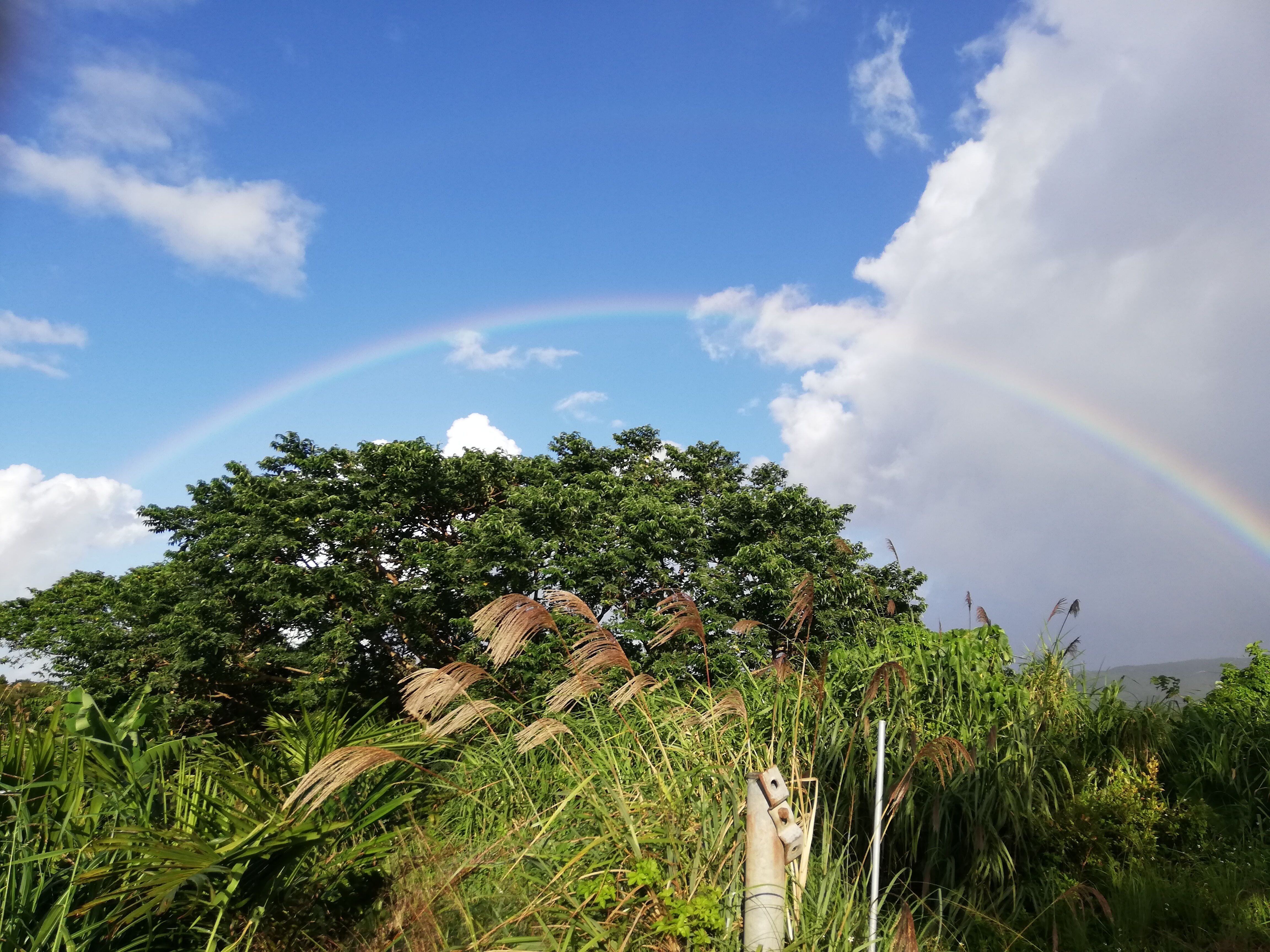 沖縄っぽく、降ったりやんだりで虹。