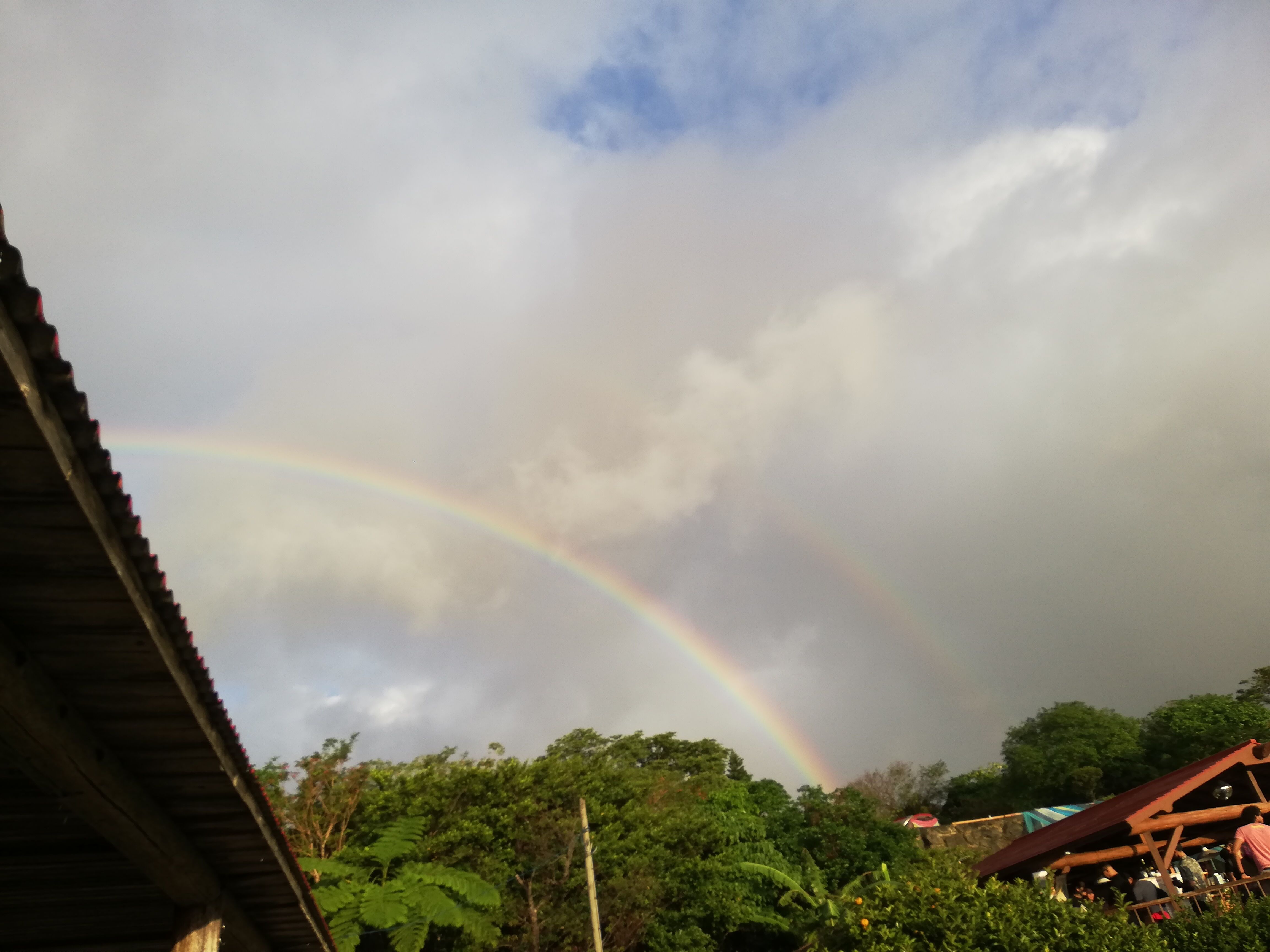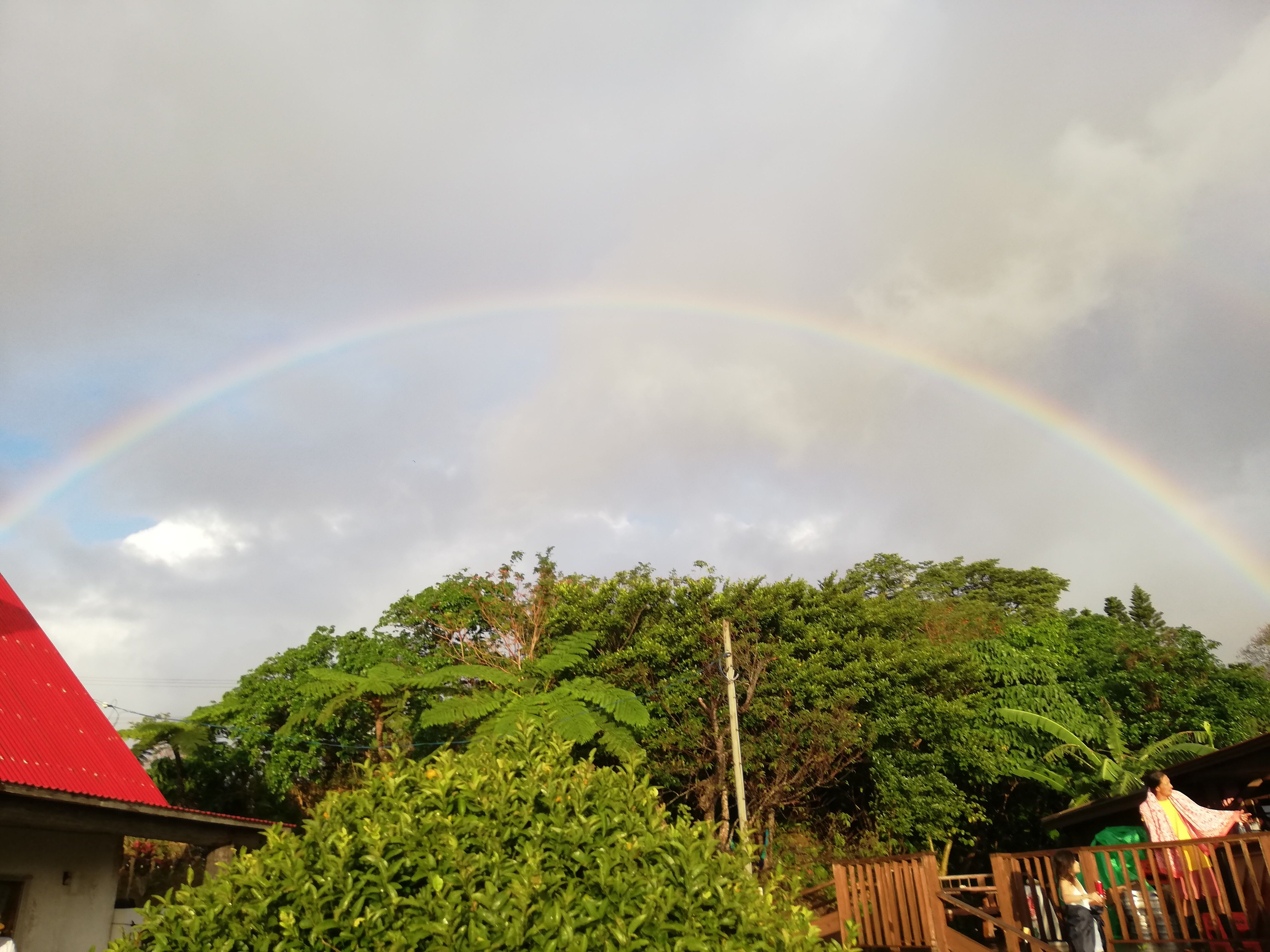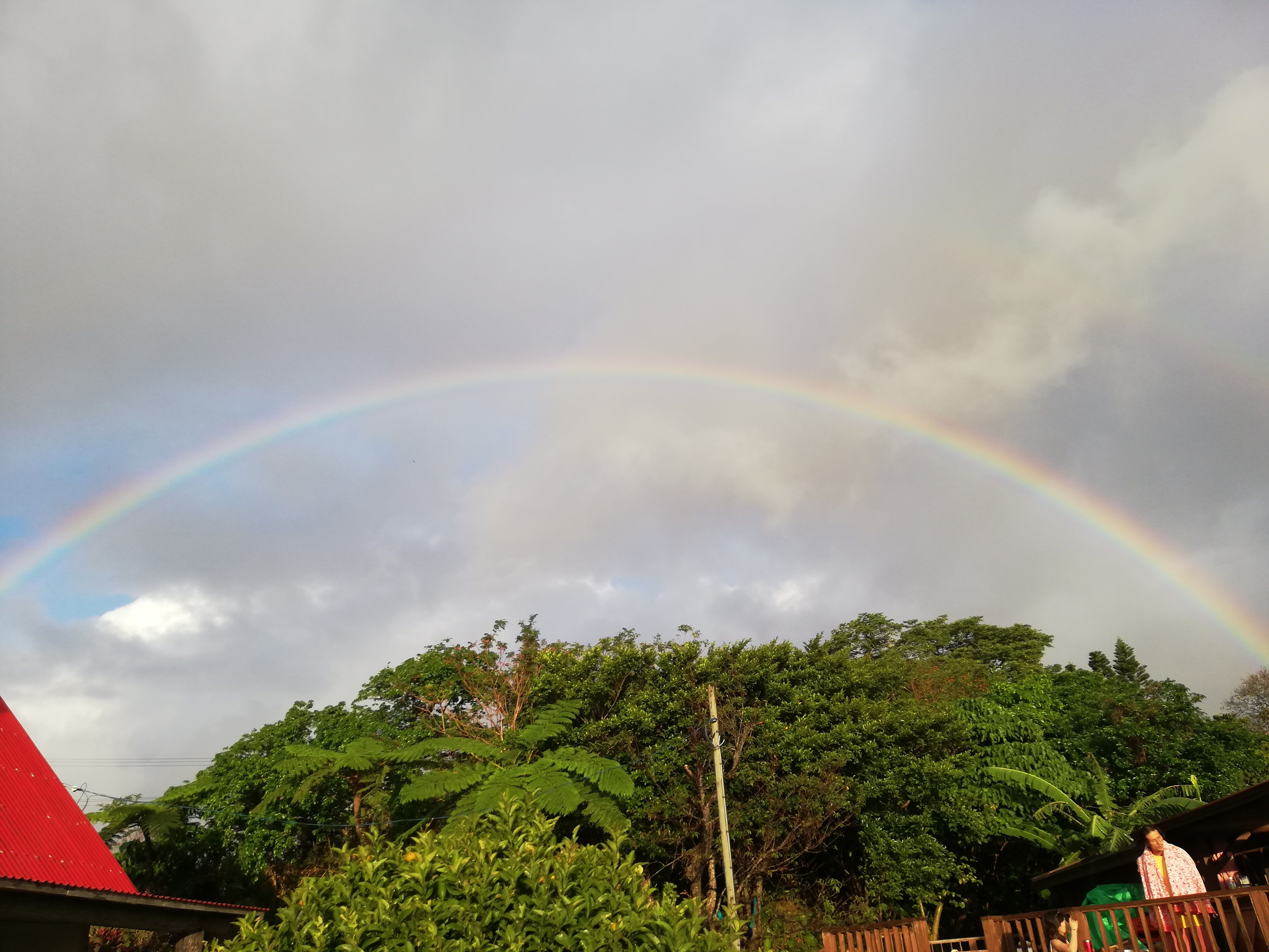 沖縄っぽく、降ったりやんだりで虹。