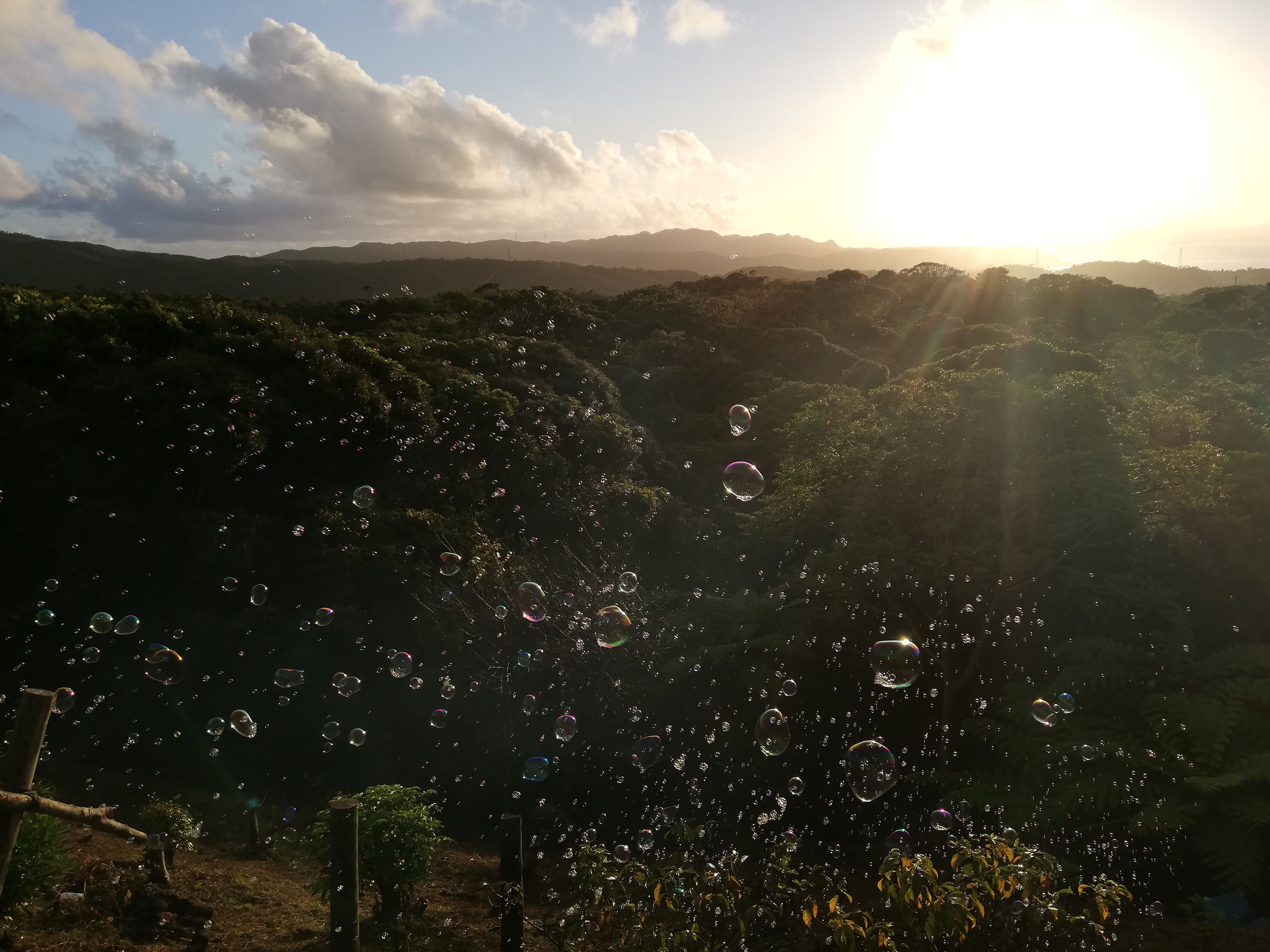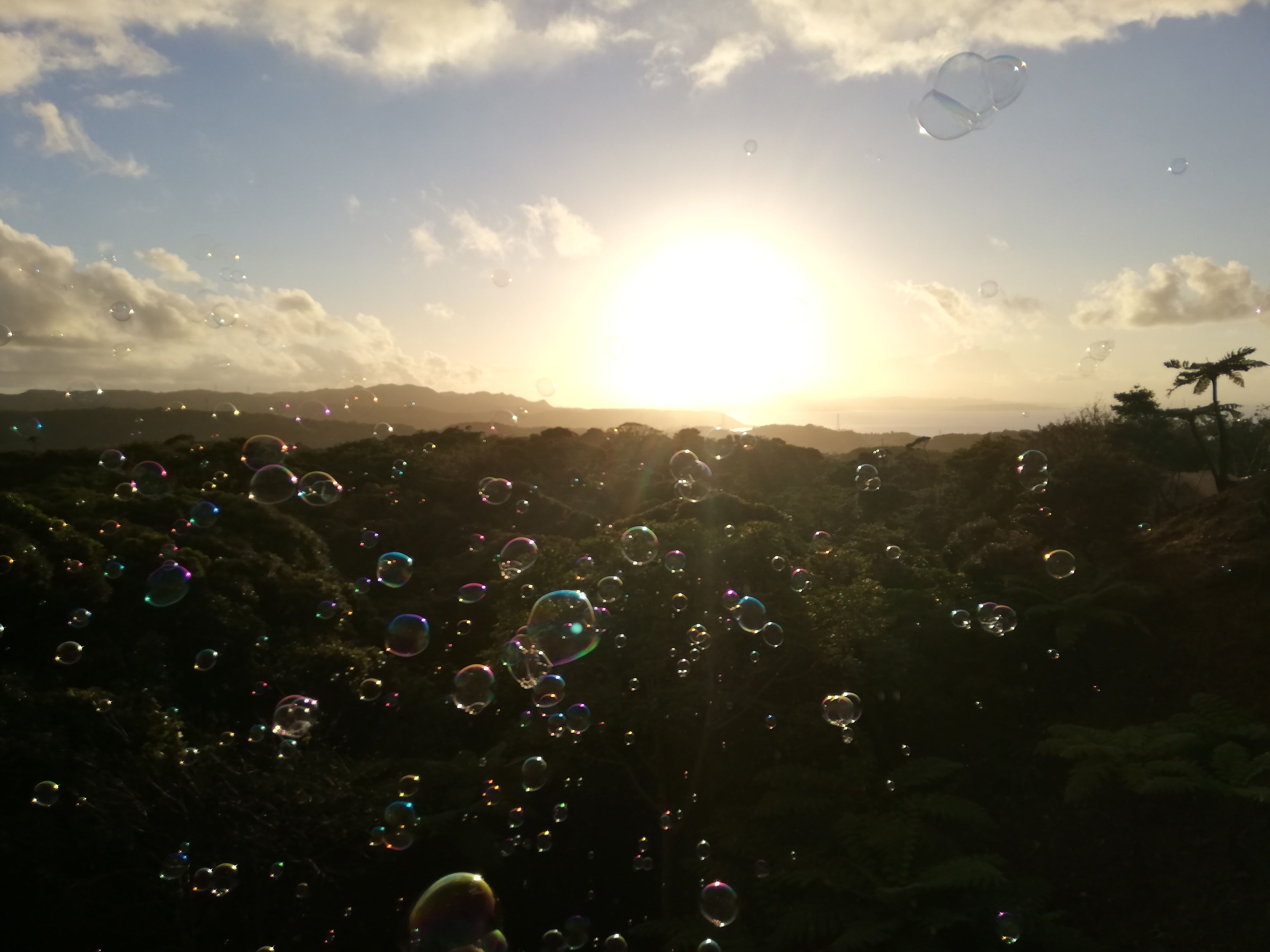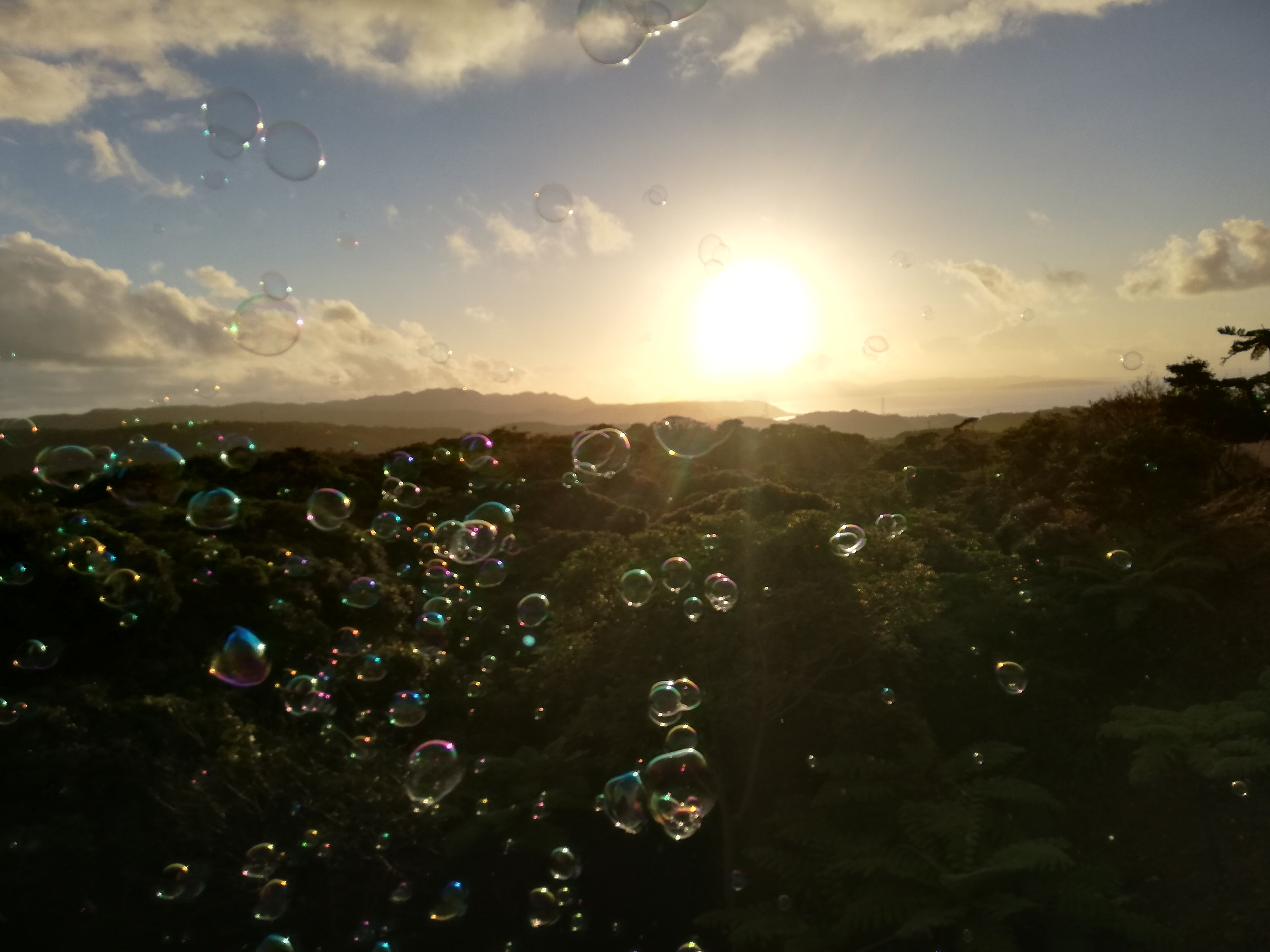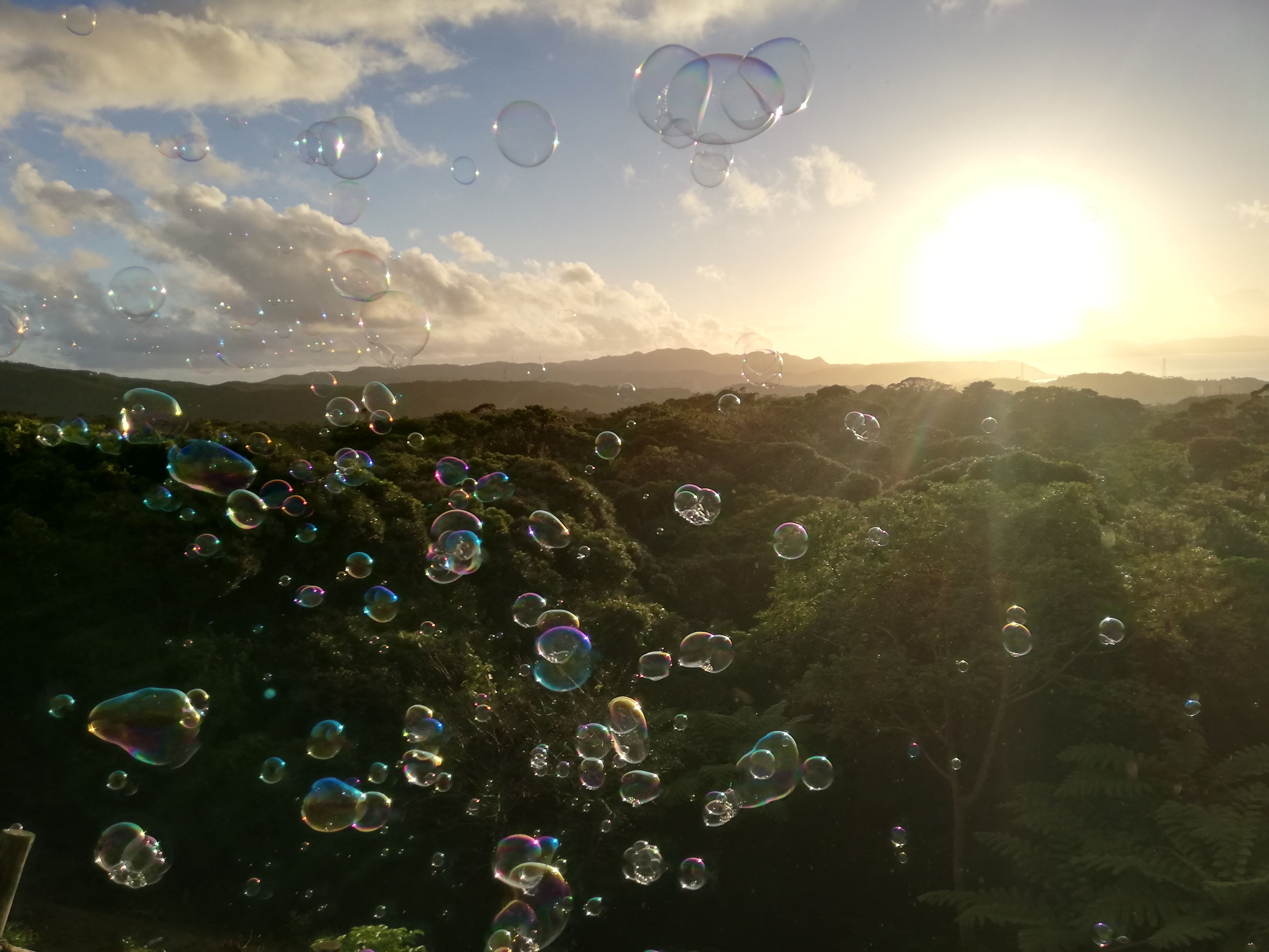 お待ちかねの、夕陽とシャボン玉のショー。