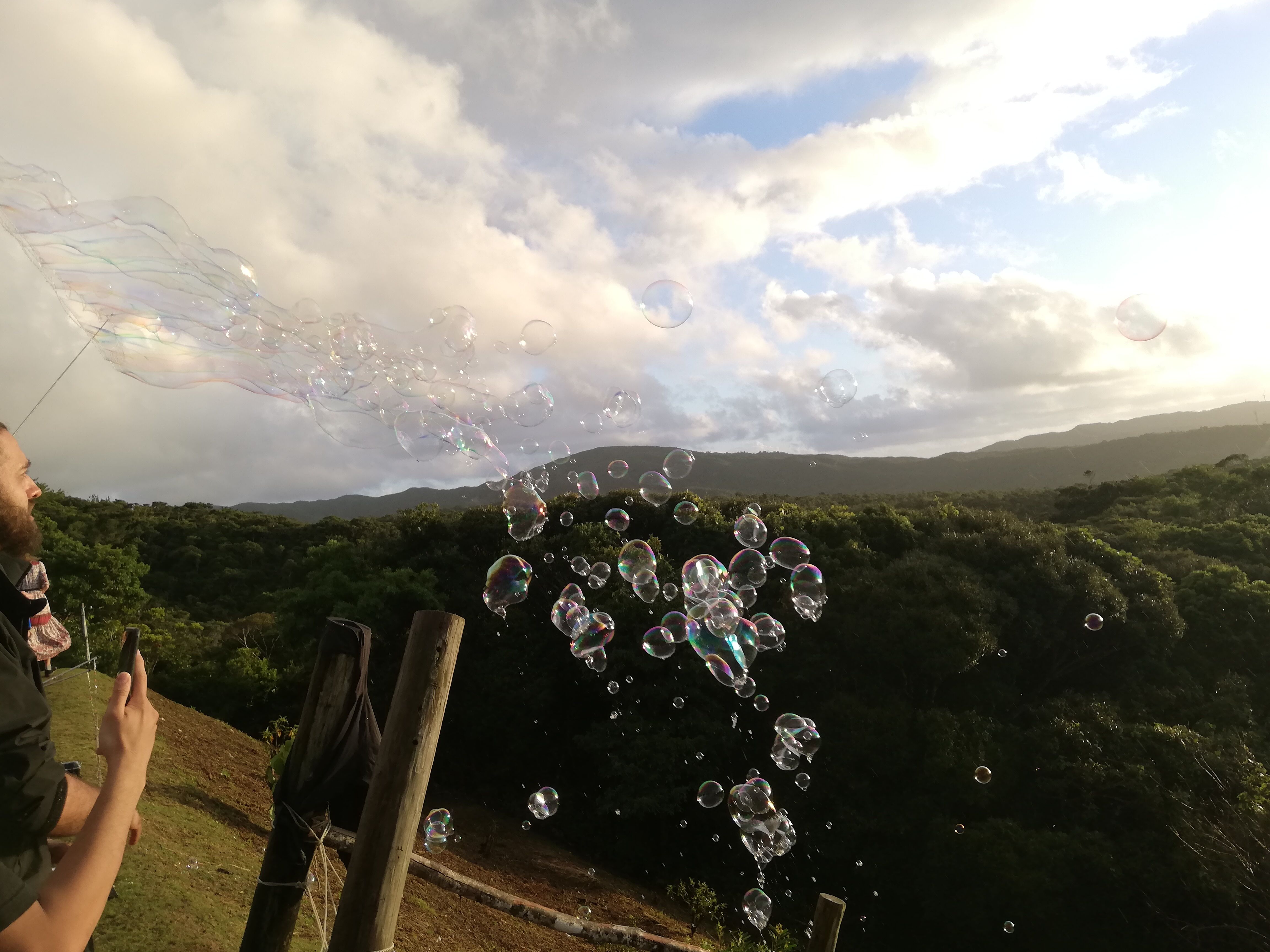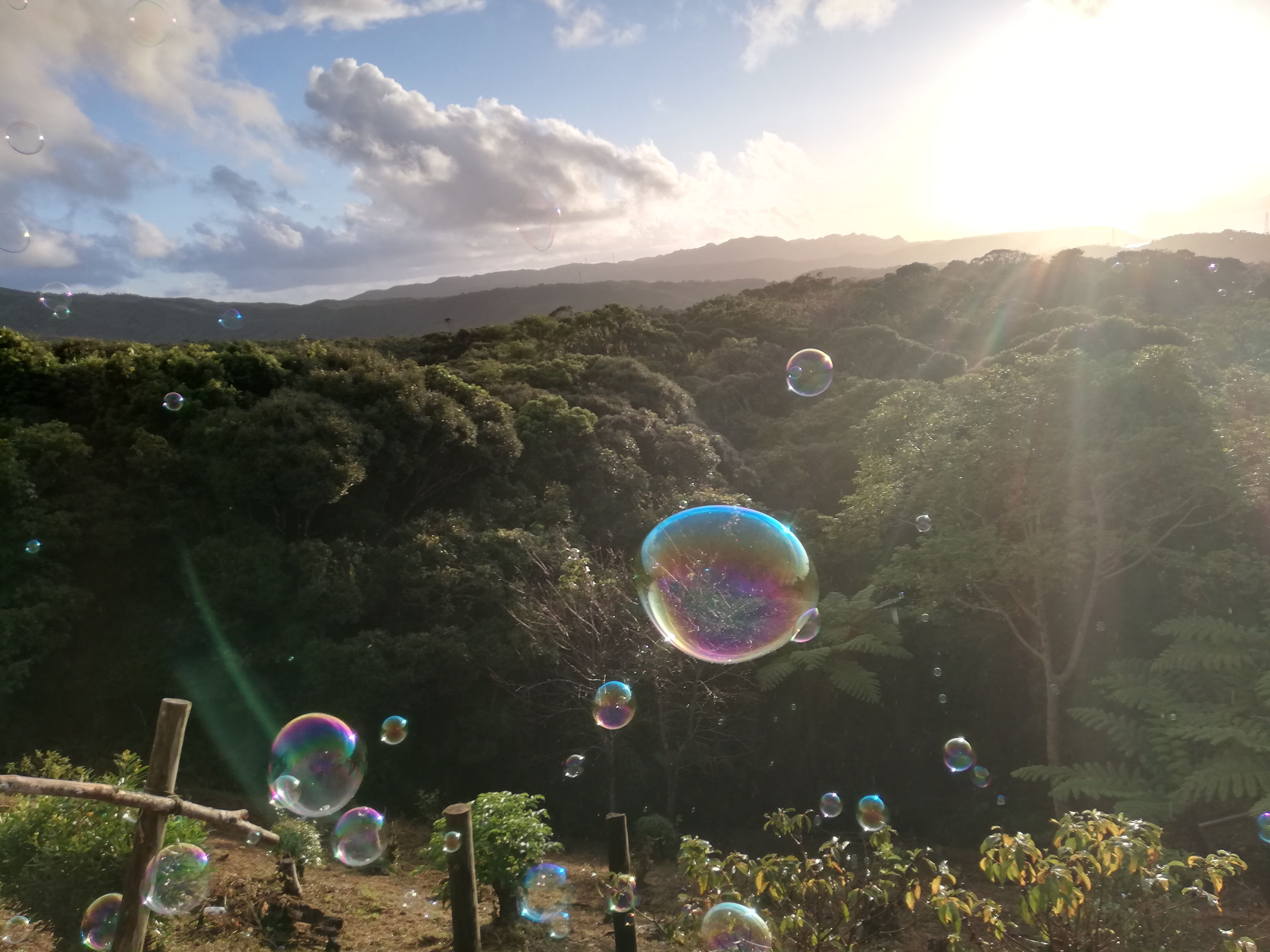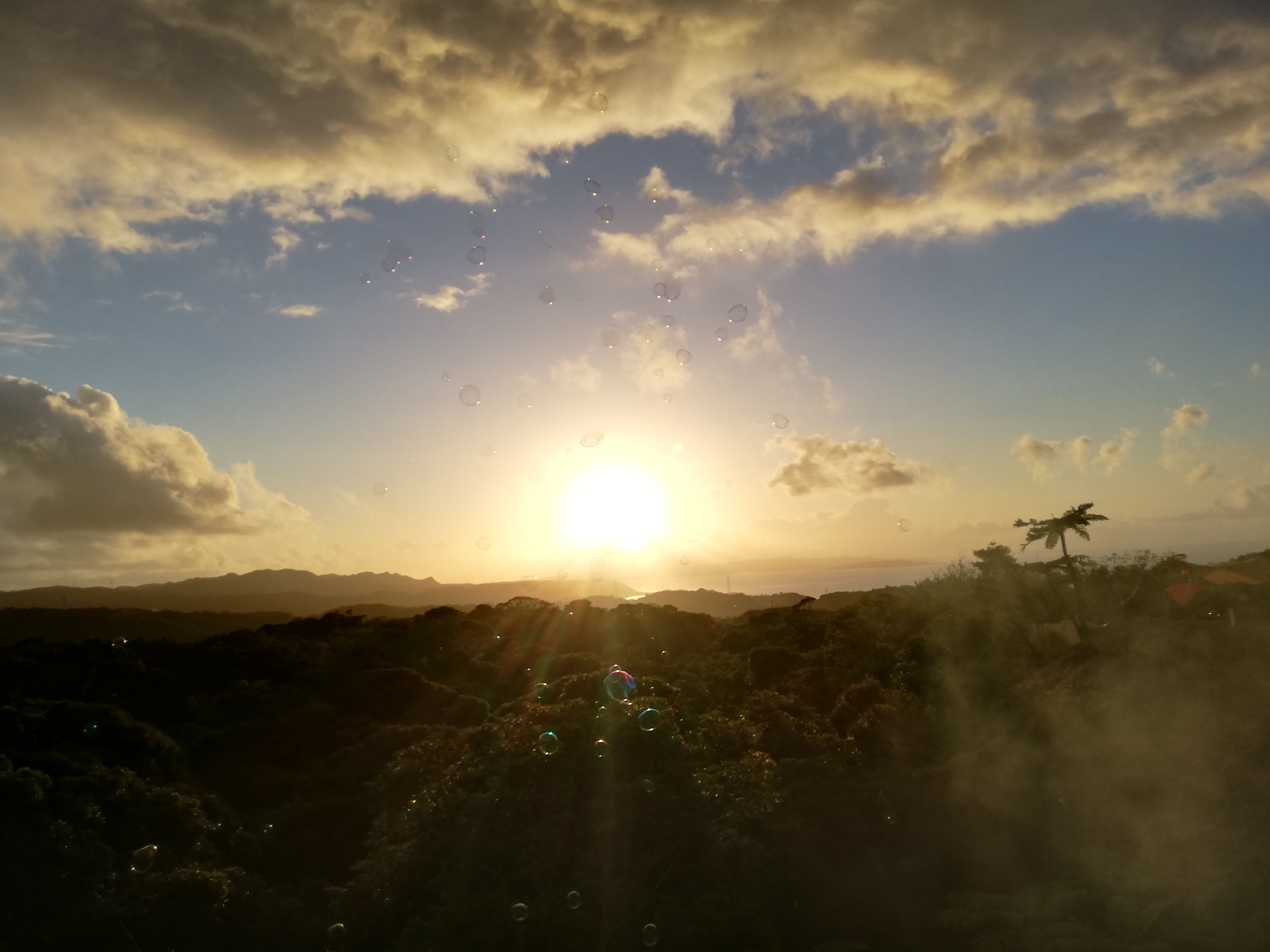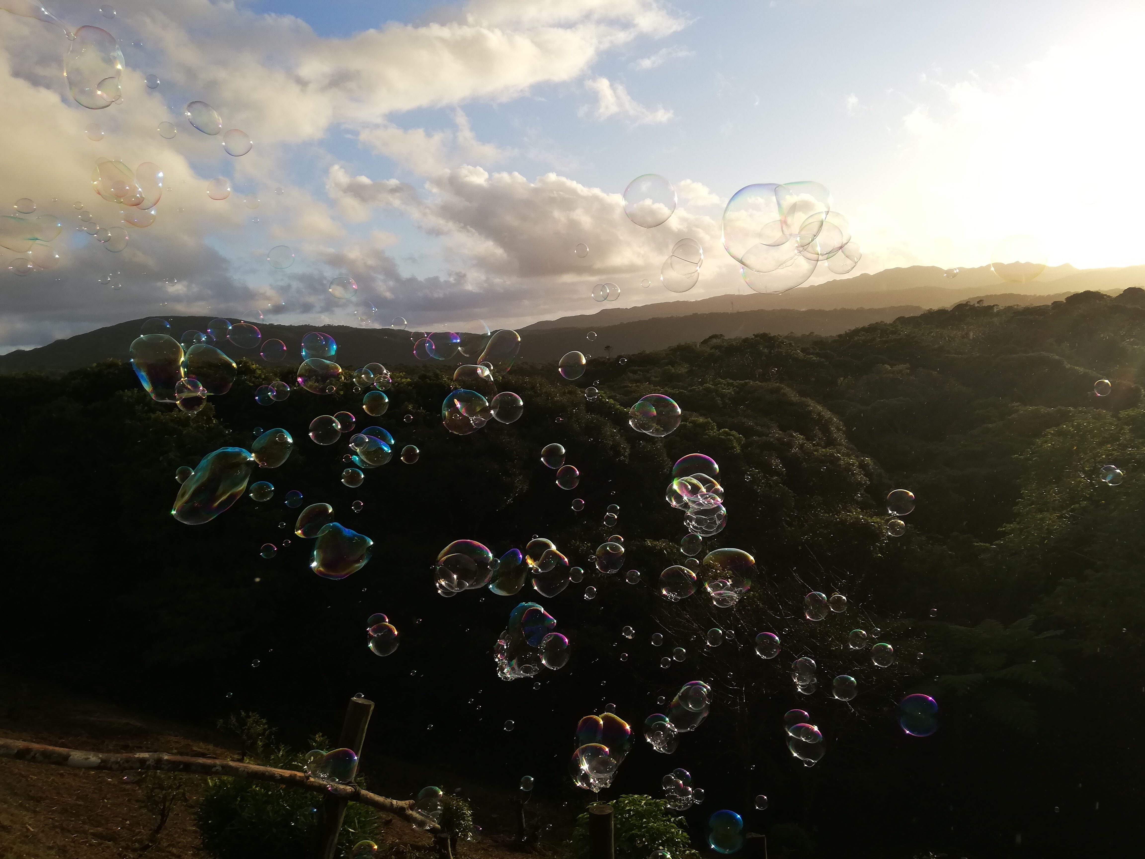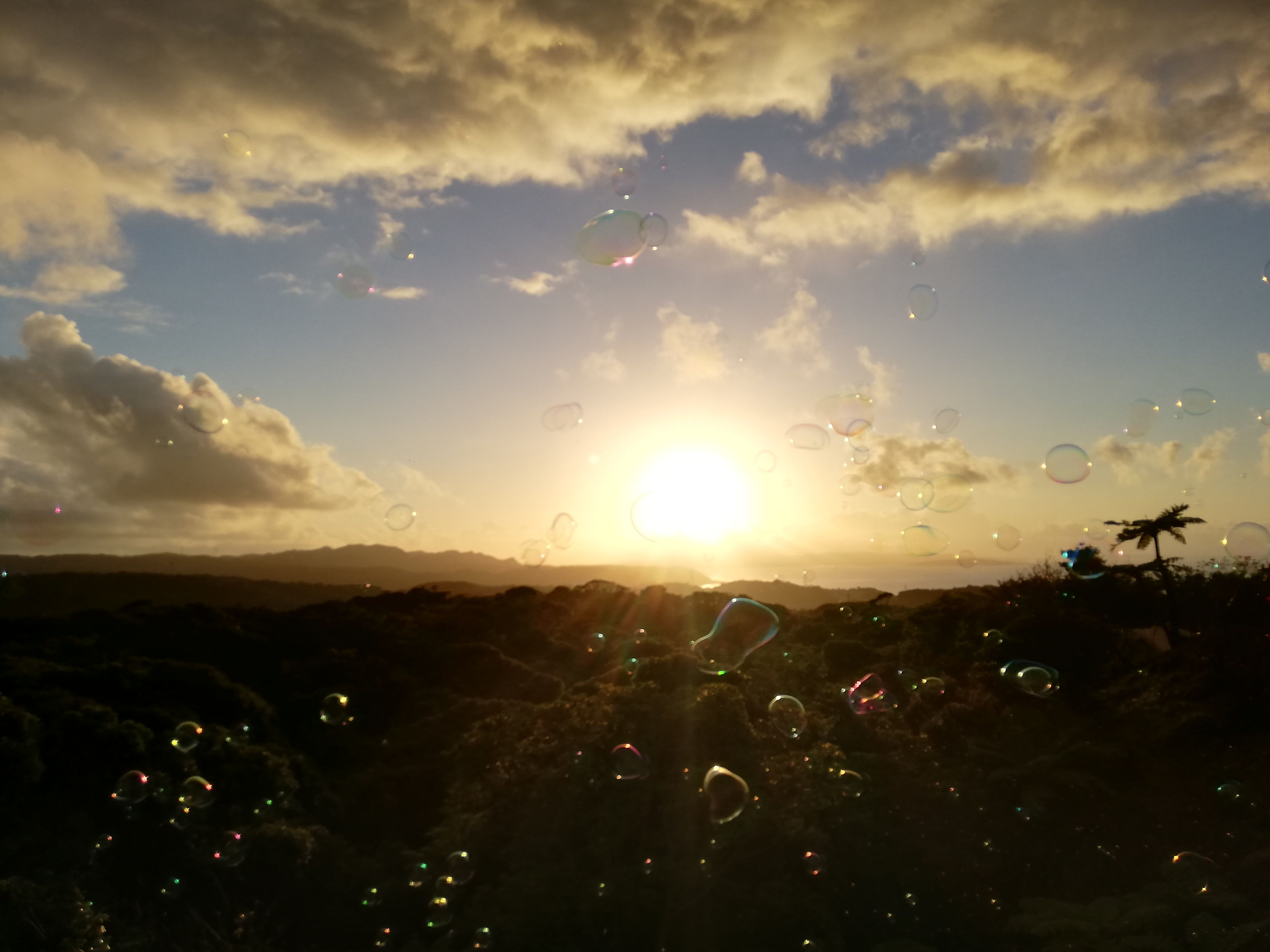 お待ちかねの、夕陽とシャボン玉のショー。