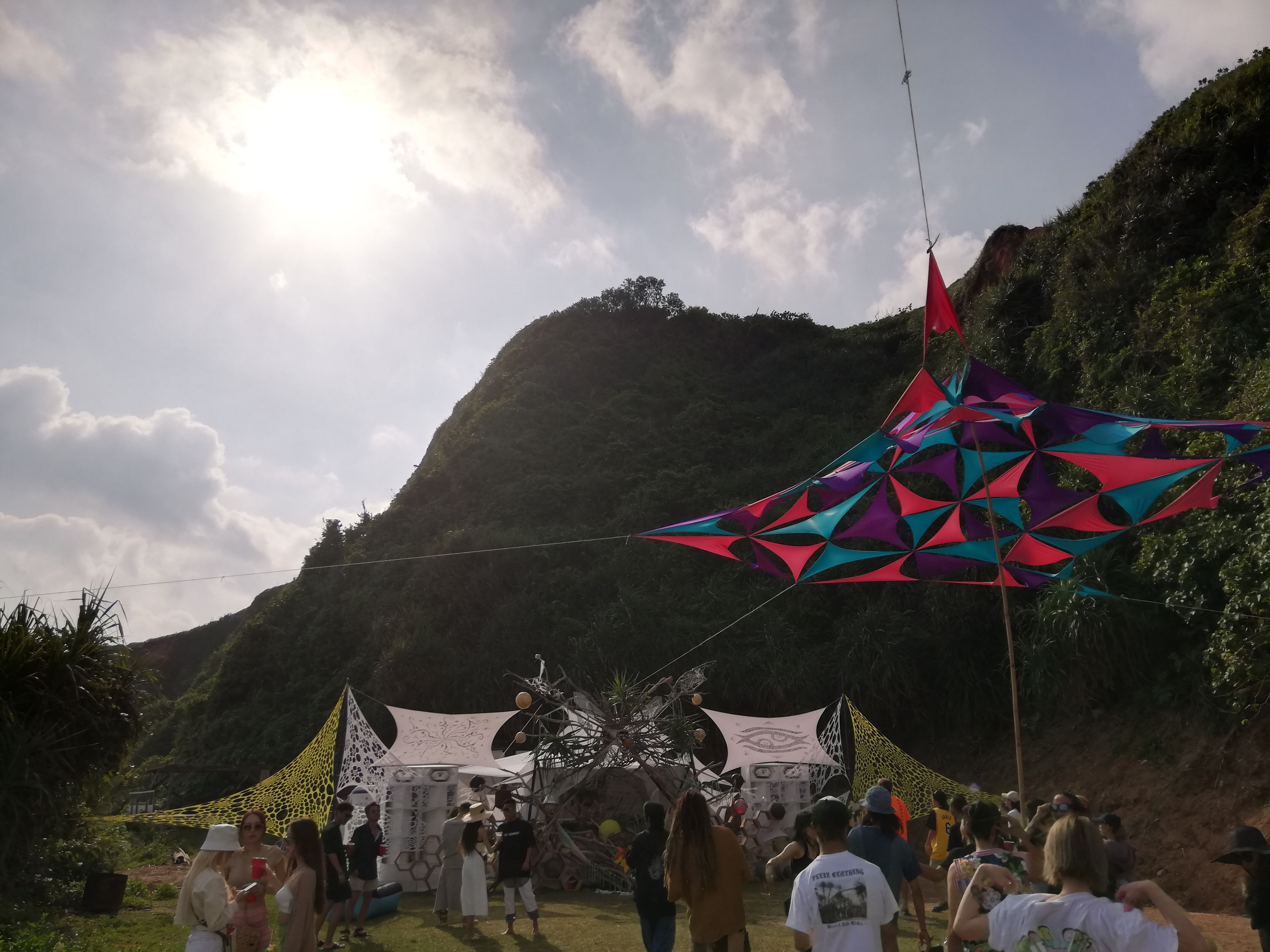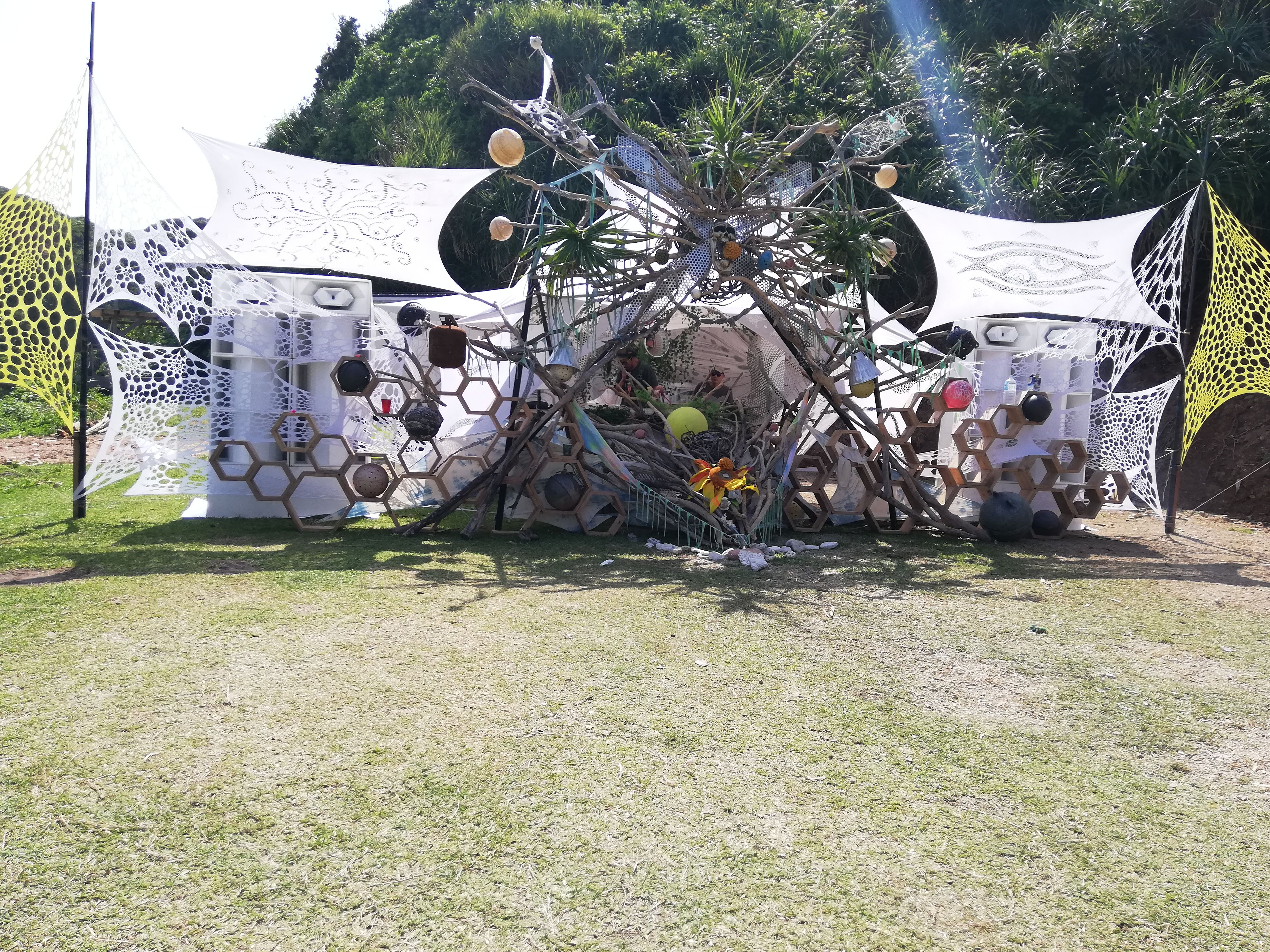 会場に着いたのが24時を回ってたので、テントを建てるのは断念して車(マーチ)で就寝。