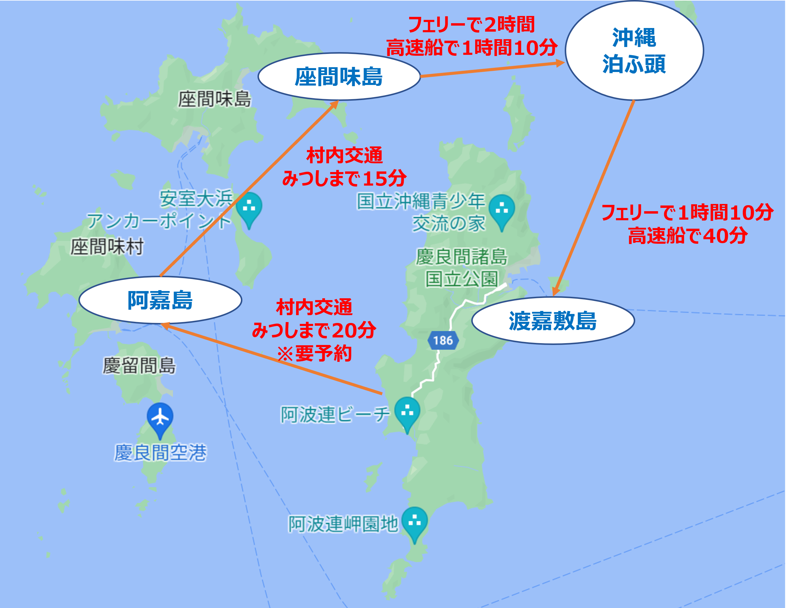 みつしまの渡嘉敷島から阿嘉島への移動は電話予約が必要です。