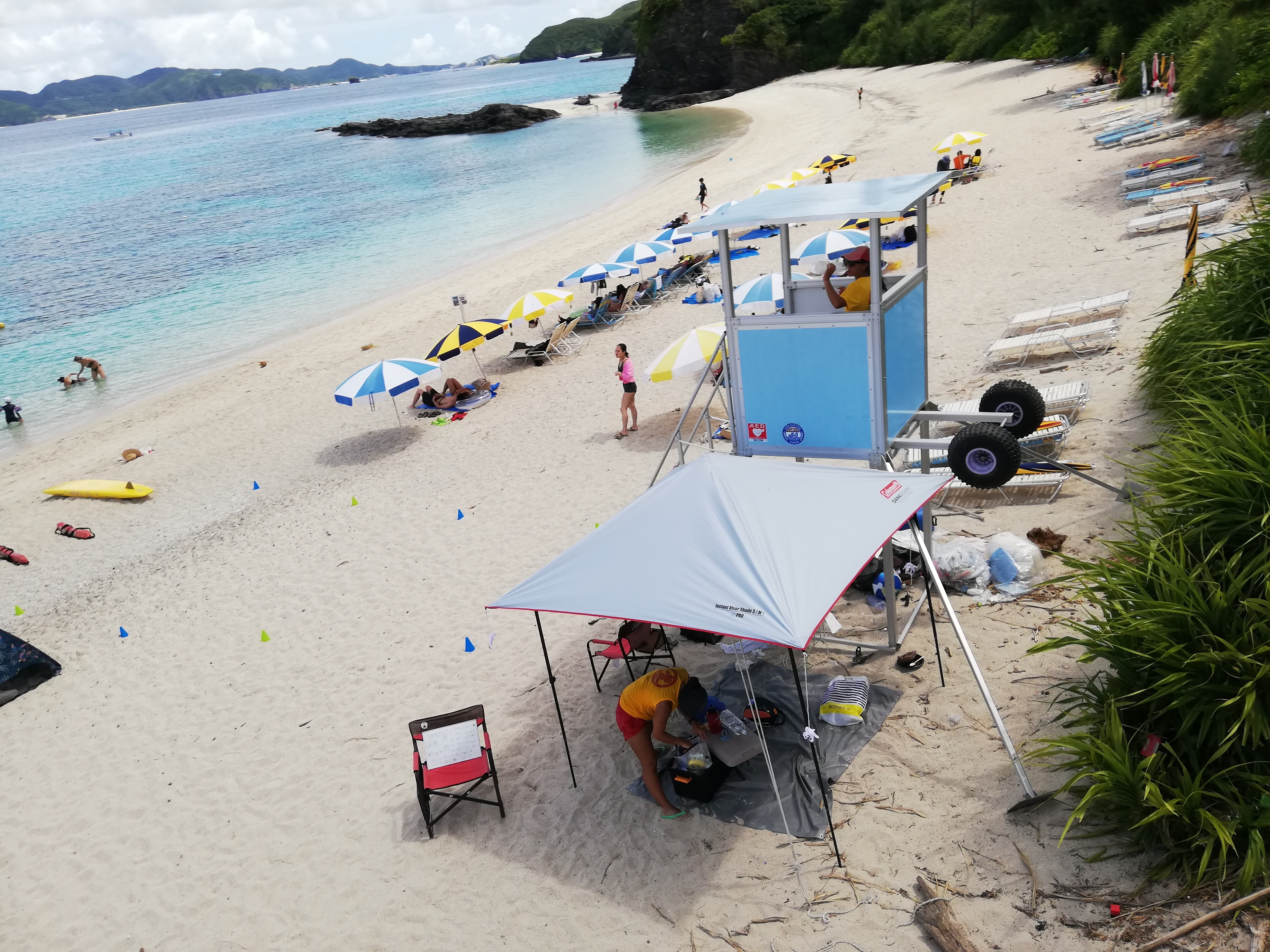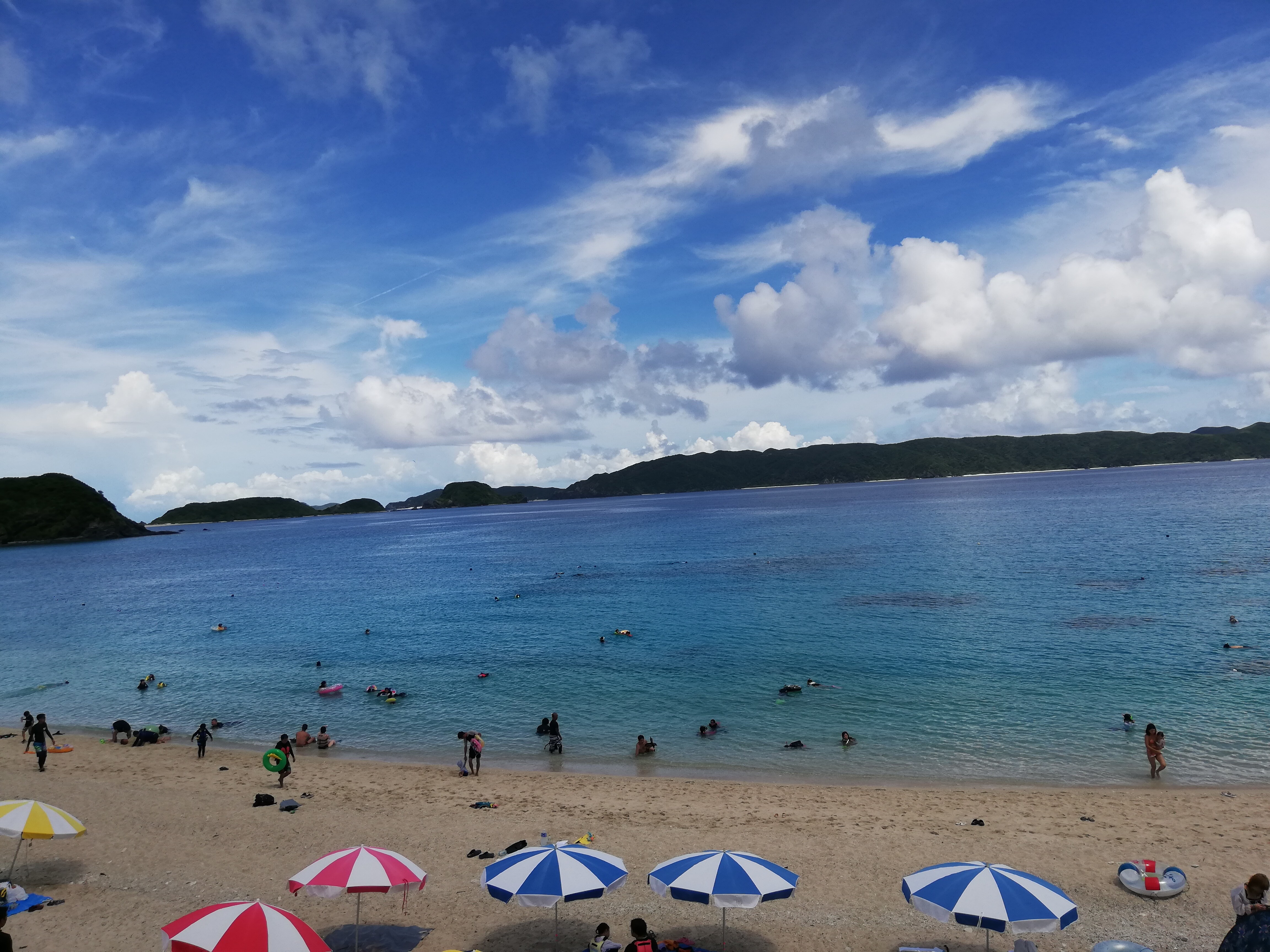 古座間味ビーチですが、陸から5mぐらいいくと急に深くなるので、ライフジャケットはあった方が良いと思います。