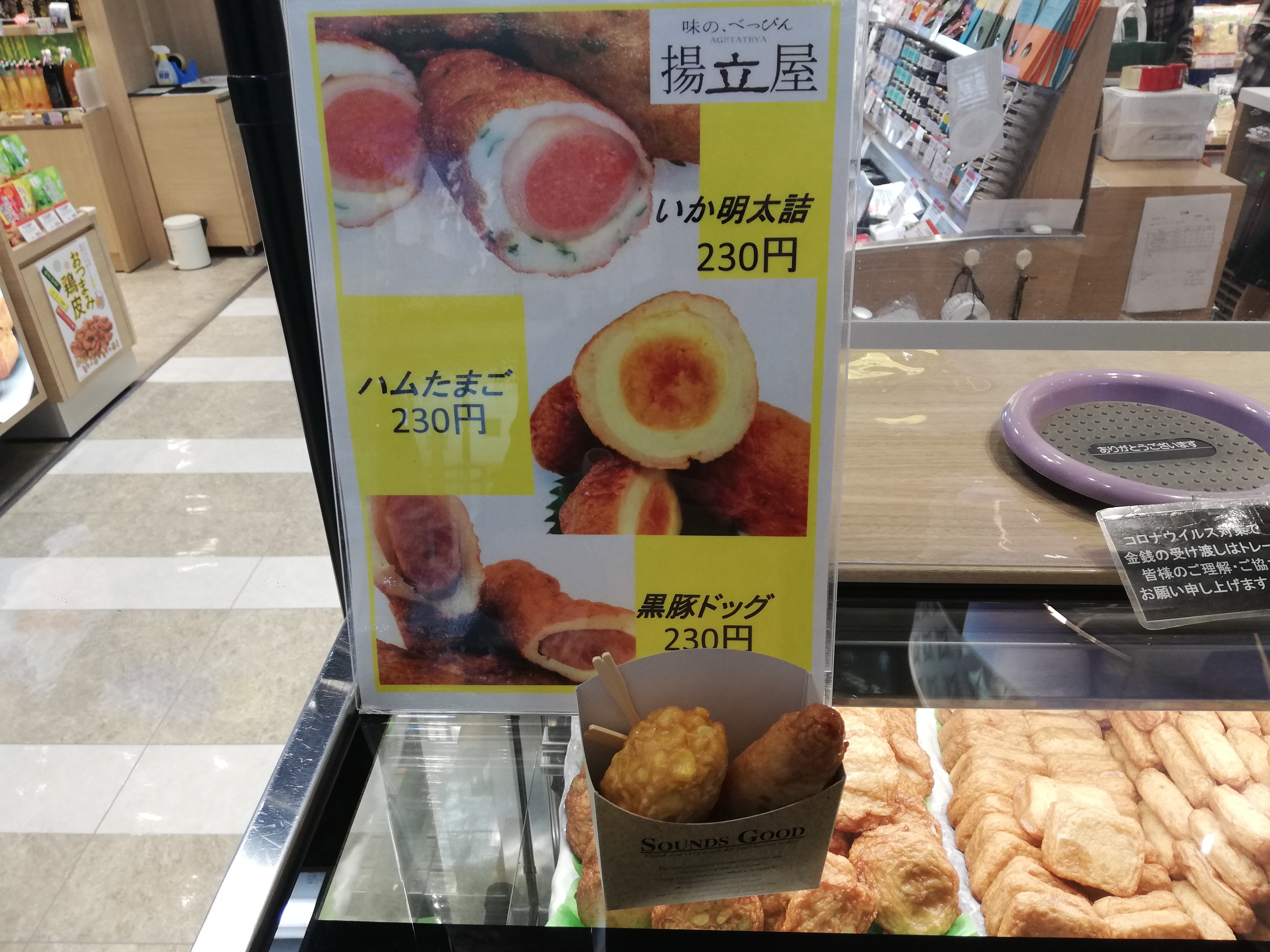 空港でさつま揚げを頂く。