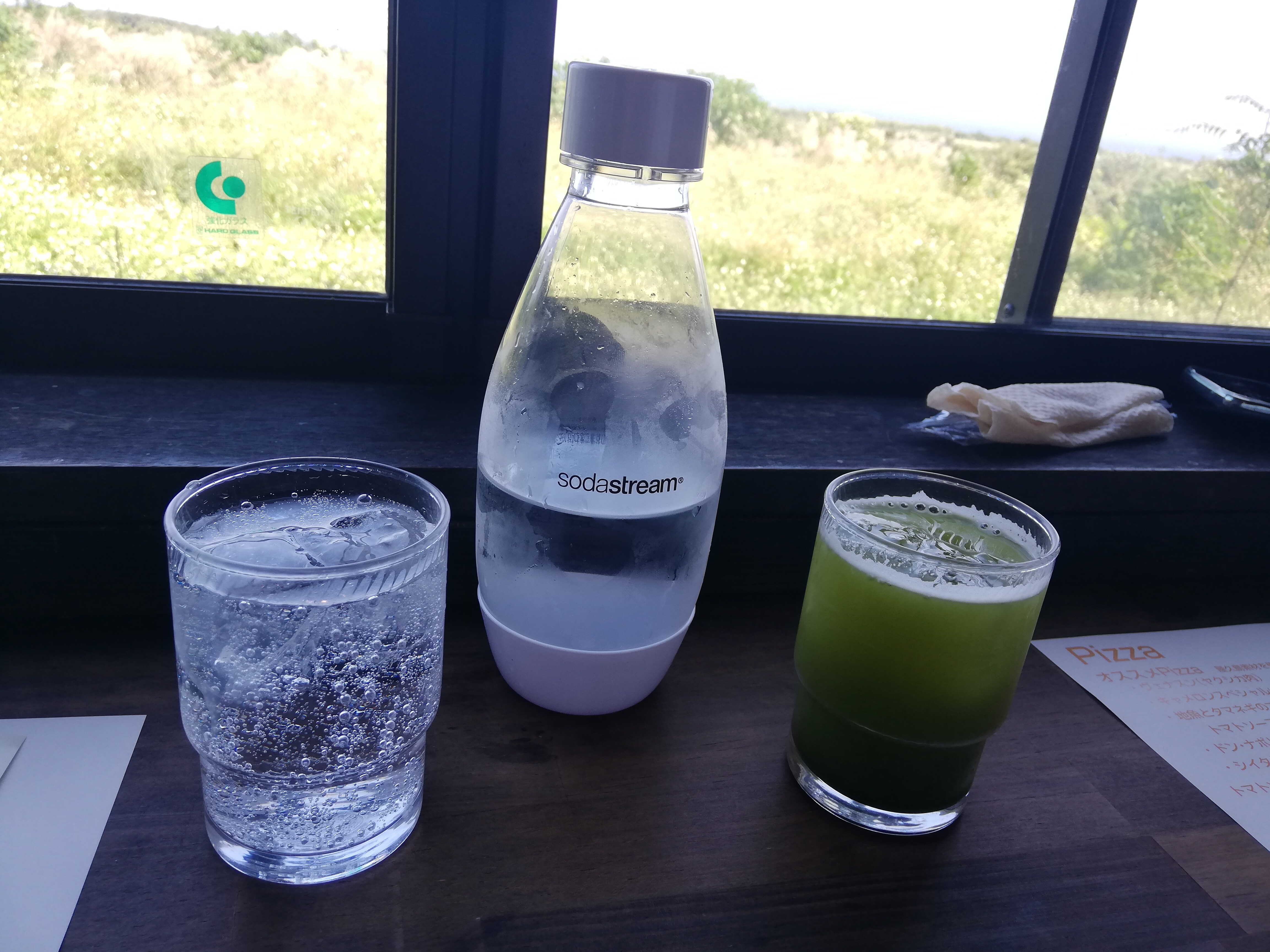 炭酸水と屋久島のお茶をオーダー。