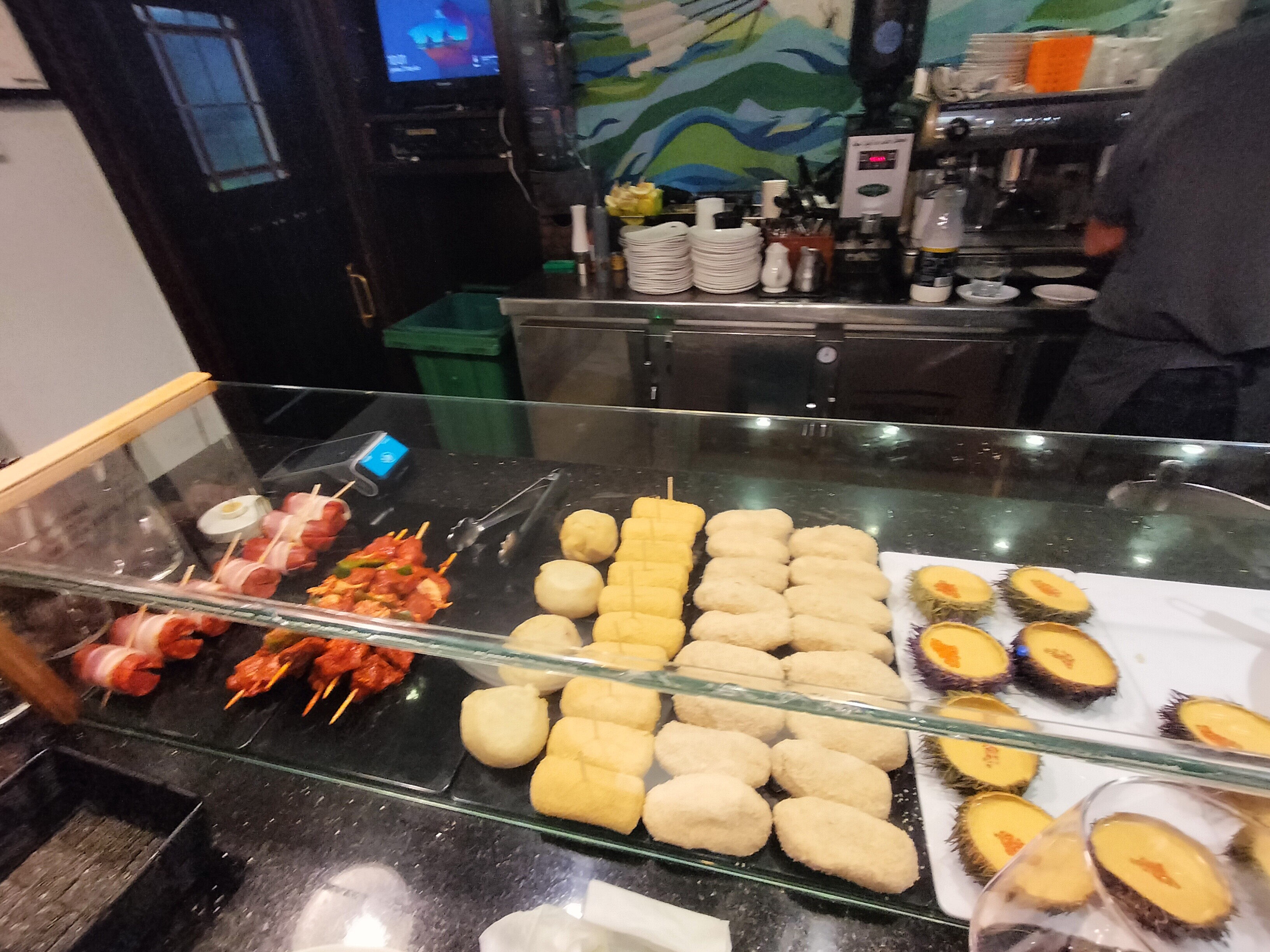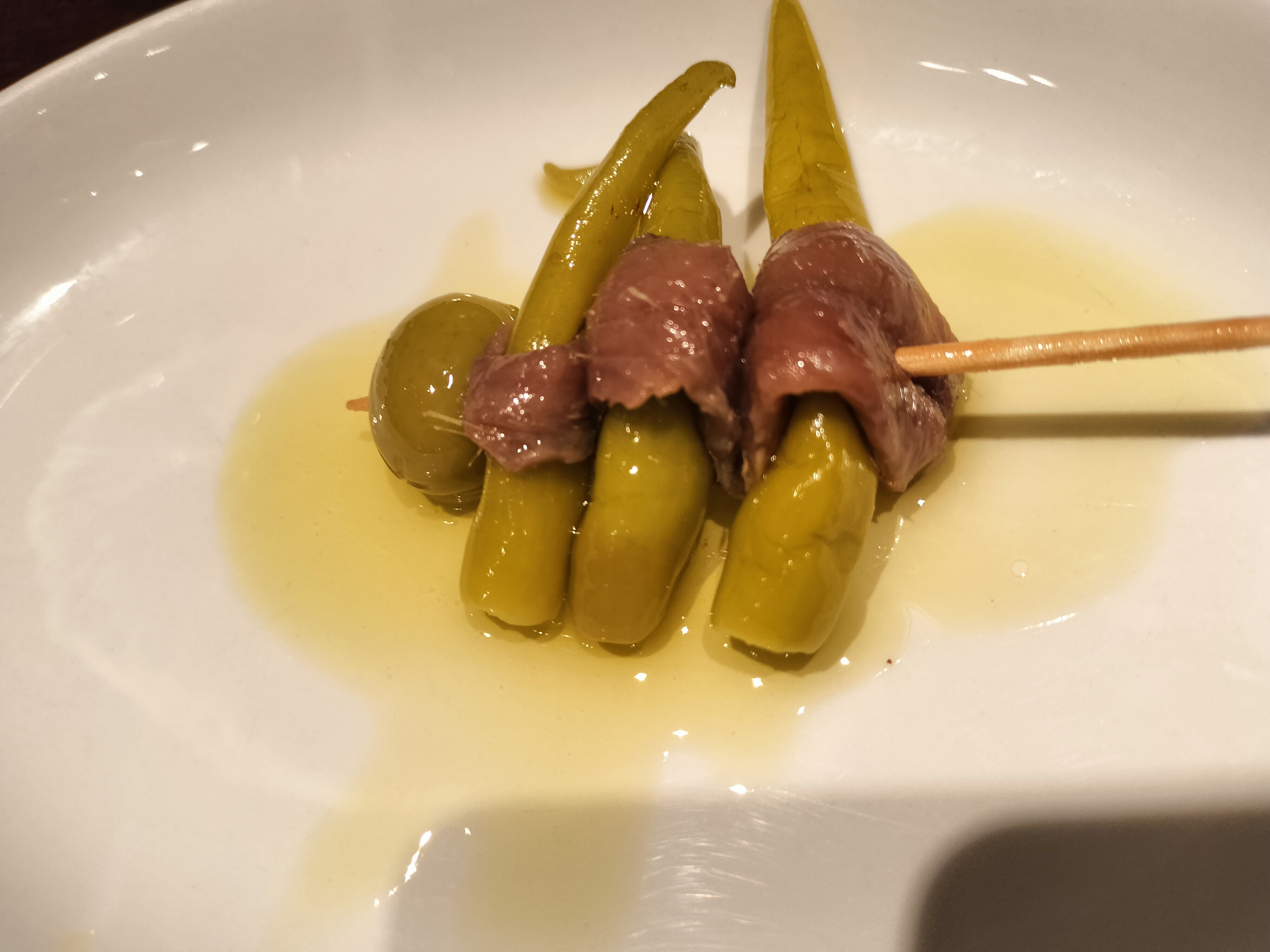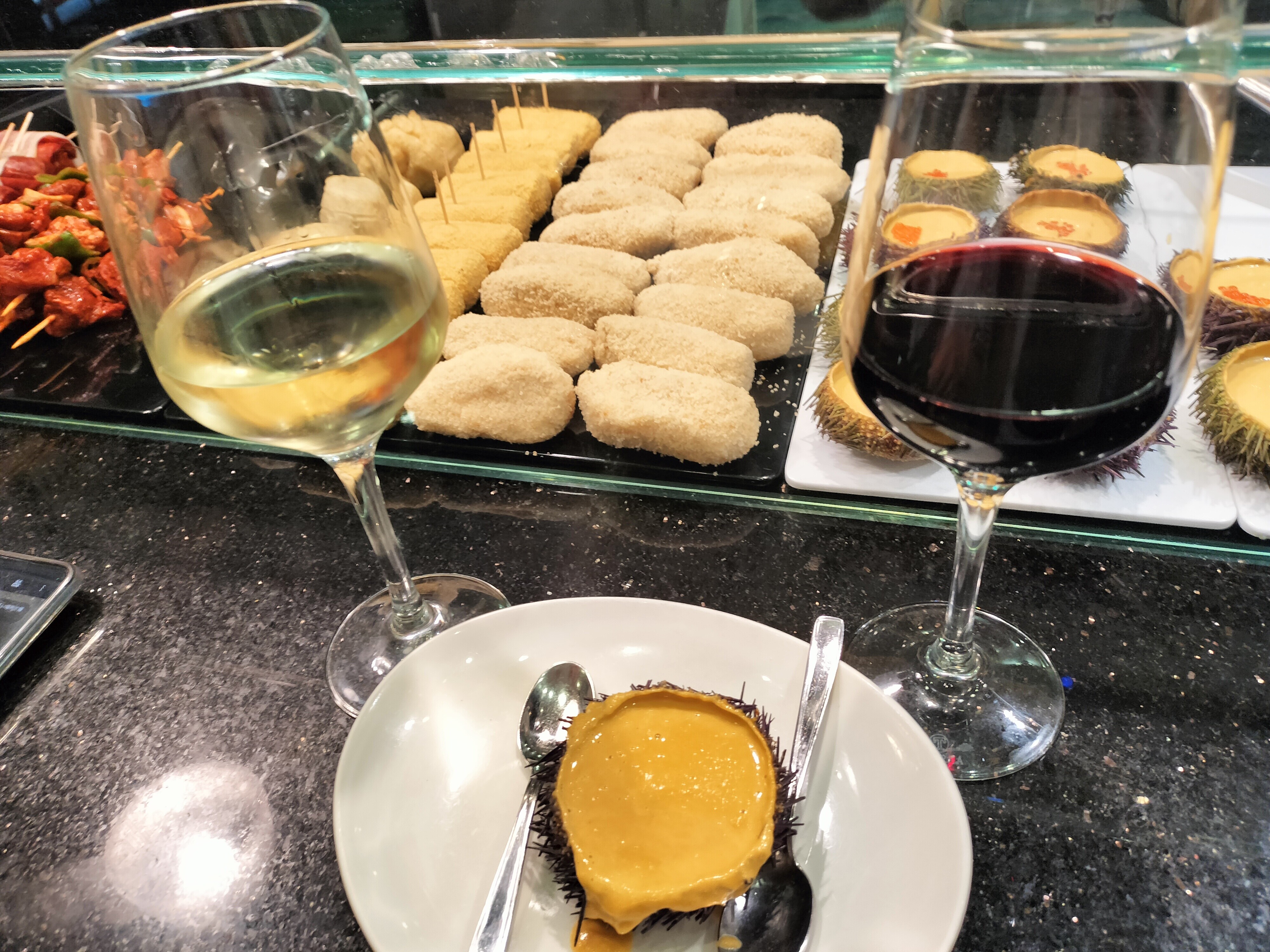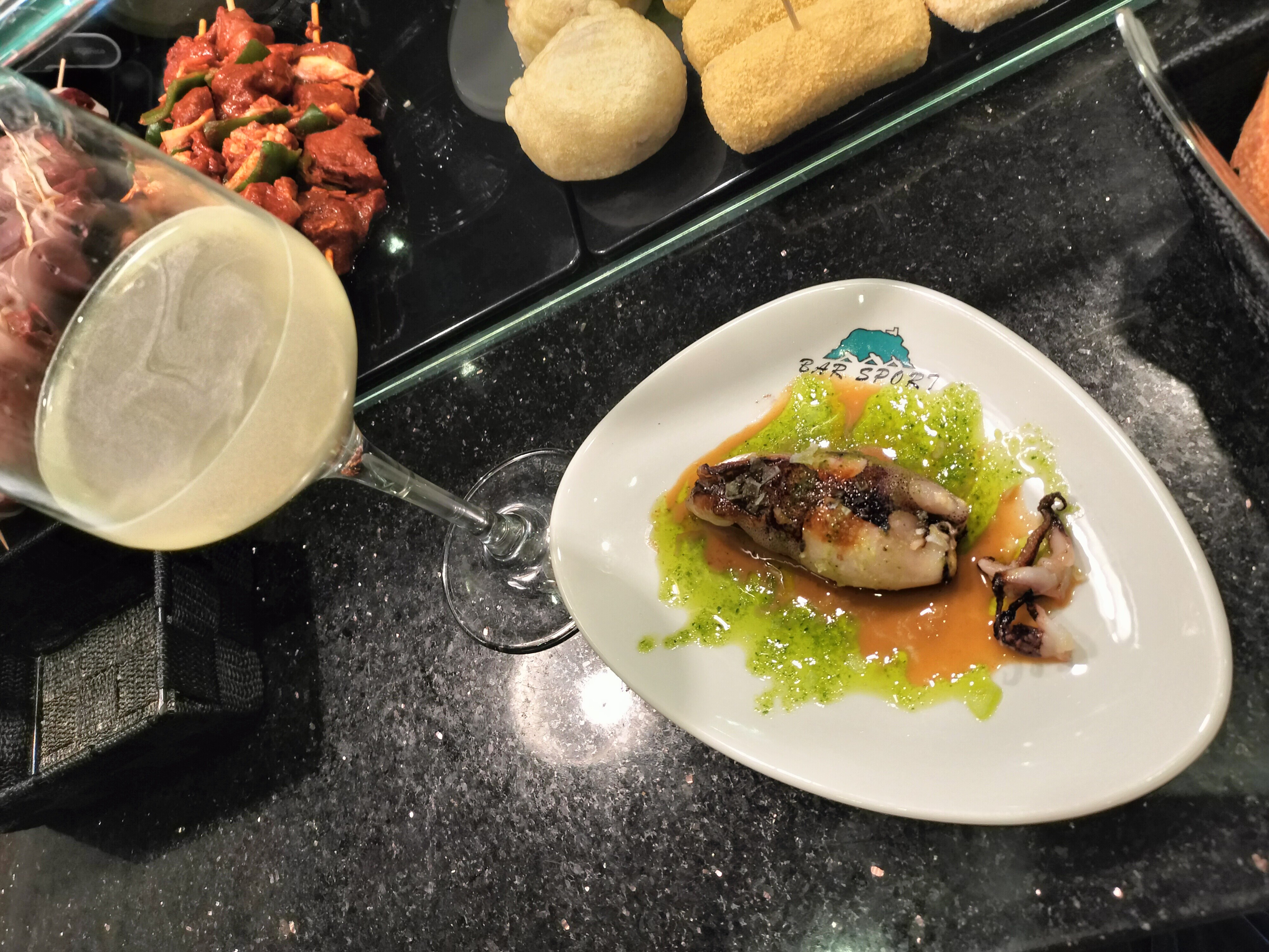 白ワイン、ビール、ピンチョスを頂きます。
