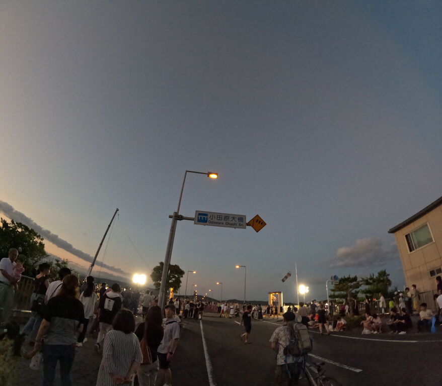 熱海の手前で人込みが社内から見えたので、調べてみると小田原でも花火大会があるとの事で、急遽途中下車。