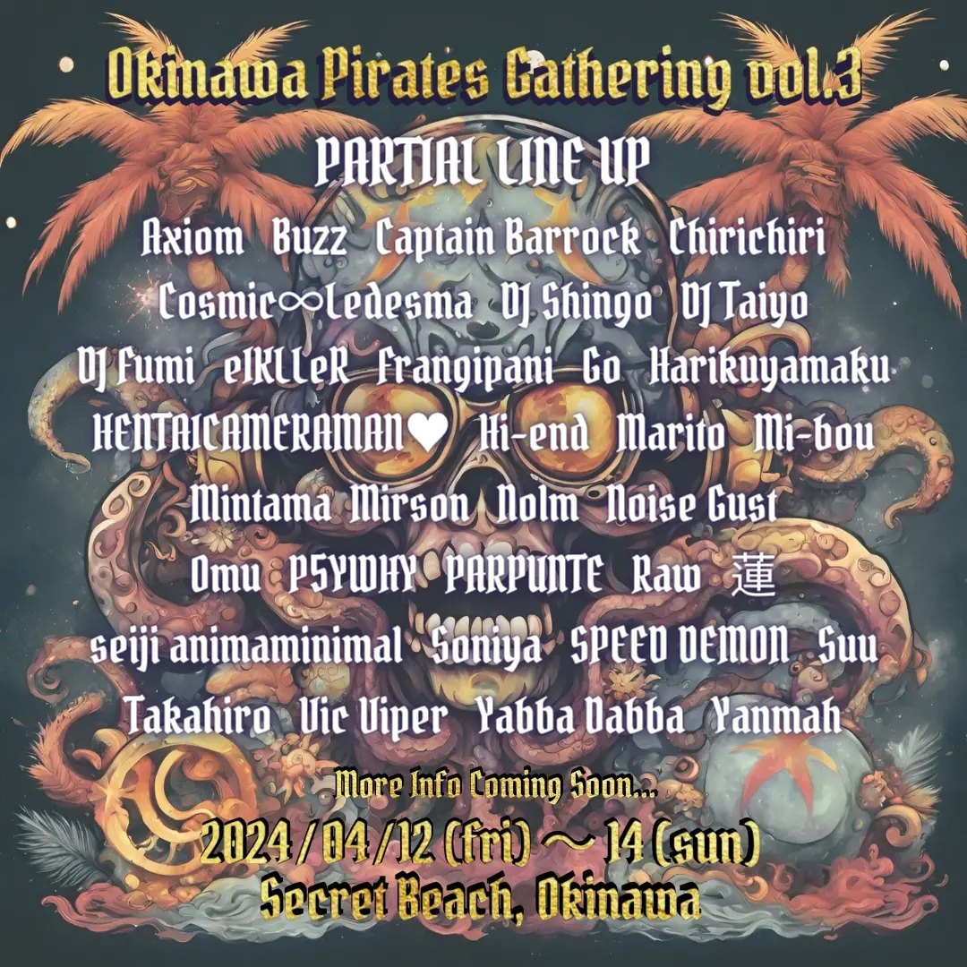 4月12日~14日 Okinawa Pirates Gathering Vol.3@Secret Beach,沖縄