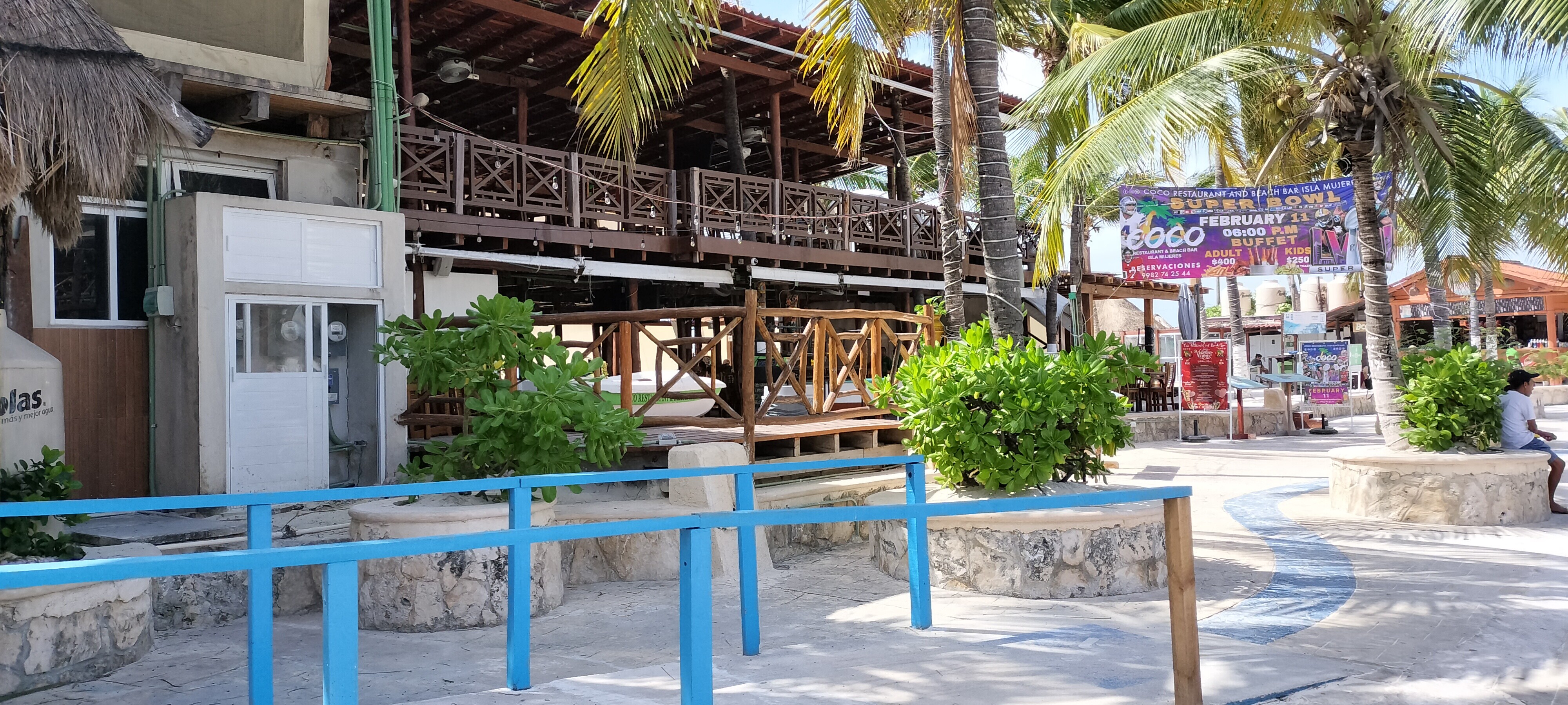 快適にホテルまで送ってもらい、ホテルに荷物を置かせてもらって、海グッズを持ってイスラ・へーラムに行くフェリー乗り場までバスで移動。