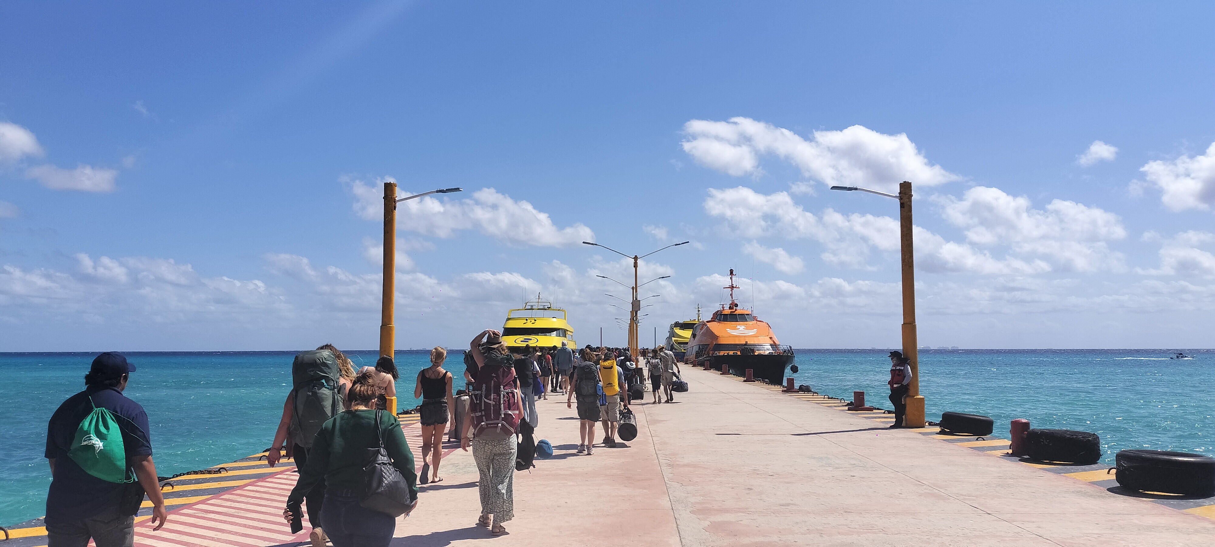 朝食に屋台のタコスを食べて、ホテルに戻ってコスメル島行きのフェリー乗り場へ。