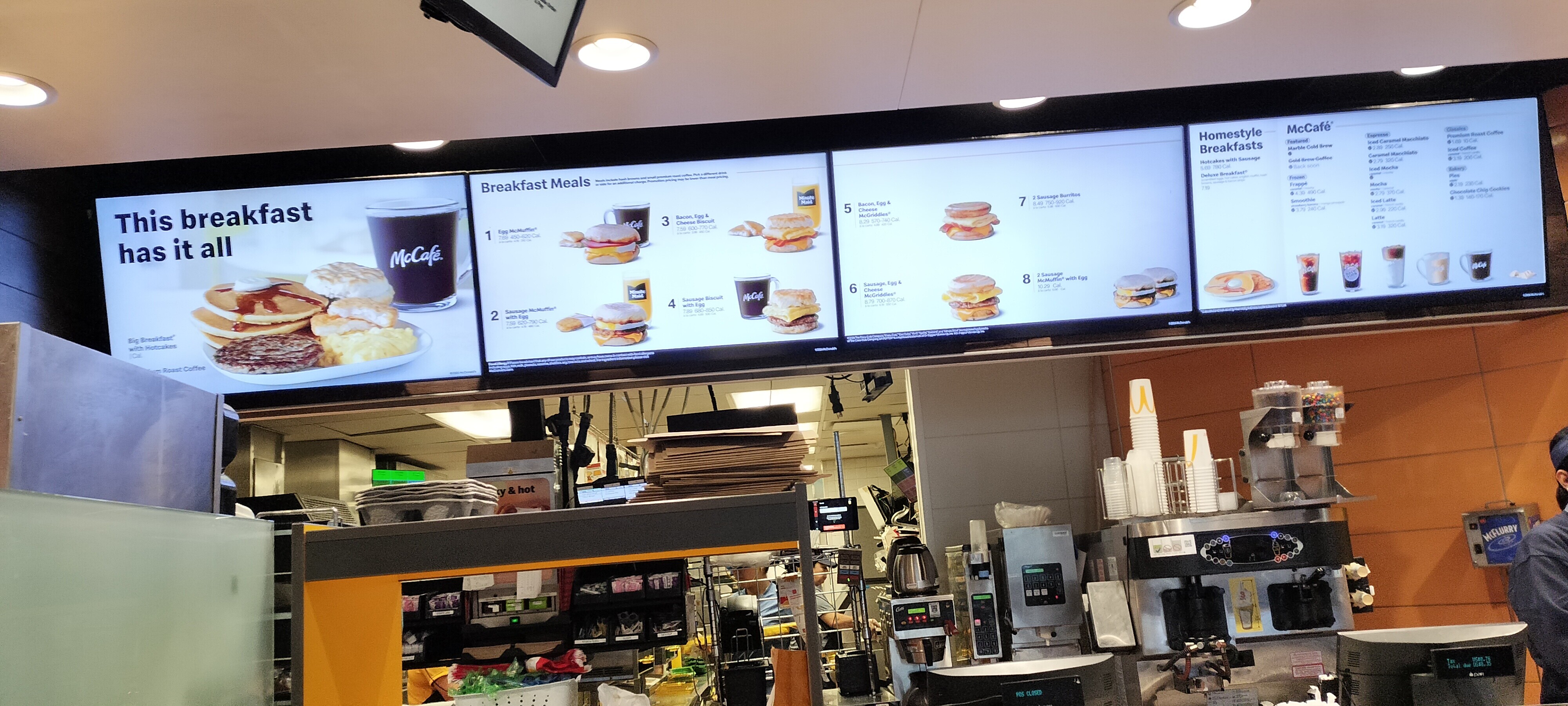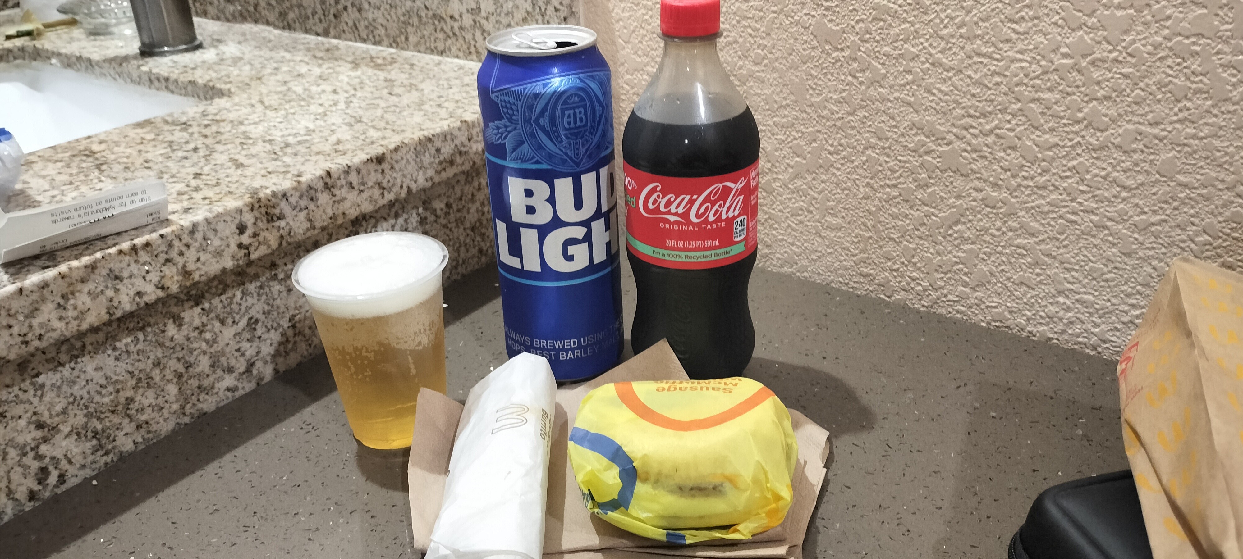 手前にある、左のラップサンドみたいなのと、エッグマフィンで1,300円。
