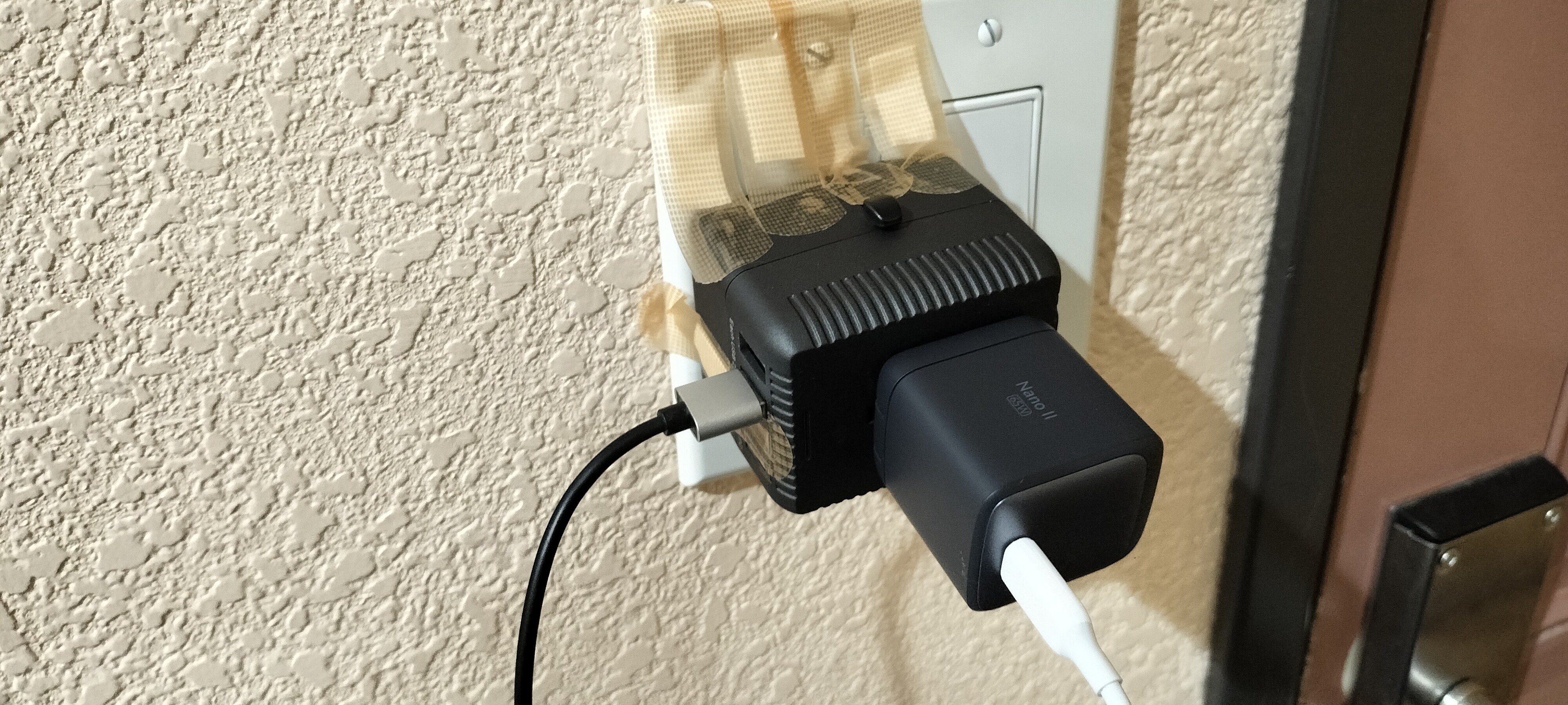 変圧器が重いのでバンドエイドで支える。