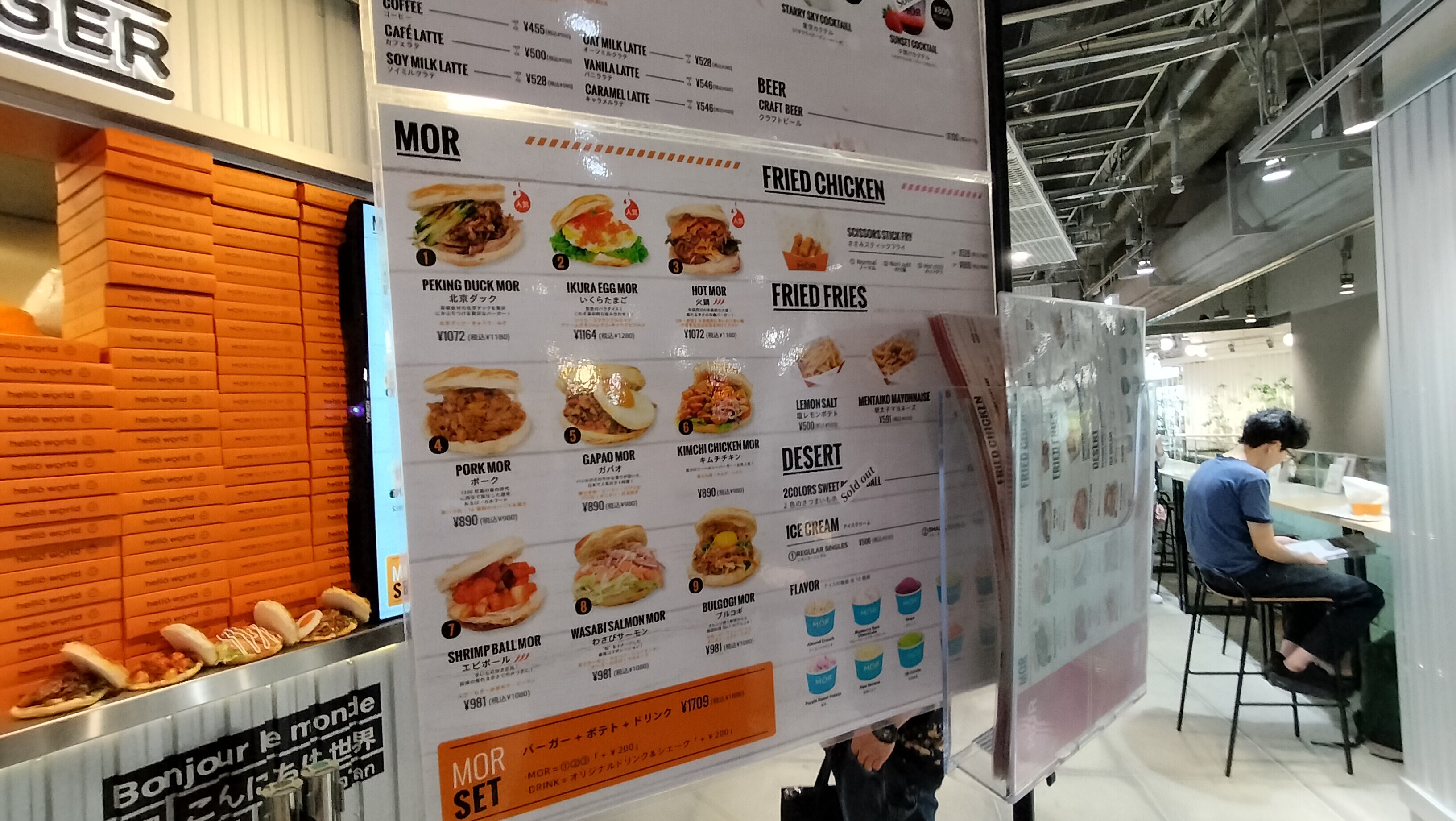 お店もどこもやっていなく、モスバーガーへ。