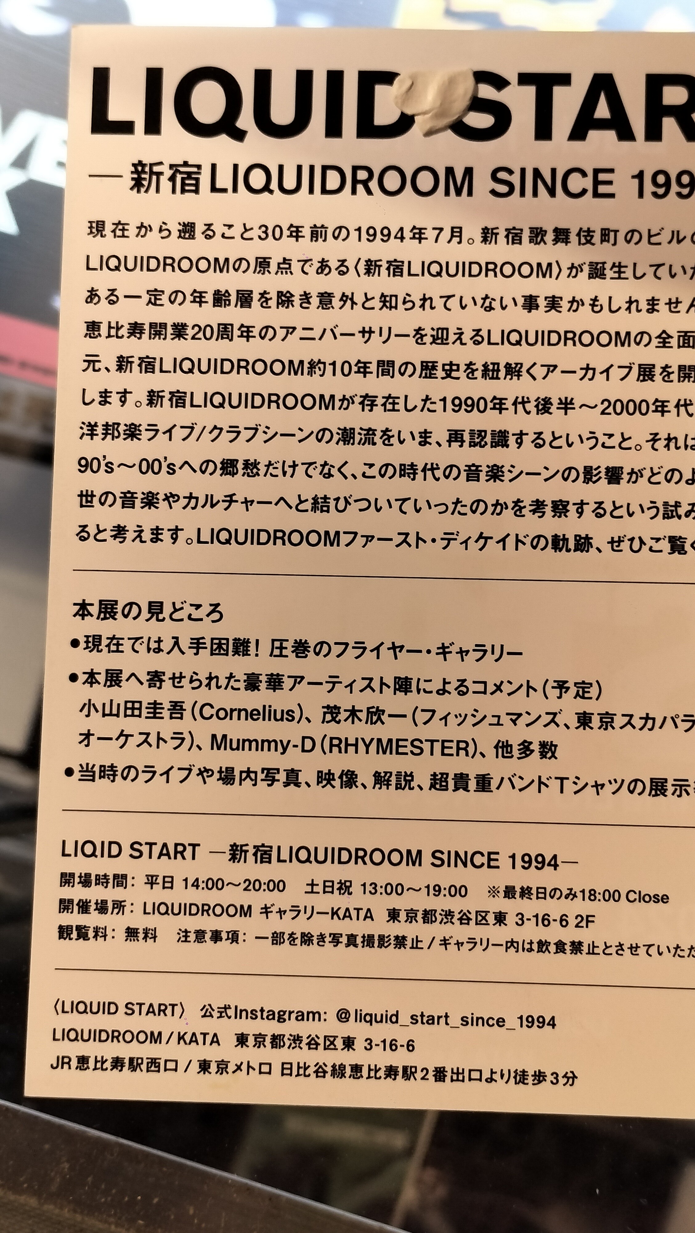 という事で、閉店から20年をむかえた、LIQUID ROOMの写真展が恵比寿のLIQUID ROOMで開催されるとの事で行って来ました。