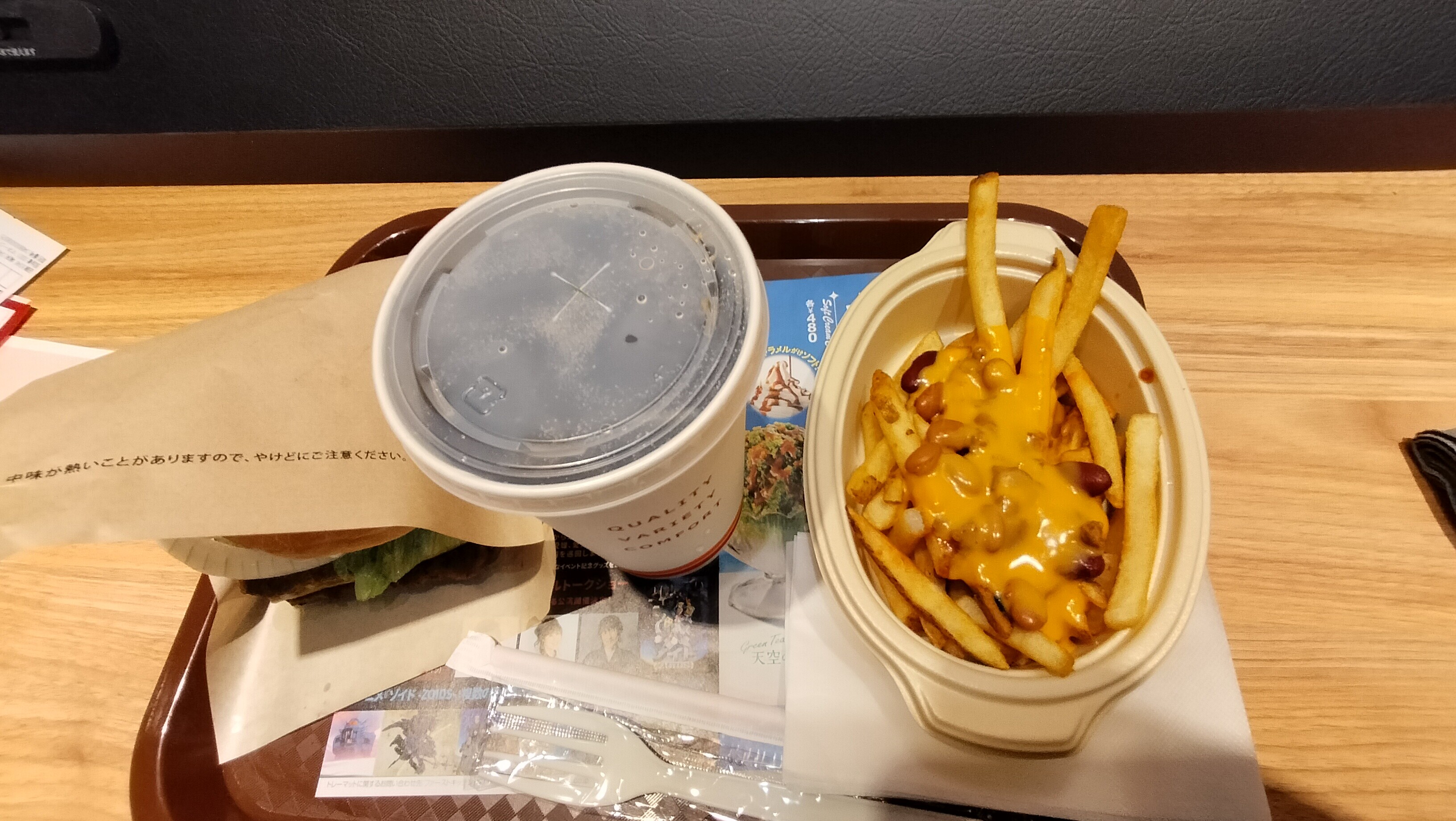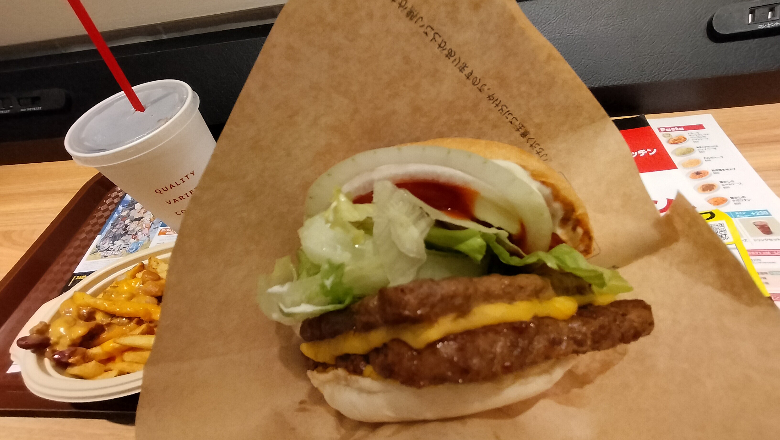 ドリンク、ポテト、ハンバーガーで1,500円ぐらい。