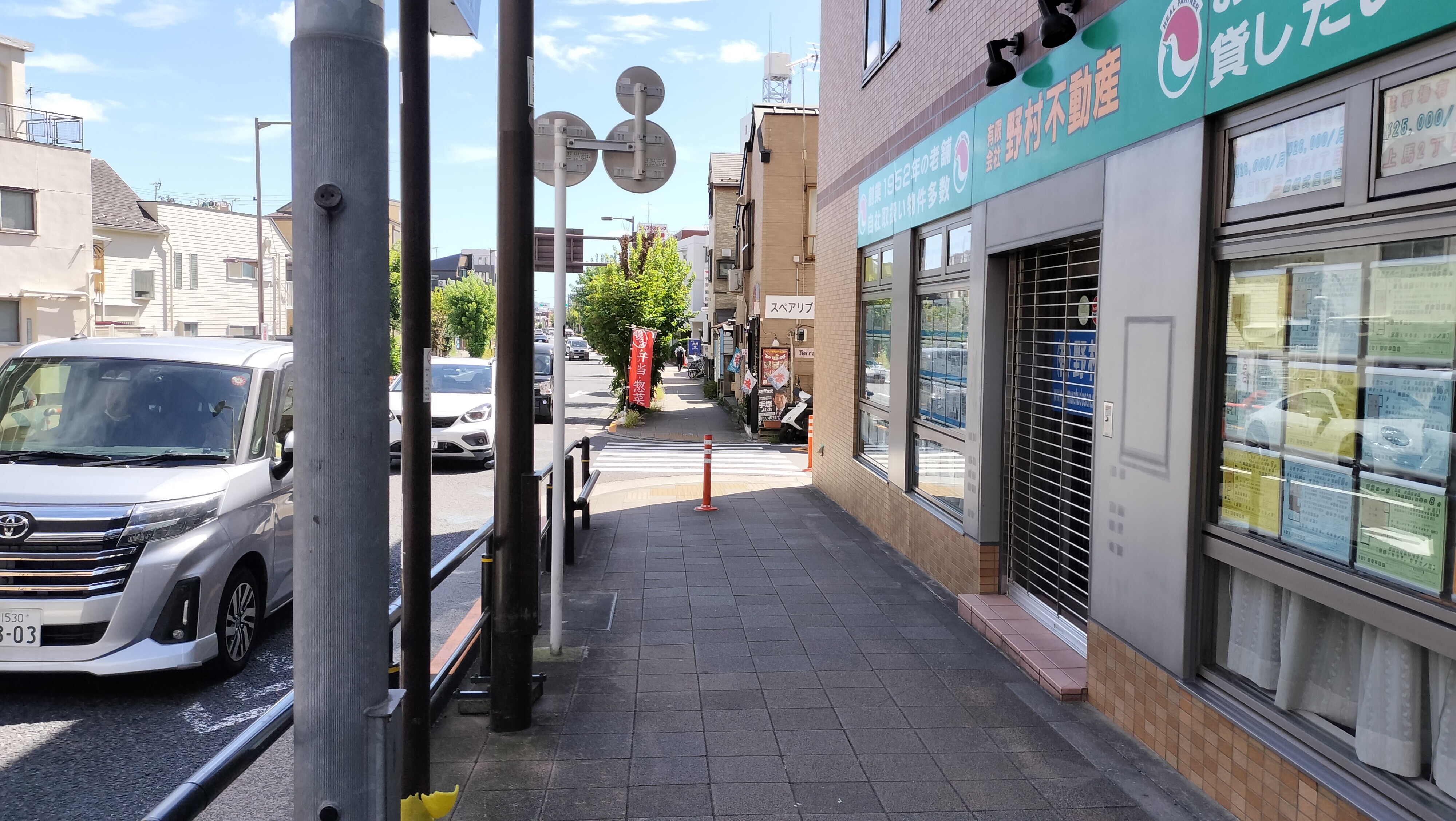 この不動産屋さんを右折。