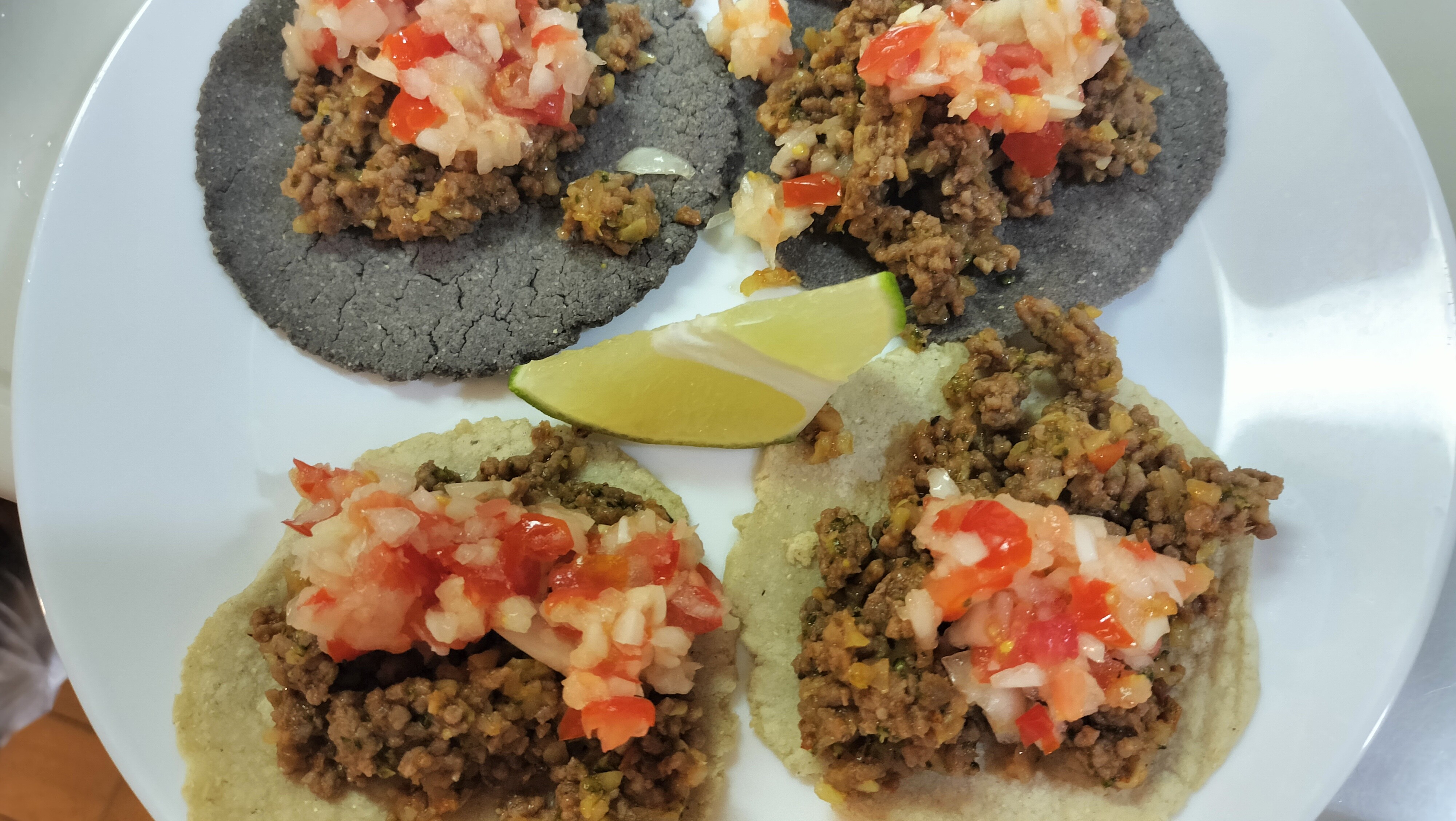 黒と白のトウモロコシの粉を買ってタコスを作ってみました。