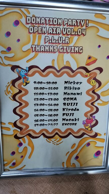 パーティーまでの道のりは舗装はされていなく、雑草が元気に育ってますのでアウトドア系の足元が良いと思います。