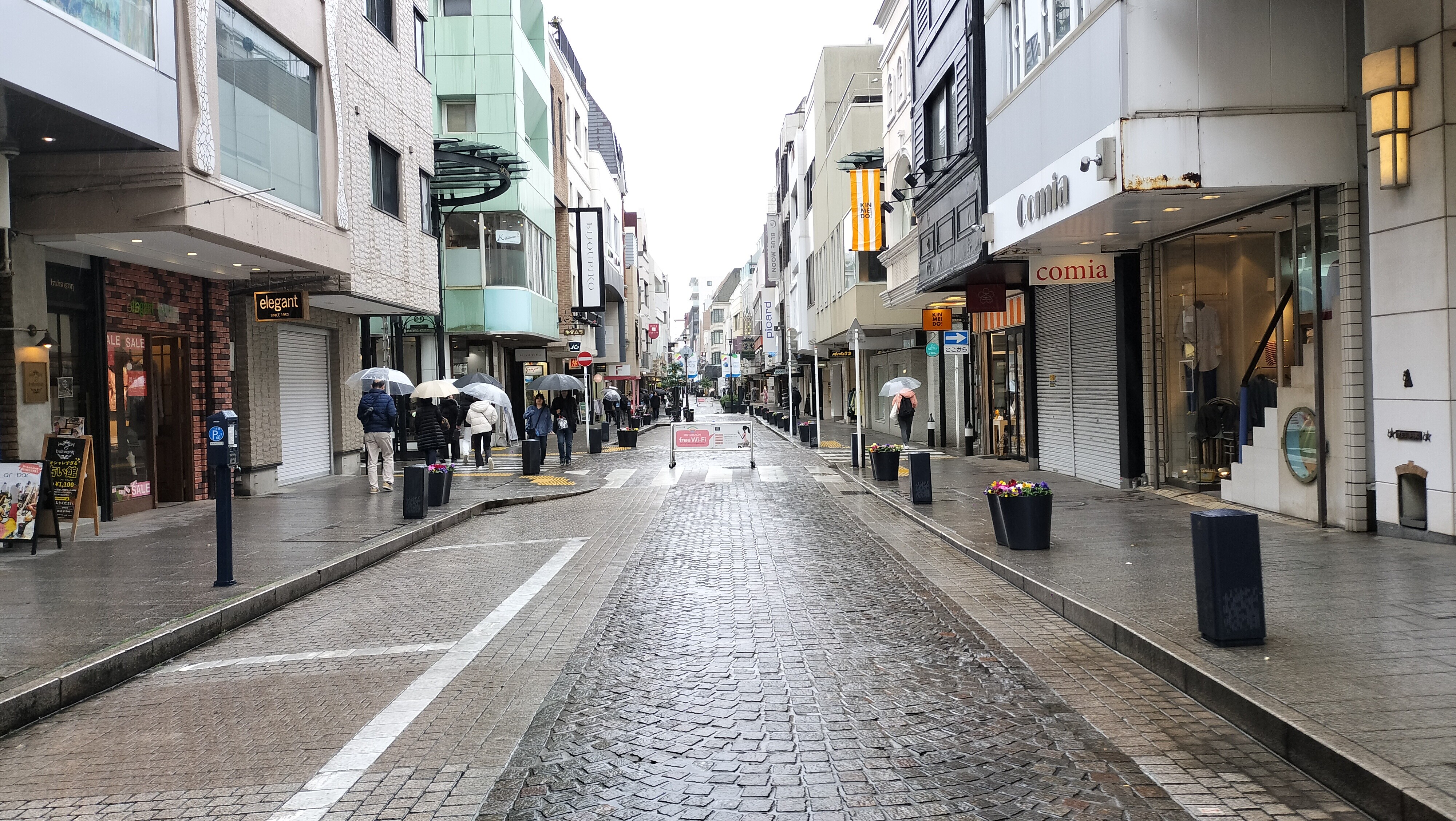 雨の元町商店街。