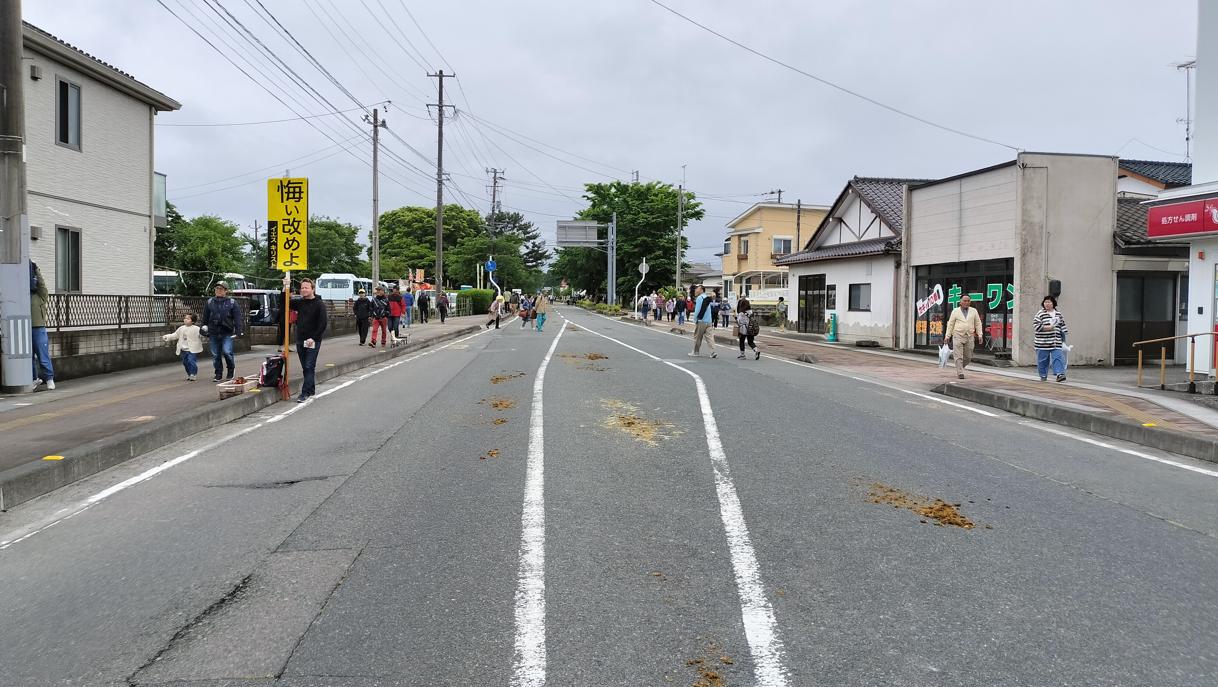 仮設トイレが至る所に設置してあり、どこも渋滞。