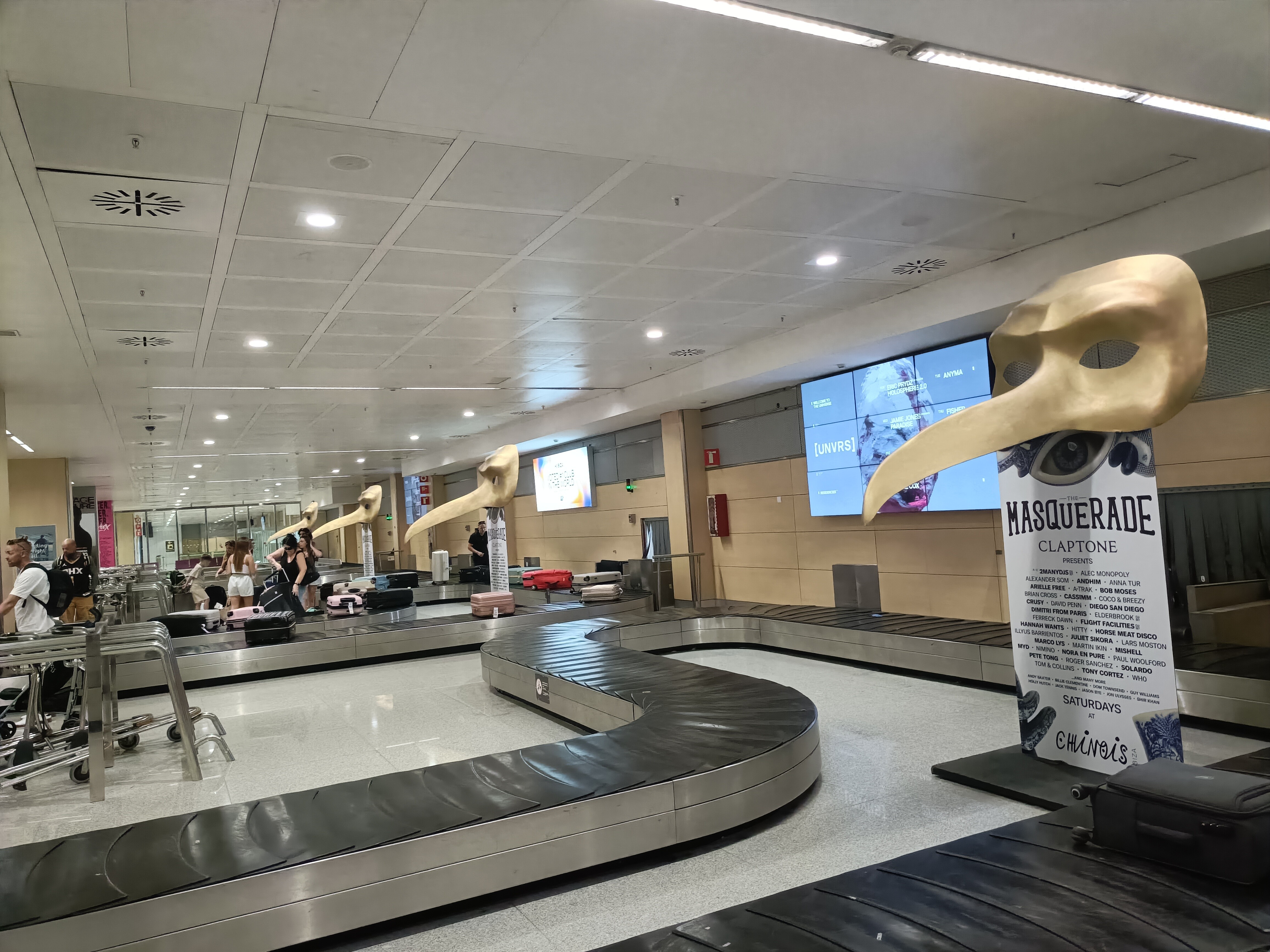 熊本空港にくまモンがいるように、イビサ空港ではクラブのプロモーションが目立ちます。