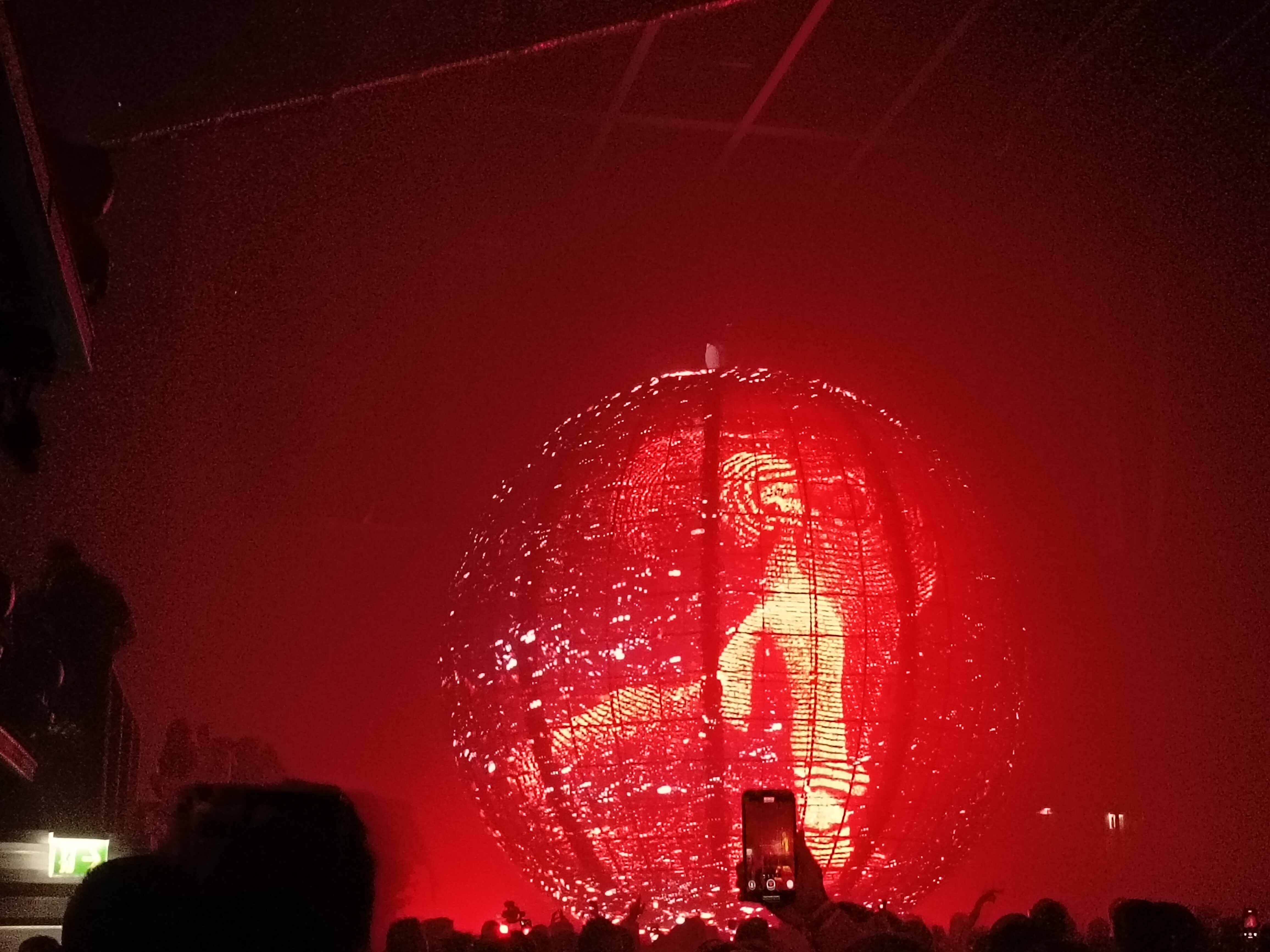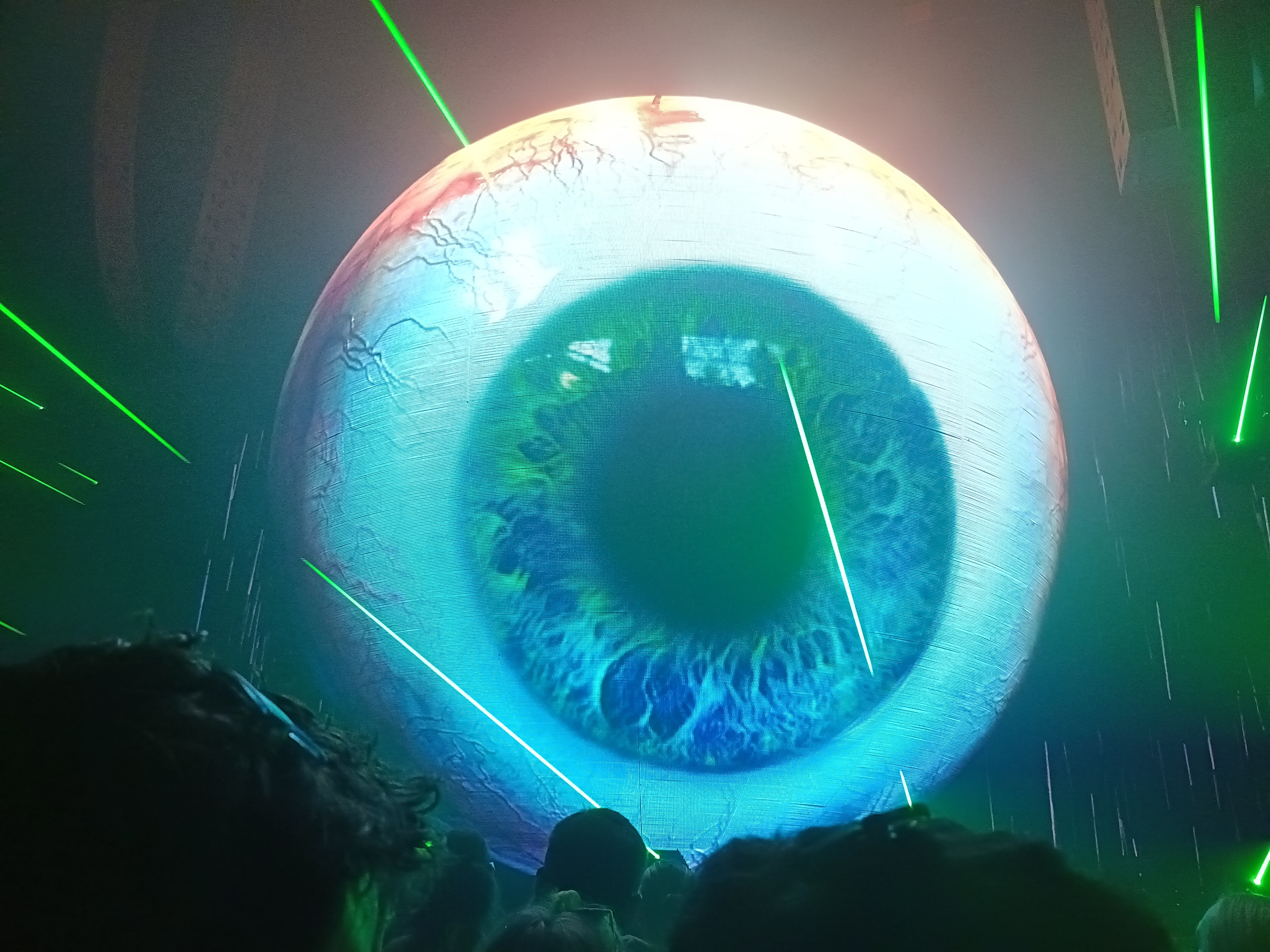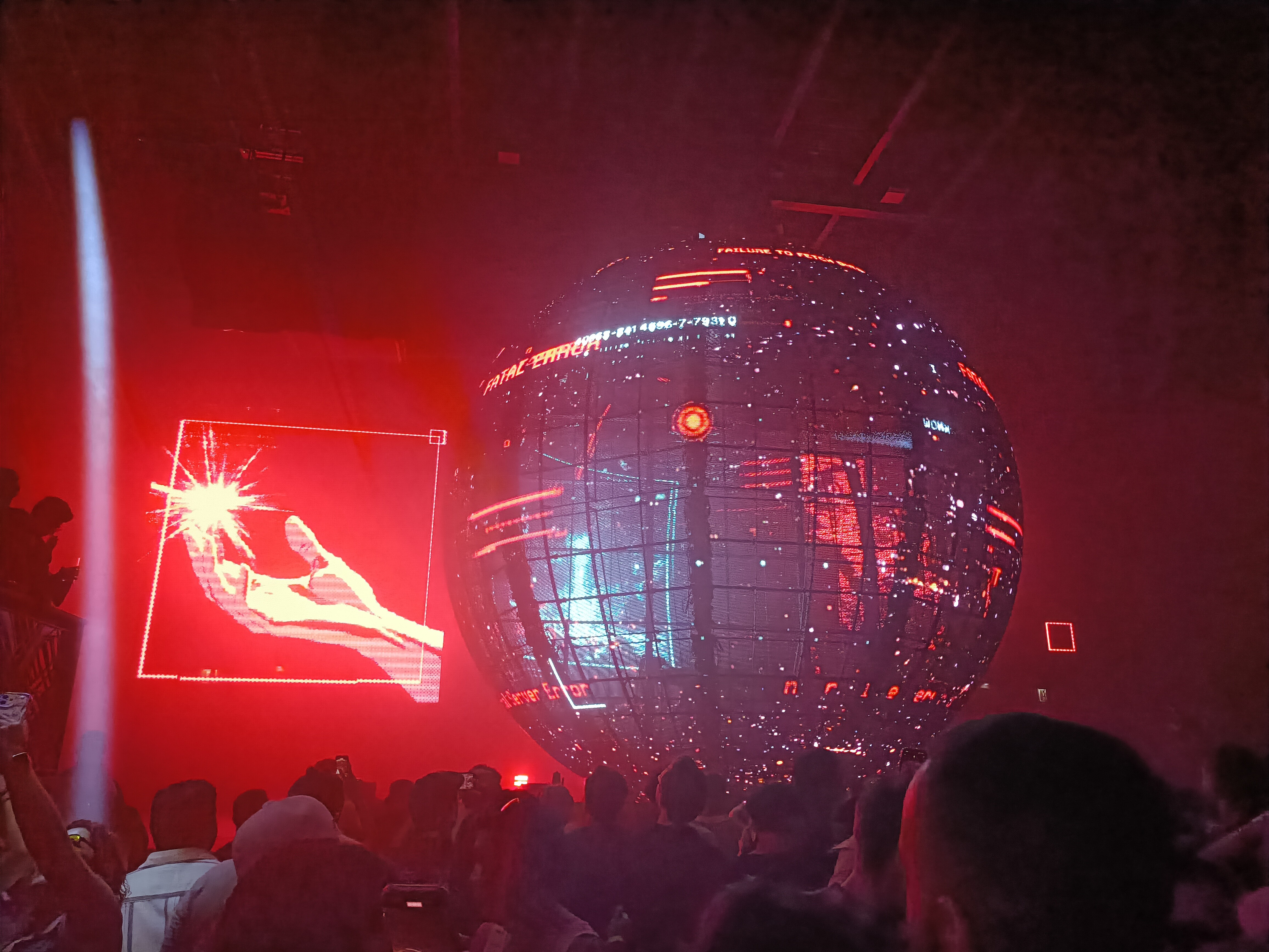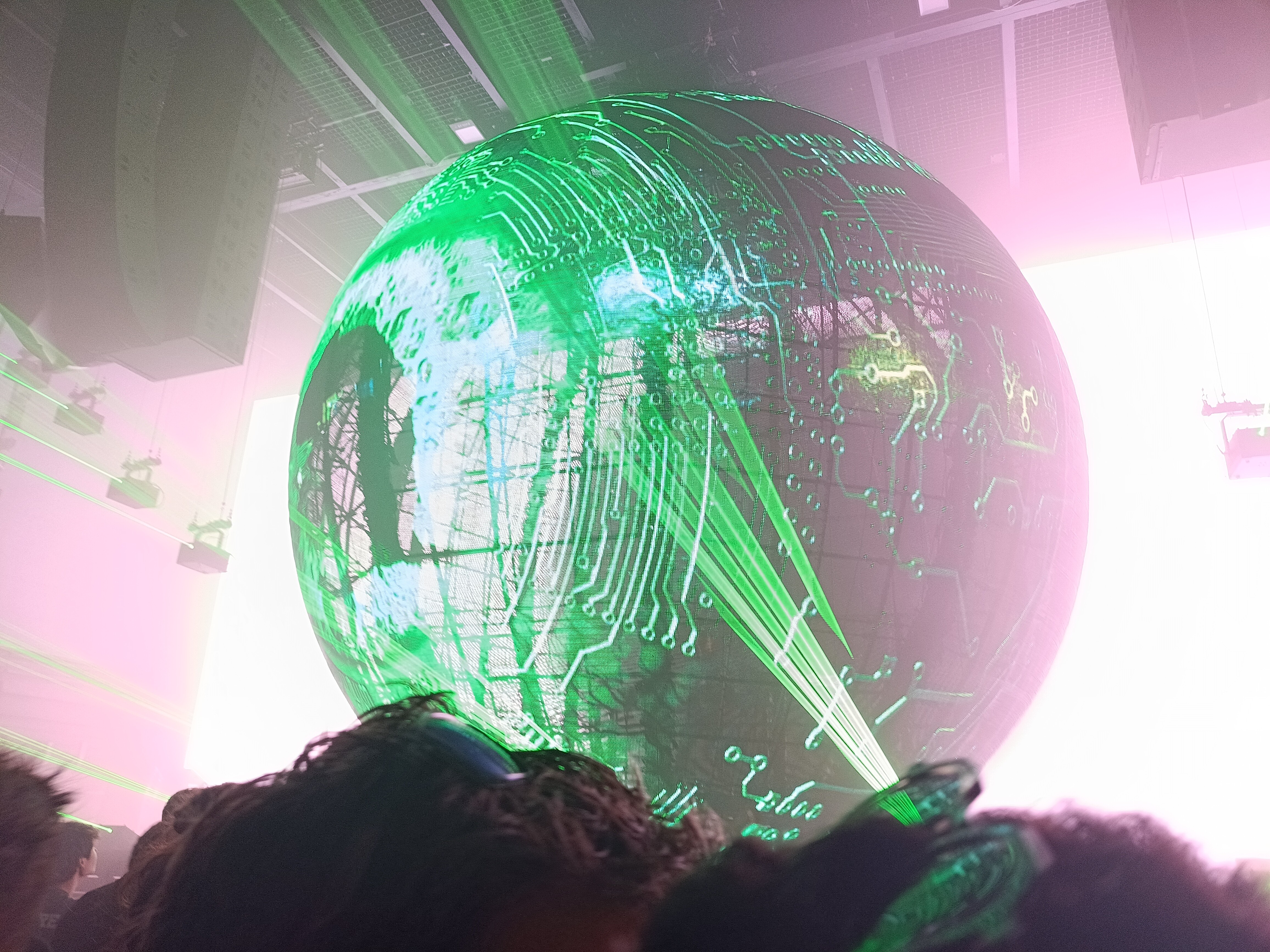 この球体とレーザーの演出が絶妙にマッチしていて、まさに映像が映えるように計算されているようでした。