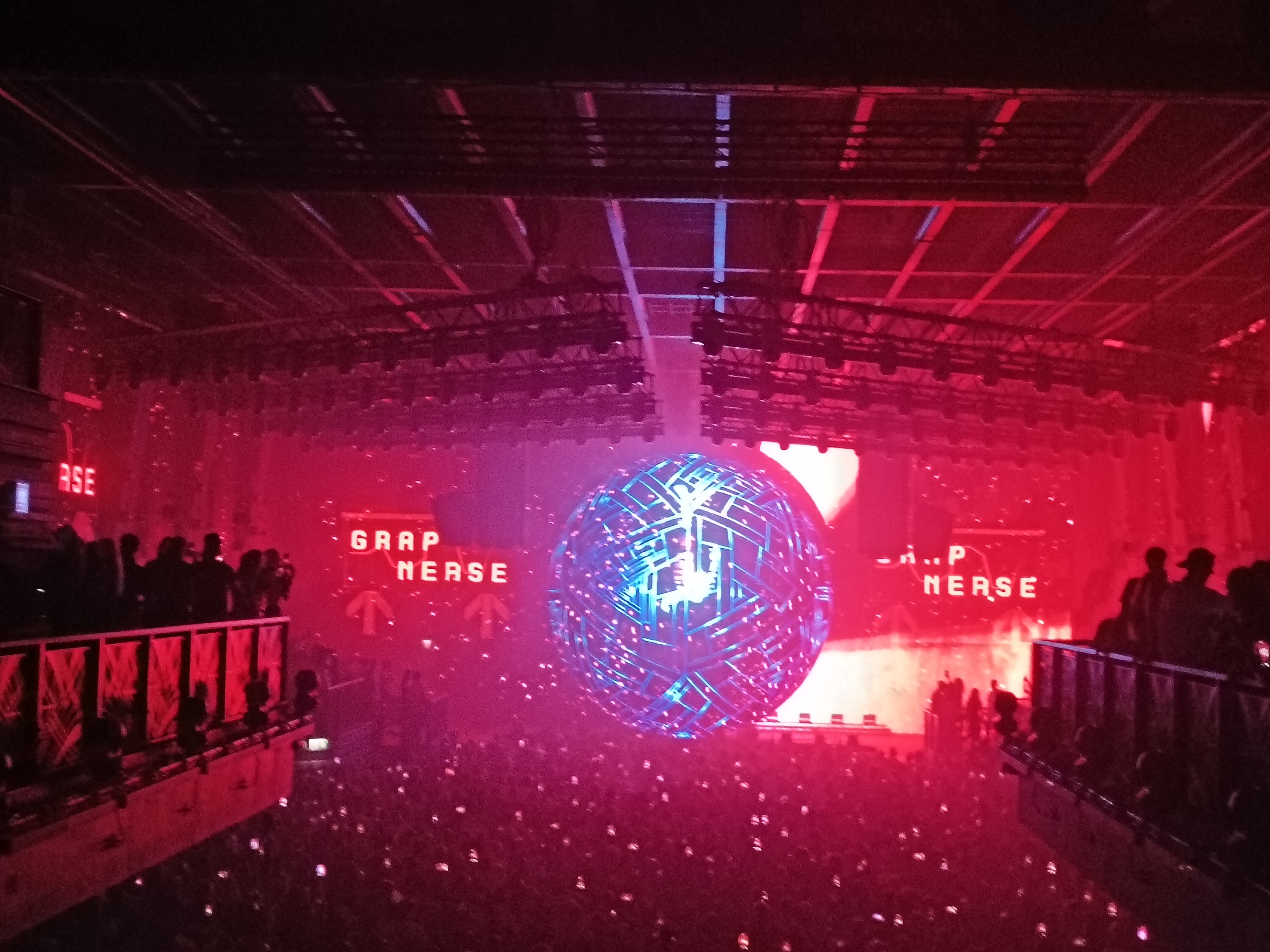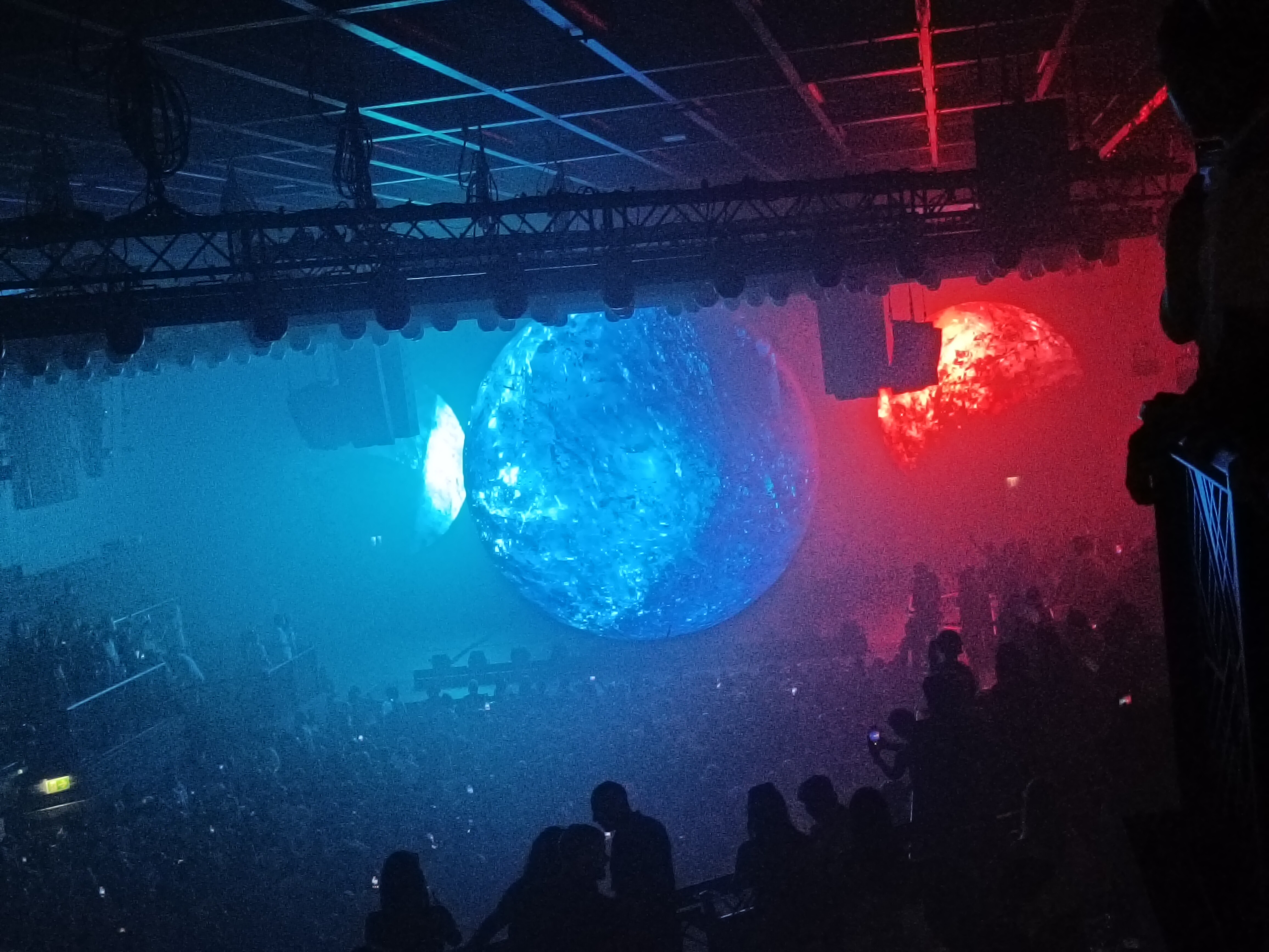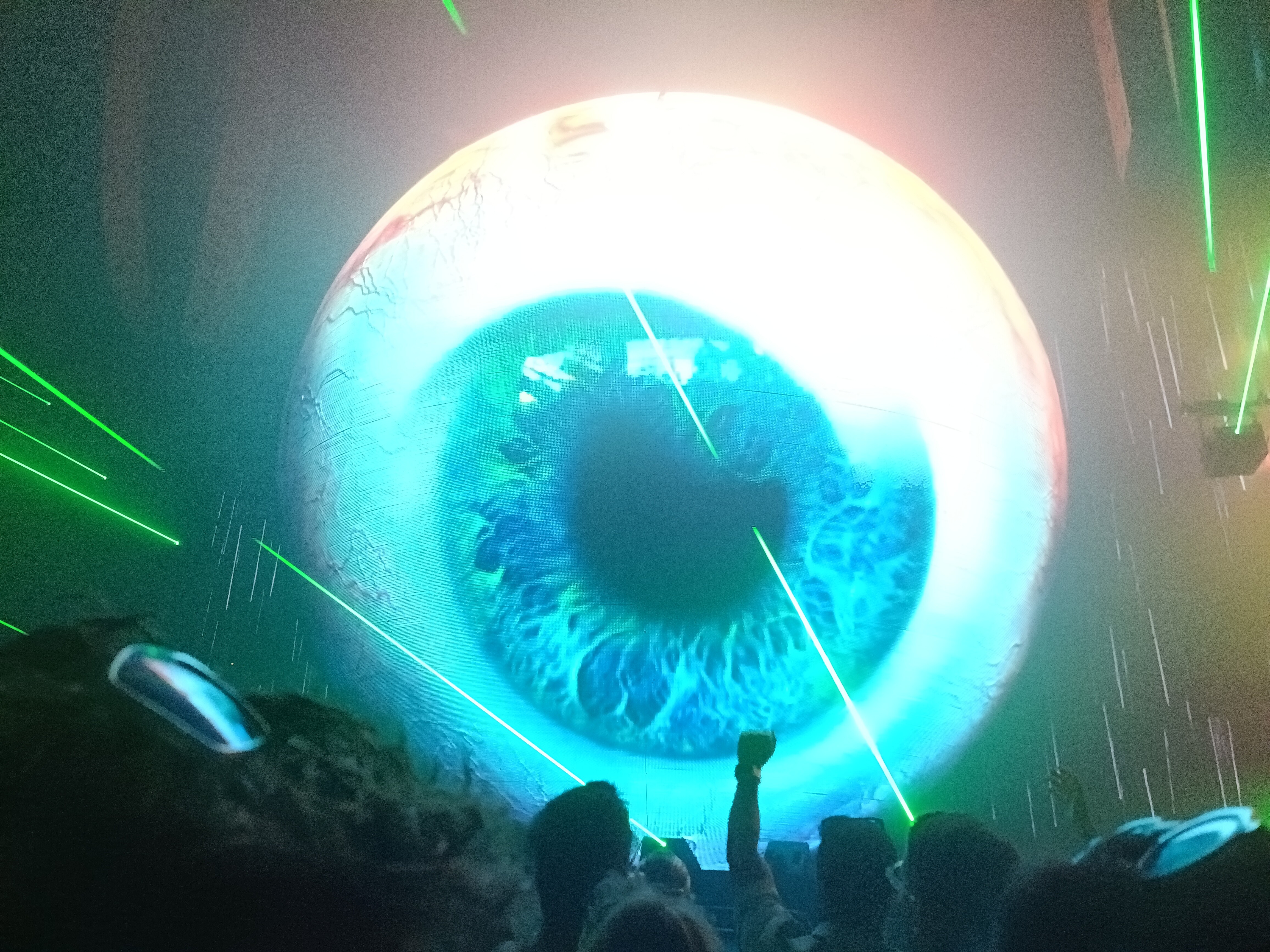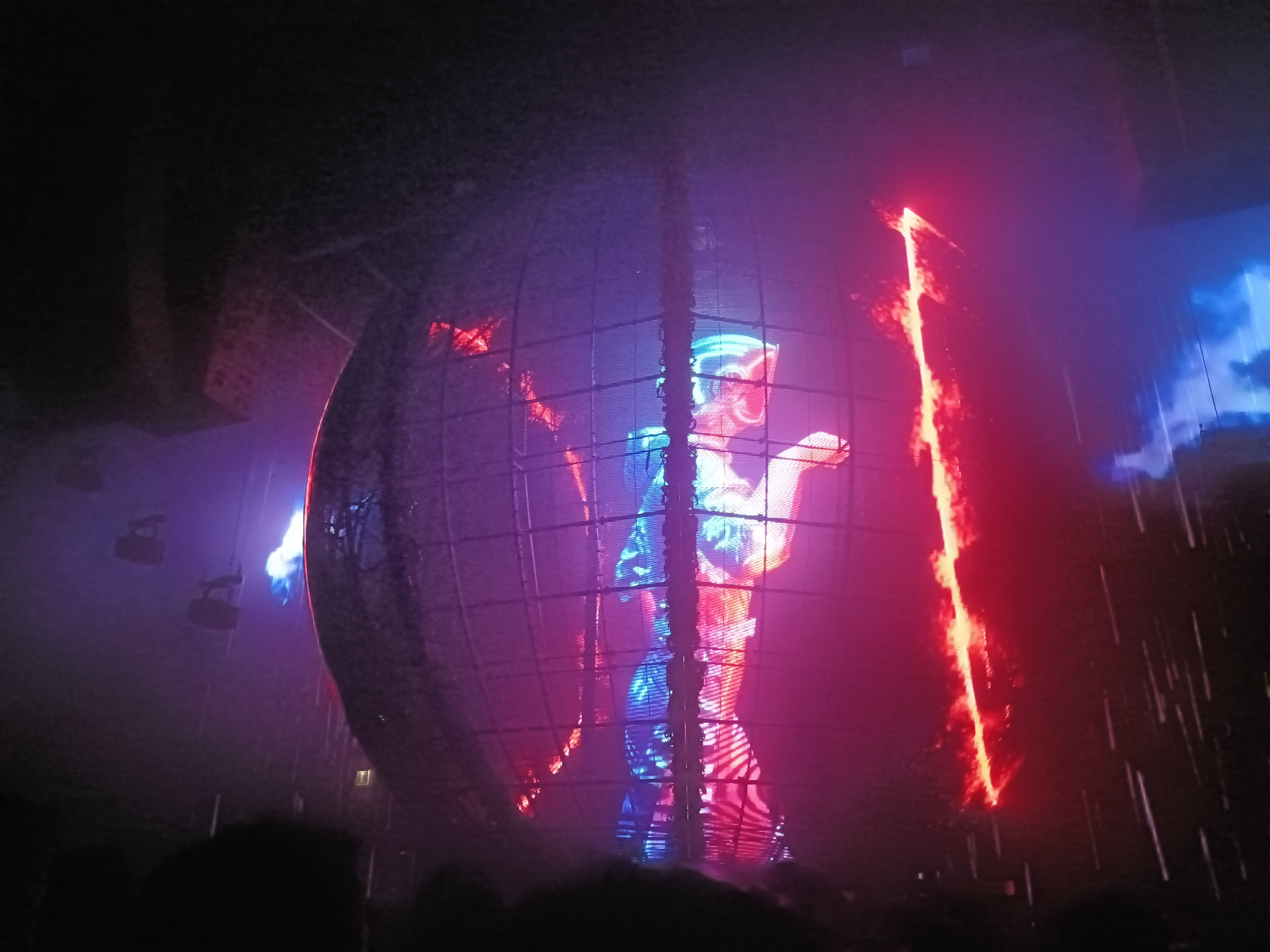 この球体とレーザーの演出が絶妙にマッチしていて、まさに映像が映えるように計算されているようでした。