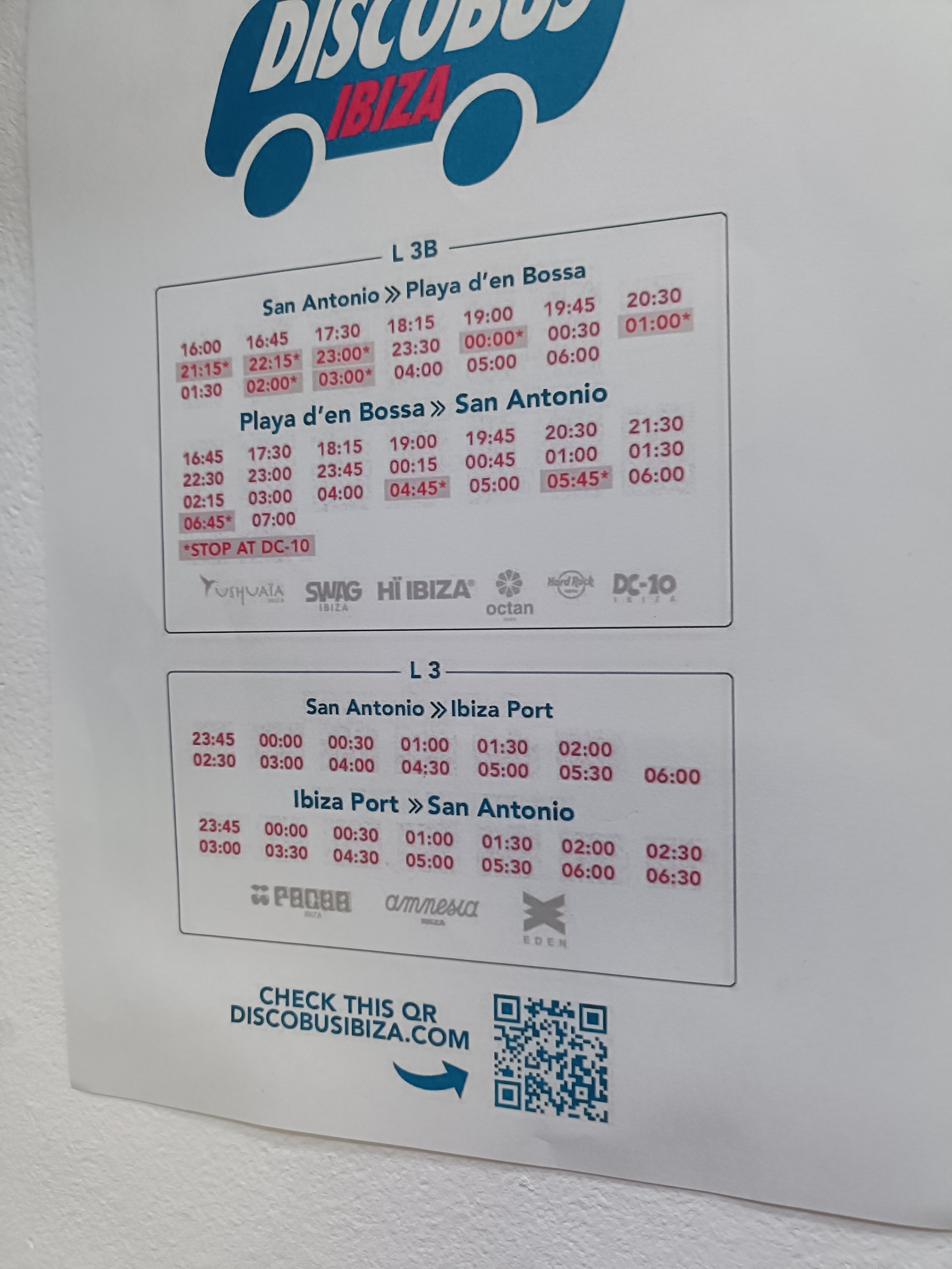 クラブ行きのDISCOBUSは夜遅くまで運行しています。